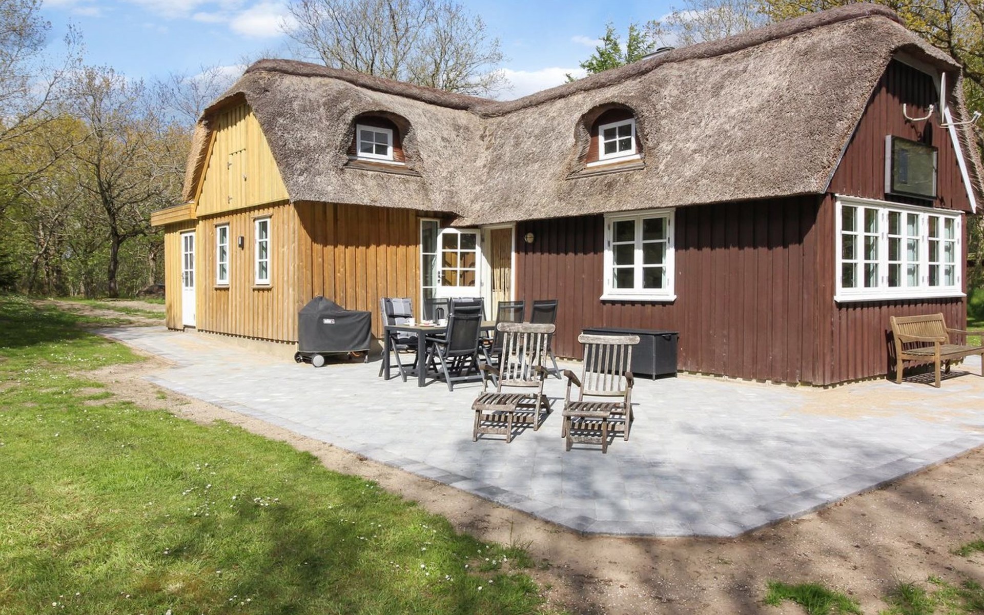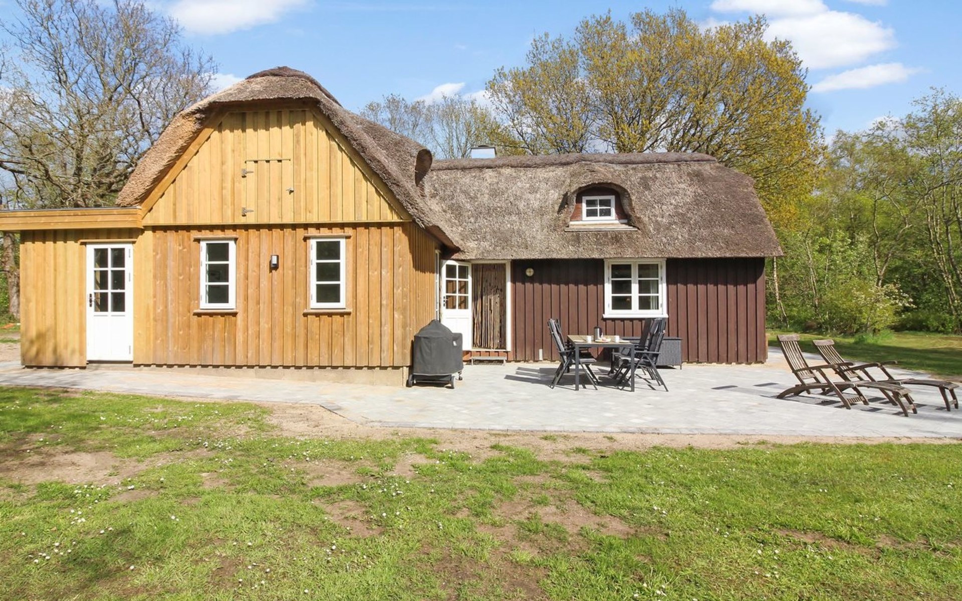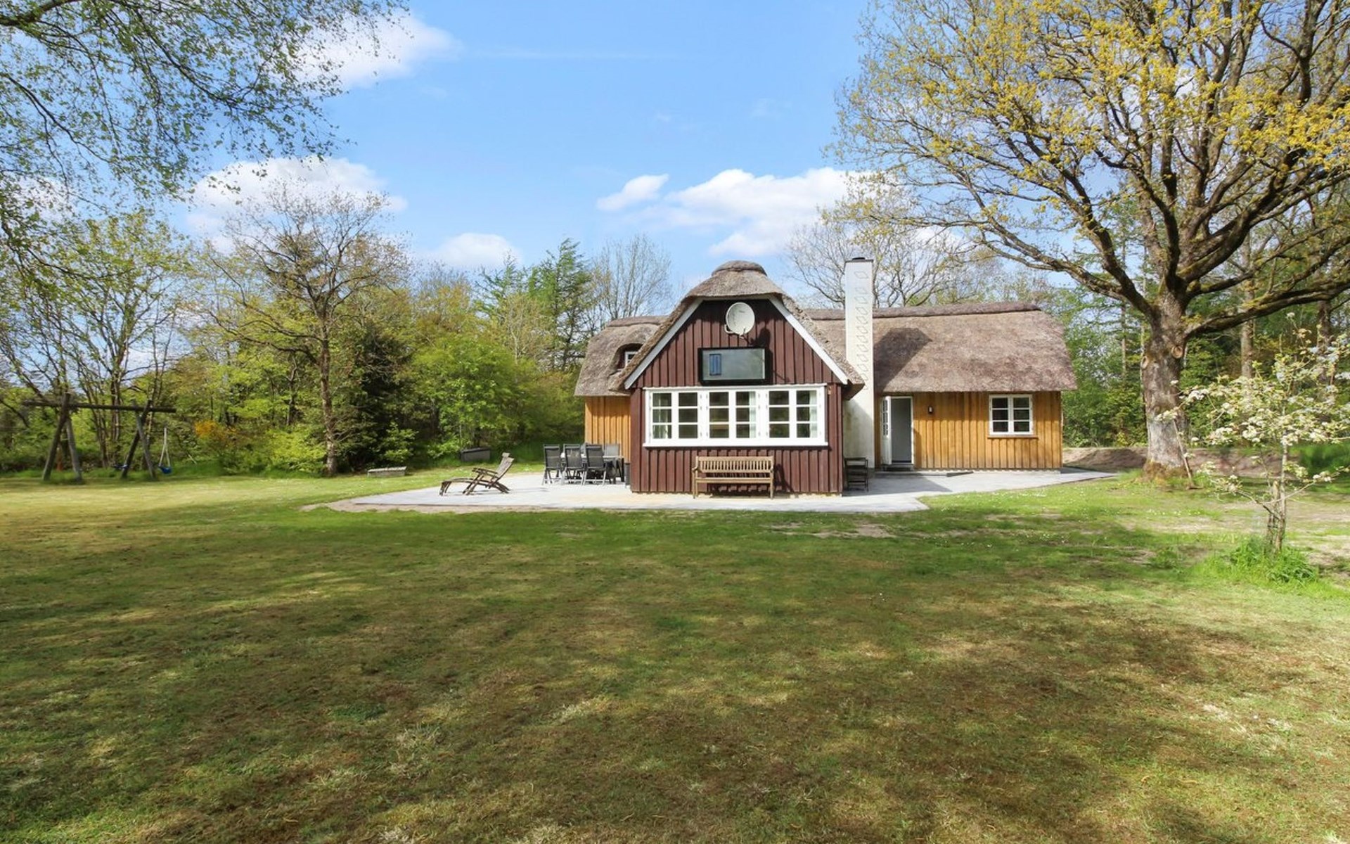 Single-family house, built in 1980. 15 km from the sea. Private: natural state property 20'000 m2. Terrace (80 m2), children's playground (swing). In the house: washing machine, tumble dryer. Parking at the house. Grocery 1.5 km.