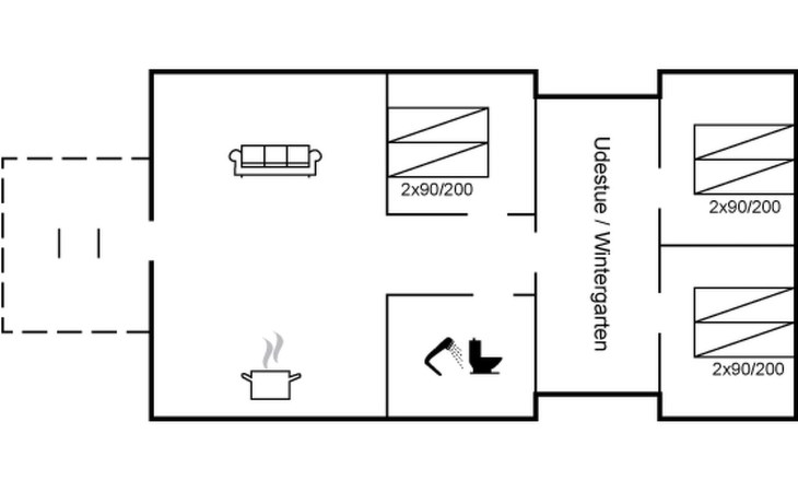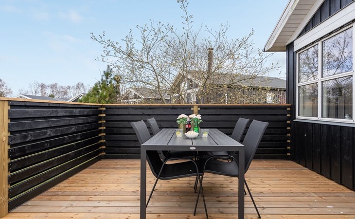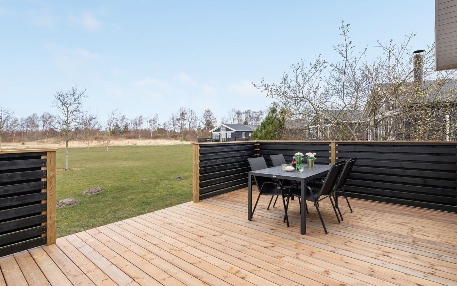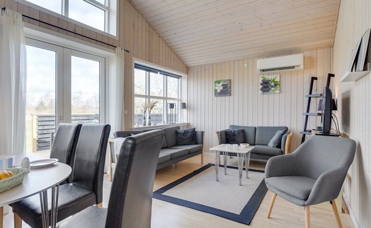 Holiday village, built in 2010. 800 m from the sea. Private: natural state property 375 m2. Terrace (38 m2). In the house: washing machine, tumble dryer. Parking at the house. Grocery 500 m. Golf course 1.5 km. The owner does not accept any youth groups.