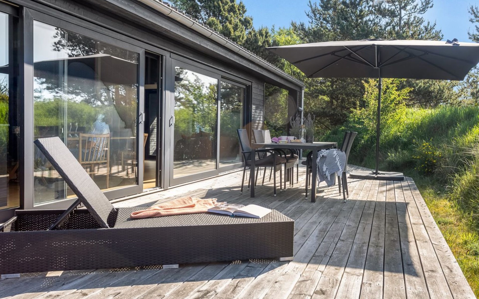 Single-family house, built in 2017. 100 m from the sea. Private: natural state property 1'000 m2. Barbecue. In the house: washing machine. Parking at the house. Grocery 6.2 km. Golf course 9.2 km. The owner does not accept any youth groups.
