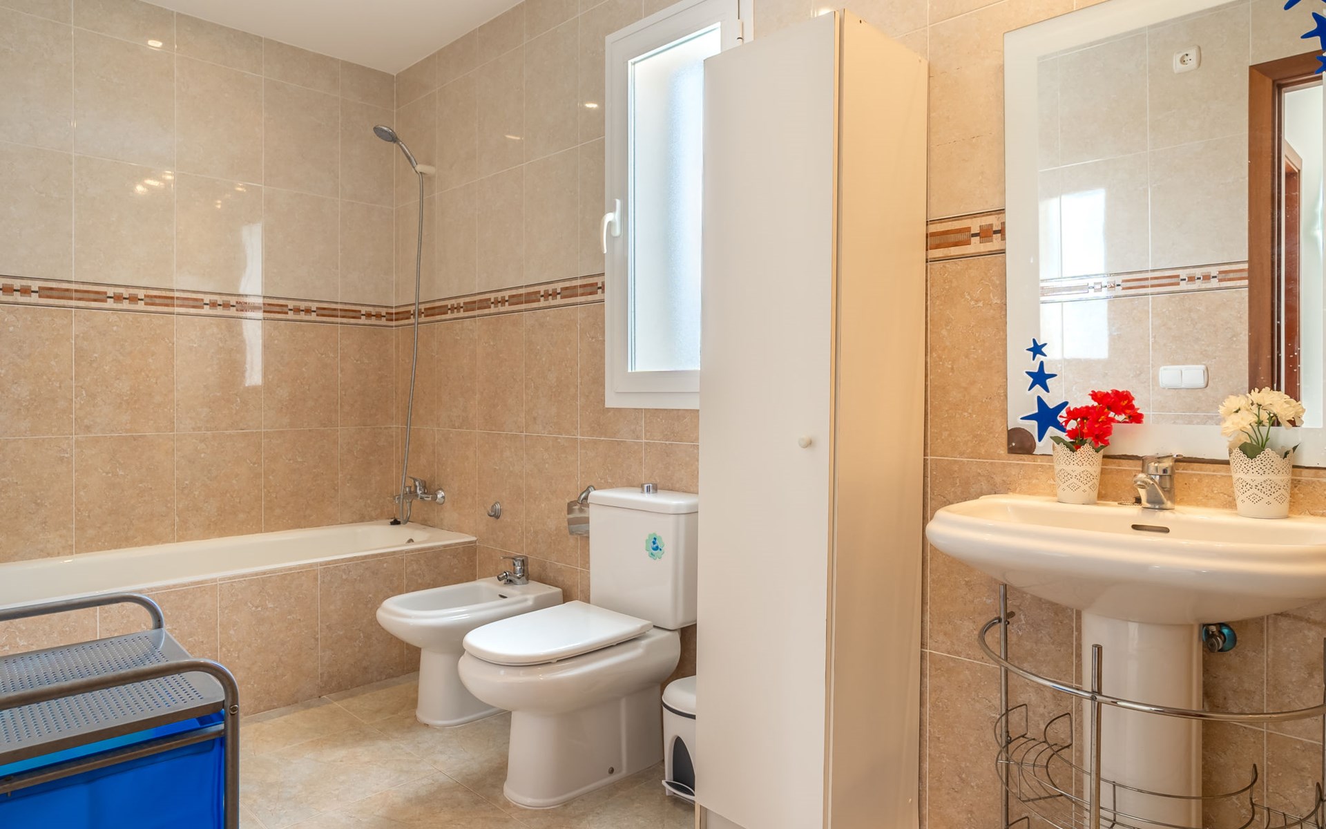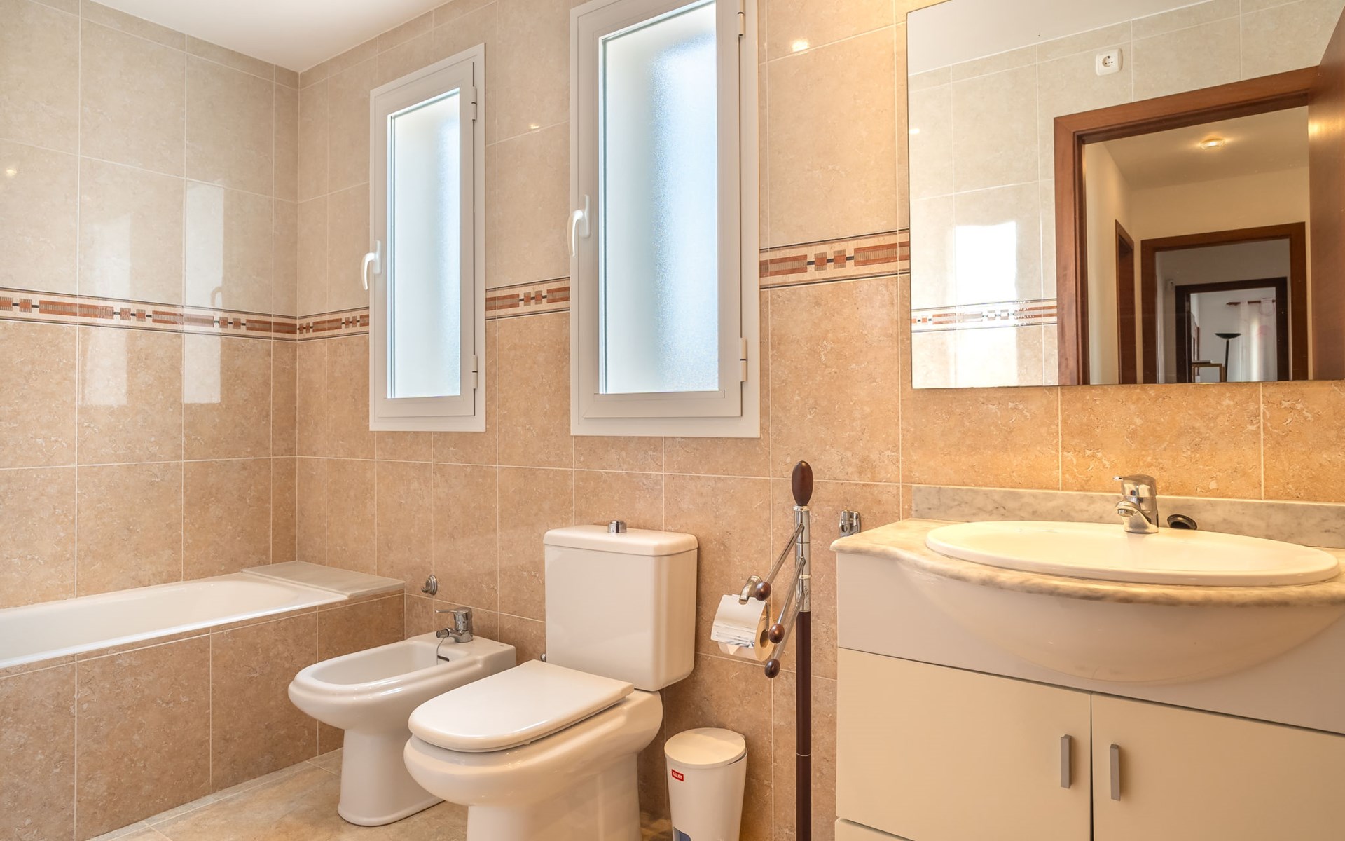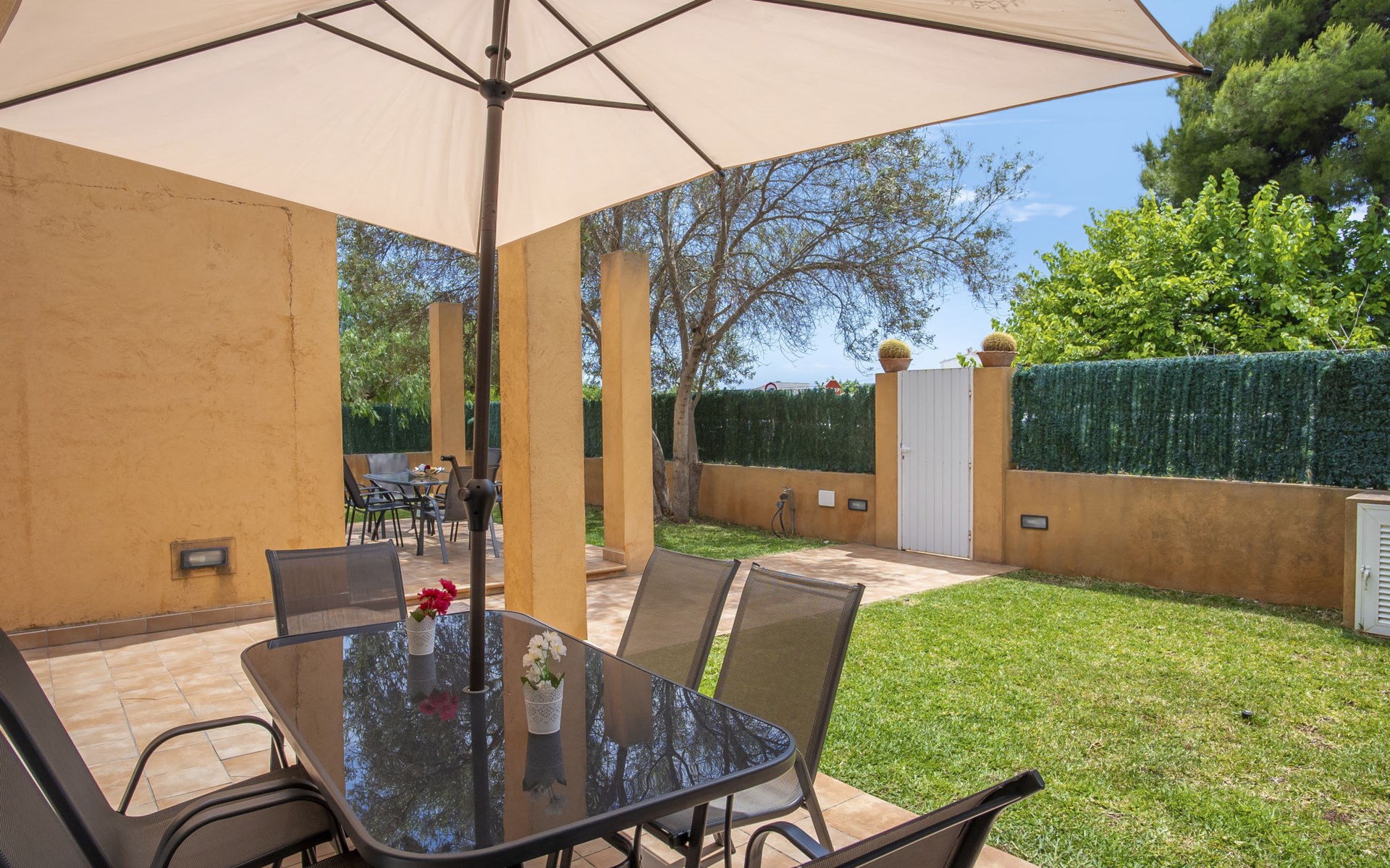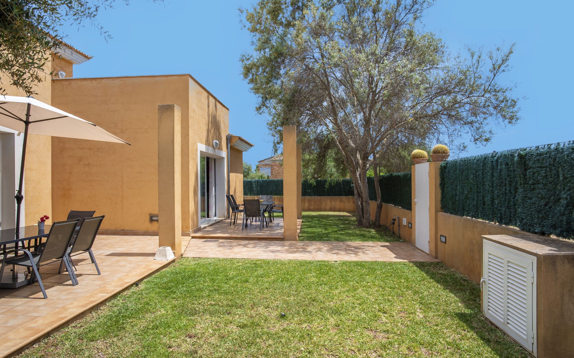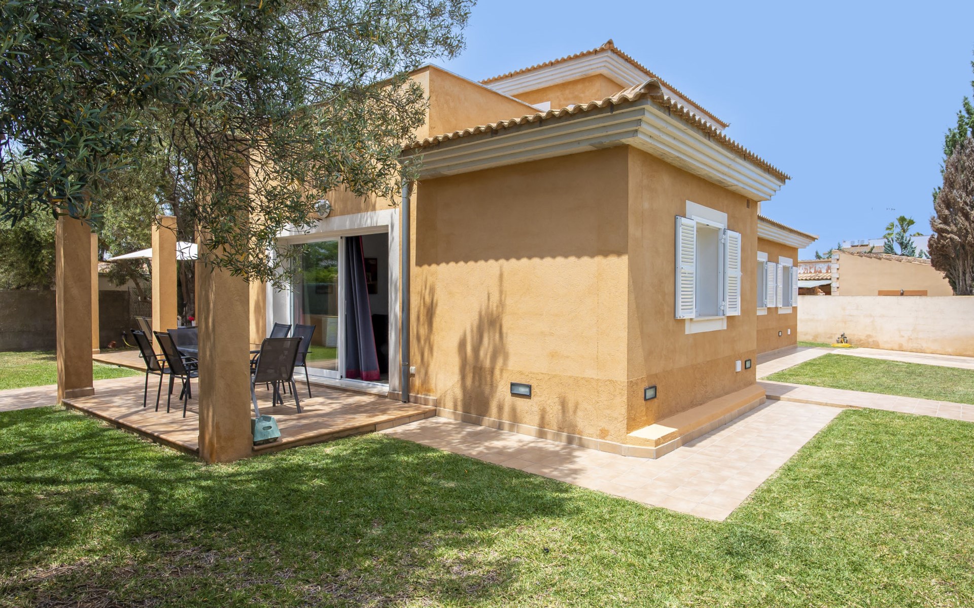 Sa Coma 2 km from Cala Millor: Large, cosy, comfortable single-family house "Sa Coma". 1 km from the centre of Sa Coma, 2 km from the centre of Cala Millor, 18 km from the centre of Manacor, in a central position in the residential district, 3 km from the edge of the forest, 2 km from the sea, 2 km from the beach, south-east facing position. Private: property 450 m2 (fenced), well-kept garden with lawn, swimming pool angular (6 x 3 m, seasonal availability: 01.Jan. - 31.Dec.). Outdoor shower, pool maintenance by the owner/gardener. In the house: air conditioning. Parking on the premises. Shop 3 km, grocery, supermarket 400 m, shopping centre 4 km, restaurant 400 m, bar 500 m, bakery 700 m, 10 minute walk to the centre, bus stop "Savines 1 (51002)" 1.4 km, railway station "Estación de Manacor" 18 km, sandy beach "Platja de Sa Coma" 2 km. Sports harbour 6 km, marina 6 km, golf course (18 hole) 9 km, surf school 6 km, sailing school 6 km, tennis 18 km, riding stable 3 km, walking paths from the house 10 km. Nearby attractions: Rafa Nadal Academy 16 km, Coves del Drac 8 km, Coves dels Hams 8 km, Es Trenc 50 km, Poblat Talaiòtic de Ses Païsses 15 km. Object suitable for 12 adults. The owner does not accept any youth groups. Please note: airfield 66 km from the property.