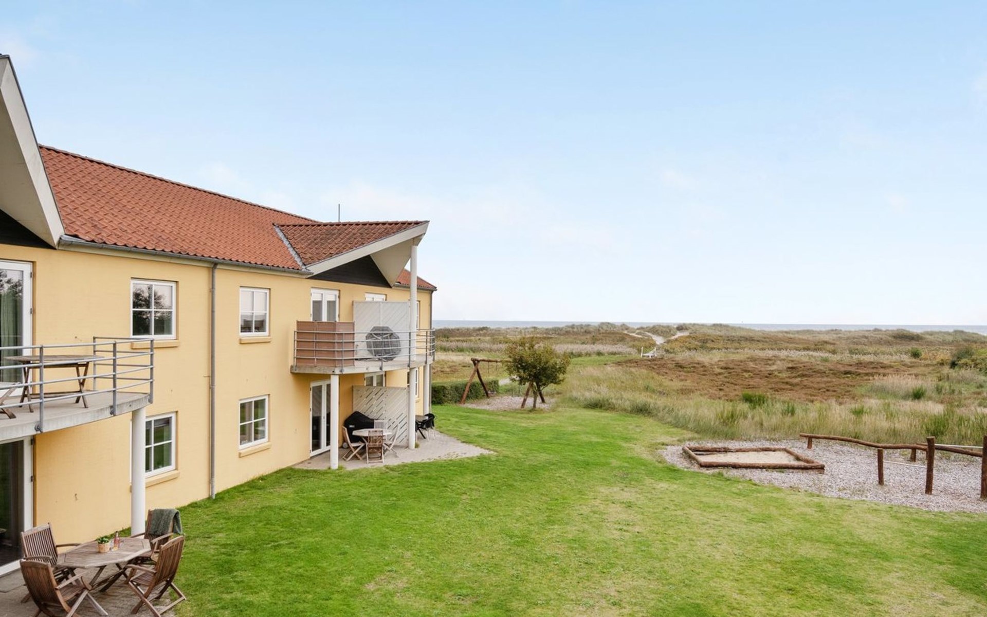 Holiday village, built in 1991. 100 m from the sea. For shared use: children's playground (swing, sandbox). Grocery 4.2 km. Golf course 2.2 km. The owner does not accept any youth groups.