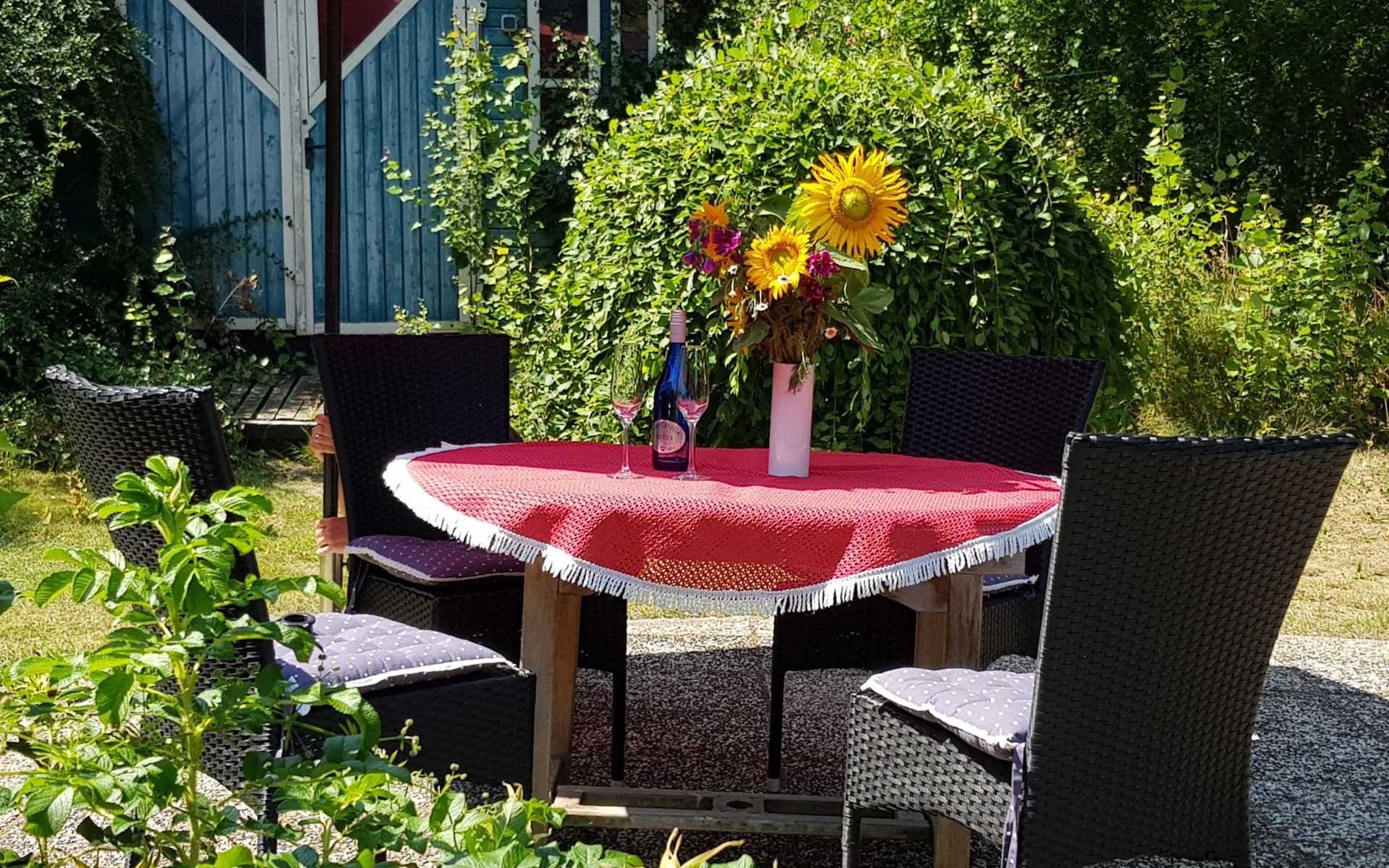 You can enjoy the idyllic view from the terrace, for your own exclusive use, and relax with a glass of wine, or you can use the grill for preparing meals. The beautiful garden also invites you to while the time away. You can arrive by car, as there are three parking spaces.