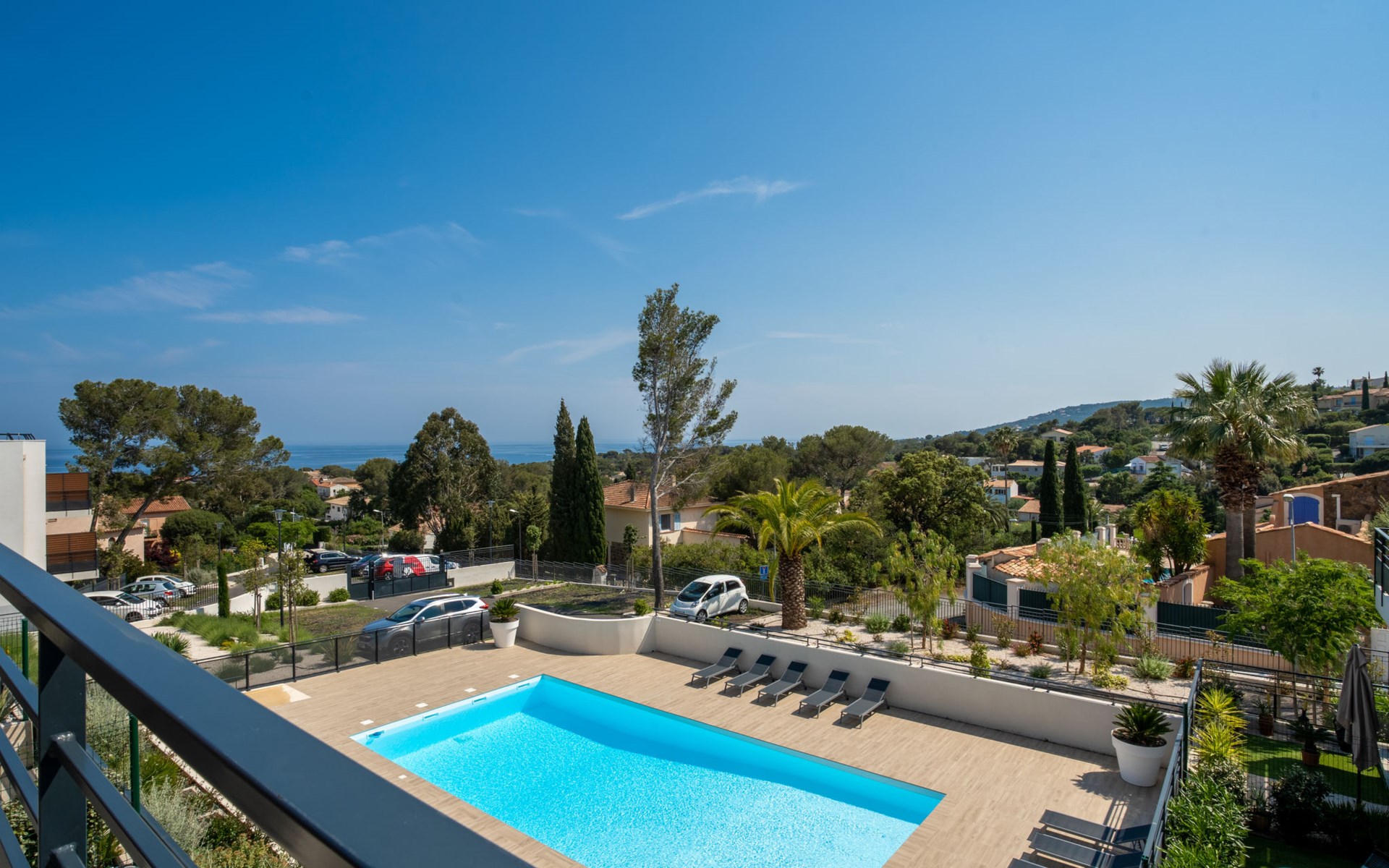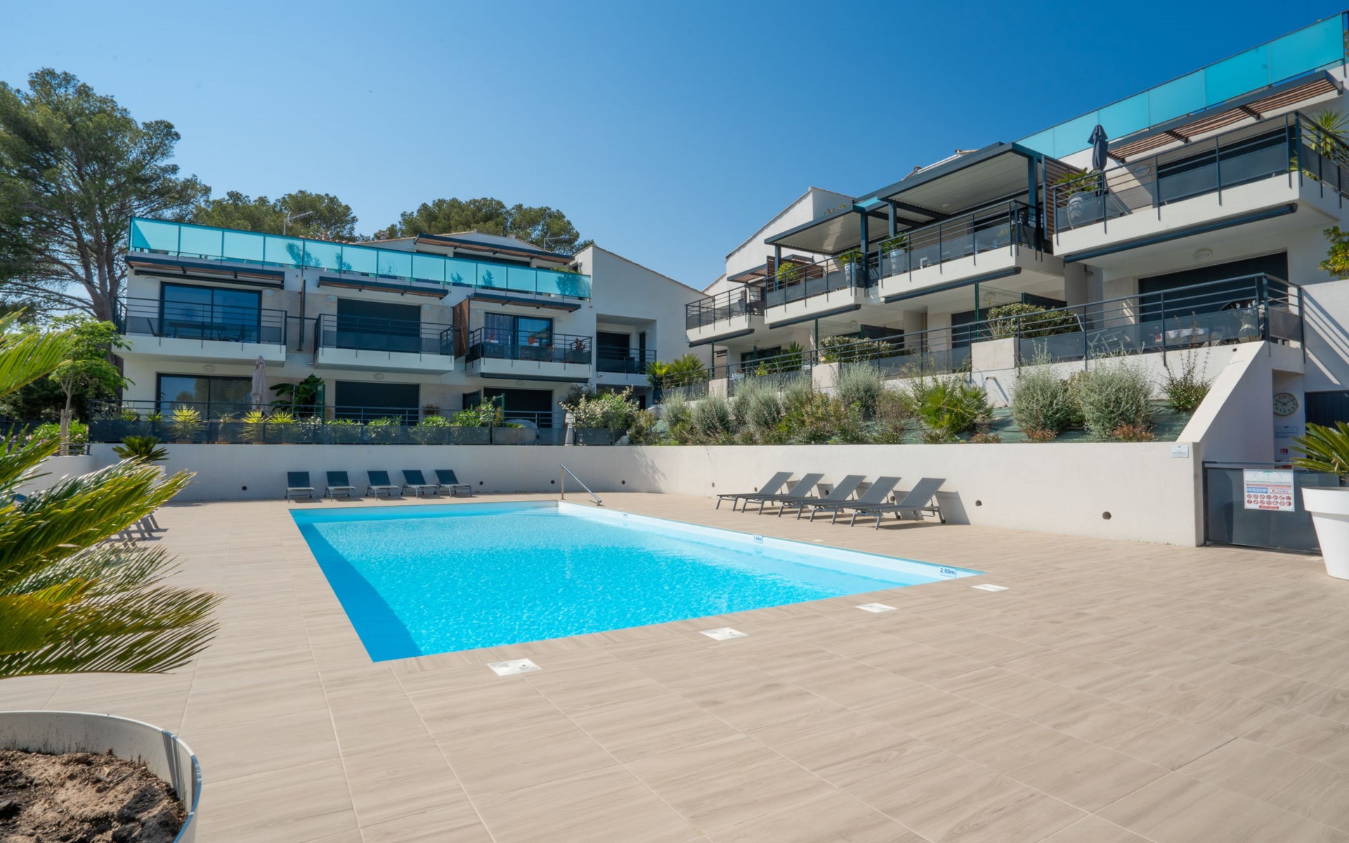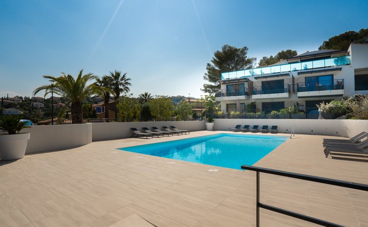 Residence "Le Diamanti", 2 storeys, built in 2021. In the resort 1 km from the centre of Saint Aygulf, in a sunny position in the residential district, 700 m from the sea, 700 m from the beach. For shared use: swimming pool angular fenced (6 x 12 m, depth 100 - 200 cm, seasonal availability: 01.Jun. - 15.Oct. pool opening hours: 09:00-20:00) with internal staircase. Shower/WC in the pool area. In the house: lift, storage room for bicycles. Parking. Shop 700 m, shopping centre 5.5 km, bakery 700 m, 10 minute walk to the centre, bus stop "Saint-Aygulf La Poste" 800 m, railway station "Fréjus" 7 km, sandy beach "Saint Aygulf" 2 km pebble beach "Calanque des Corailleurs" 700 m, park "Areca" 1 km, diving center 7 km, thermal baths "Thalasso de Port Fréjus" 7 km. Sports harbour 2 km, golf course (18 hole) 8 km, sailing school 8 km, riding stable 3 km, sports centre 1 km. Nearby attractions: Aqualand, Lunapark 5 km, Fréjus 6 km, Saint Raphaël 8 km, Saint Tropez 30 km, Cannes 50 km, Nice 71 km. Well-known ski regions can easily be reached: Auron, Isola 2000 150 km. Well-known lakes can easily be reached: Lac de St Cassien 45 km, Lac du Du Verdon 90 km. Hiking paths: Estérel 16 km, Sentier du Littoral 700 m. Please note: car recommended. Residence with electric gates.