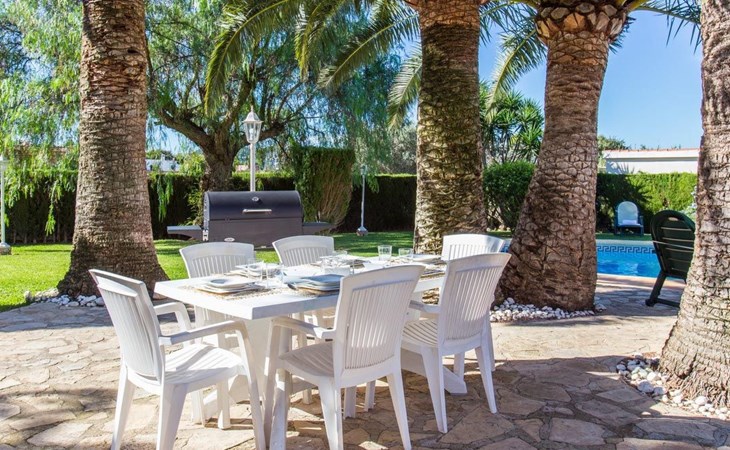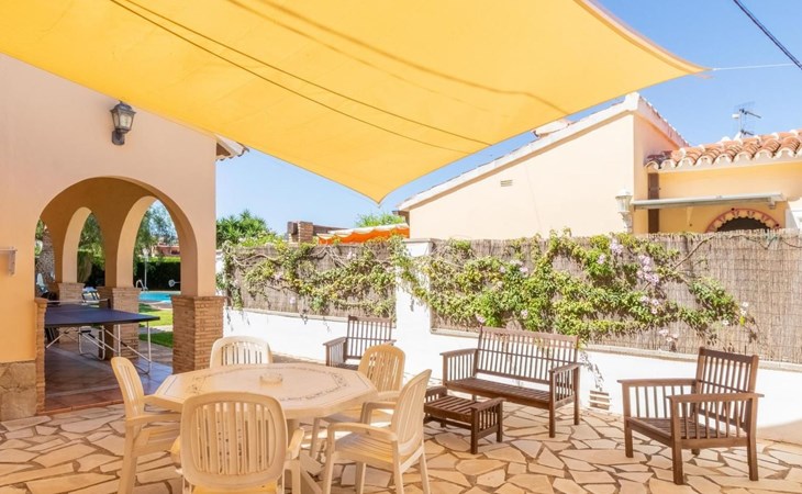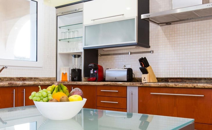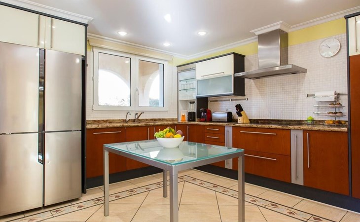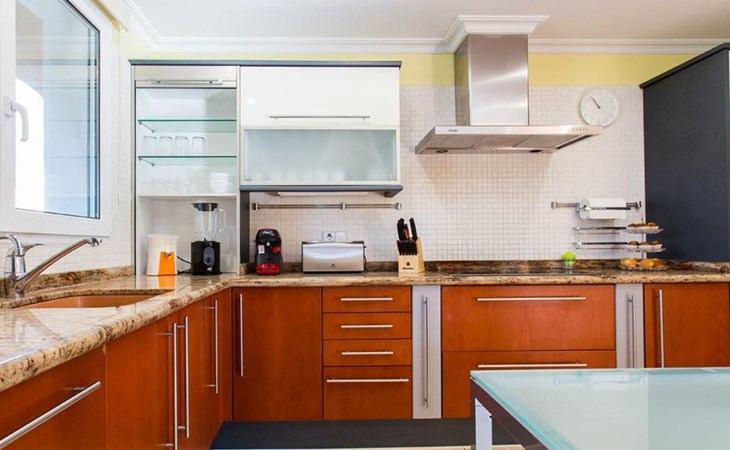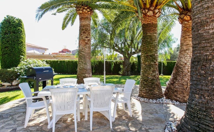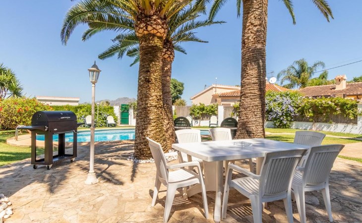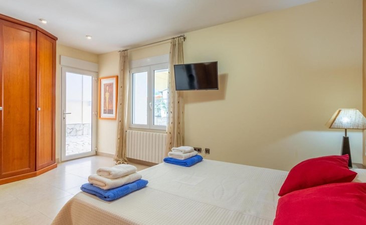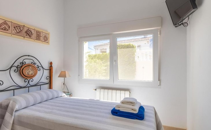 With capacity for up to 10 people, this holiday rental house in Denia is perfect to enjoy with family or friends. It has 5 comfortable bedrooms and 3 complete bathrooms. The kitchen is fully equipped with refrigerator, dishwasher, oven, microwave, coffee maker, toaster, blender, juice squeezer, kettle, crockery and cutlery. It also has indoor and outdoor dining areas, air conditioning, heating and WiFi.