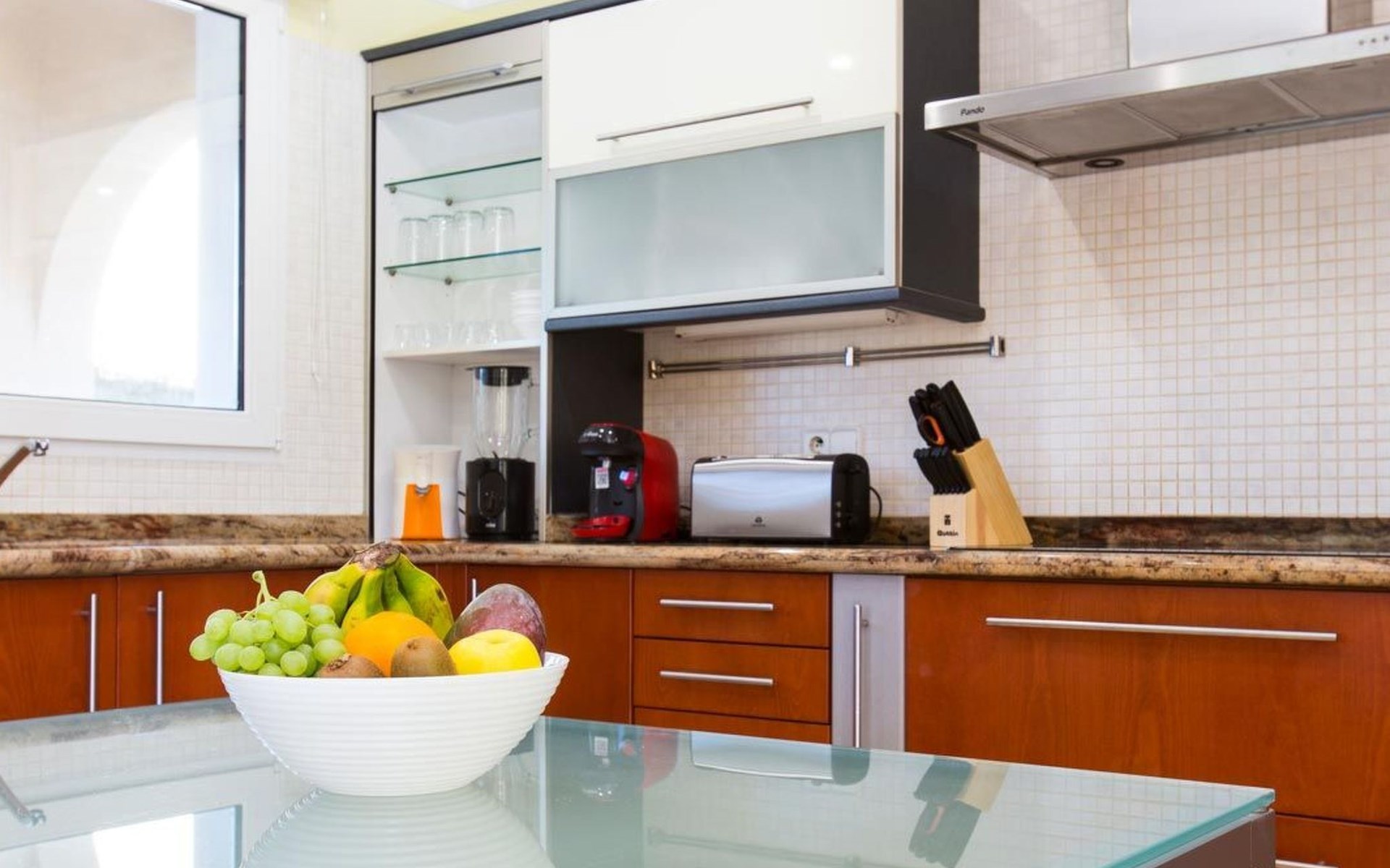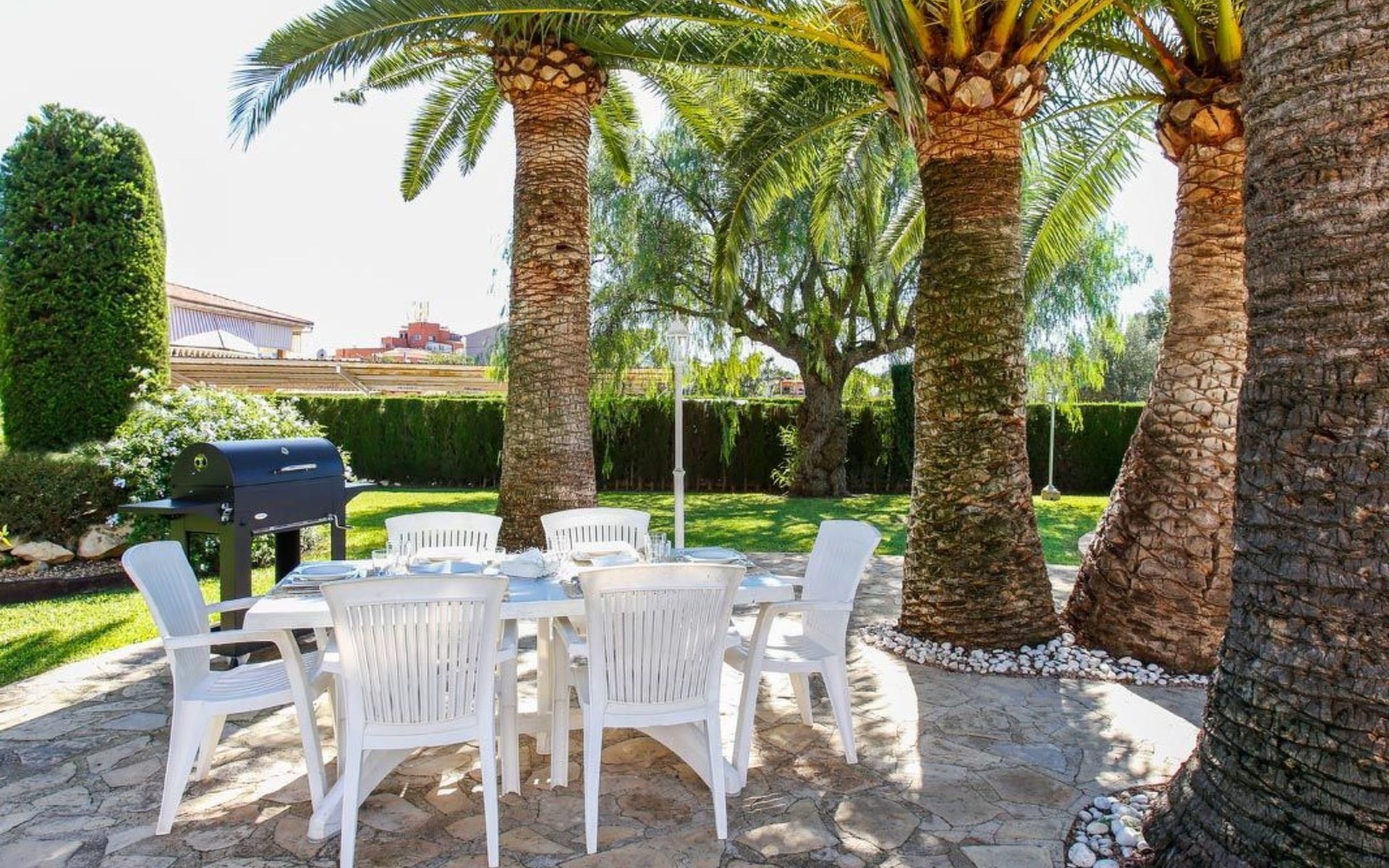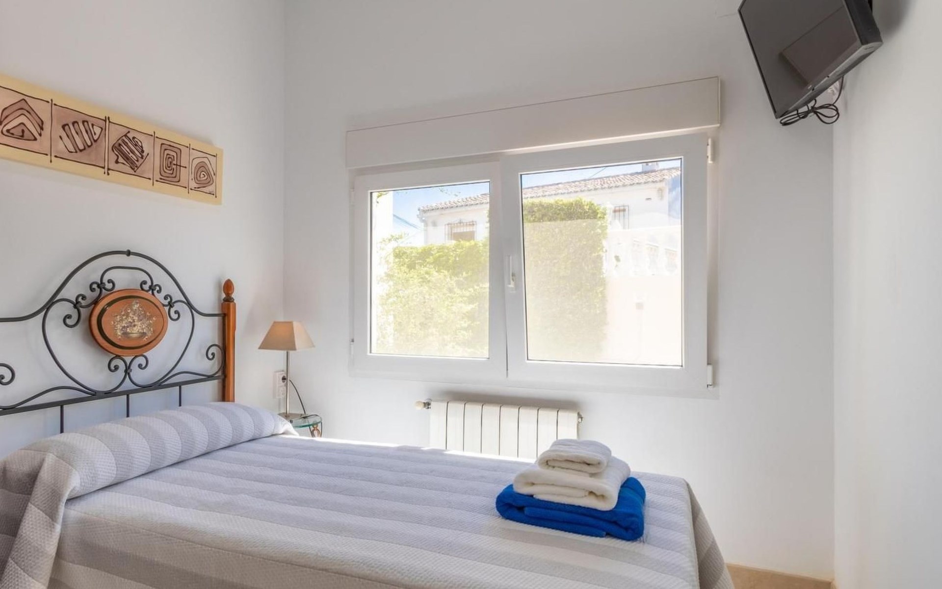 With capacity for up to 10 people, this holiday rental house in Denia is perfect to enjoy with family or friends. It has 5 comfortable bedrooms and 3 complete bathrooms. The kitchen is fully equipped with refrigerator, dishwasher, oven, microwave, coffee maker, toaster, blender, juice squeezer, kettle, crockery and cutlery. It also has indoor and outdoor dining areas, air conditioning, heating and WiFi.