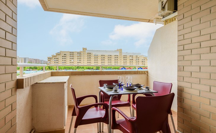 Jardines del Mar I: Cosy apartment block "Jardines del Mar I". On the outskirts Oropesa del Mar, in the district Marina D´or, in a busy, sunny position, 300 m from the sea, 300 m from the beach, on a main road. For shared use: swimming pool (20 x 10 m, depth 70 - 230 cm, seasonal availability: 15.Jun. - 15.Sep.). Children's pool, outdoor shower. In the house: lift. Roofed, parking at the house, public parking on the road. Supermarket 1 km, restaurant 400 m, bus stop 1.9 km, railway station 4 km, sandy beach 400 m. Nearby attractions: Mundo Fantasia, Park Aventura d'or, Minigolf Pirata, Polinesia Park. Please note: suitable for families, suitable for seniors. Main road 300 m from the property. Railway line 3 km from the property. Nightclub/disco 300 m from the property. Additional accommodations can be booked.