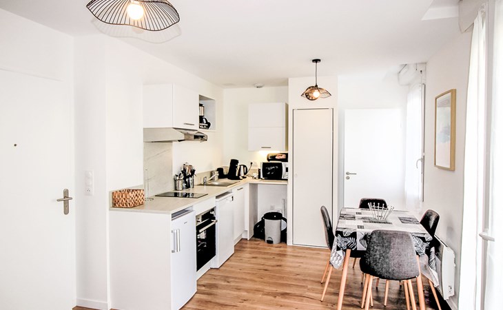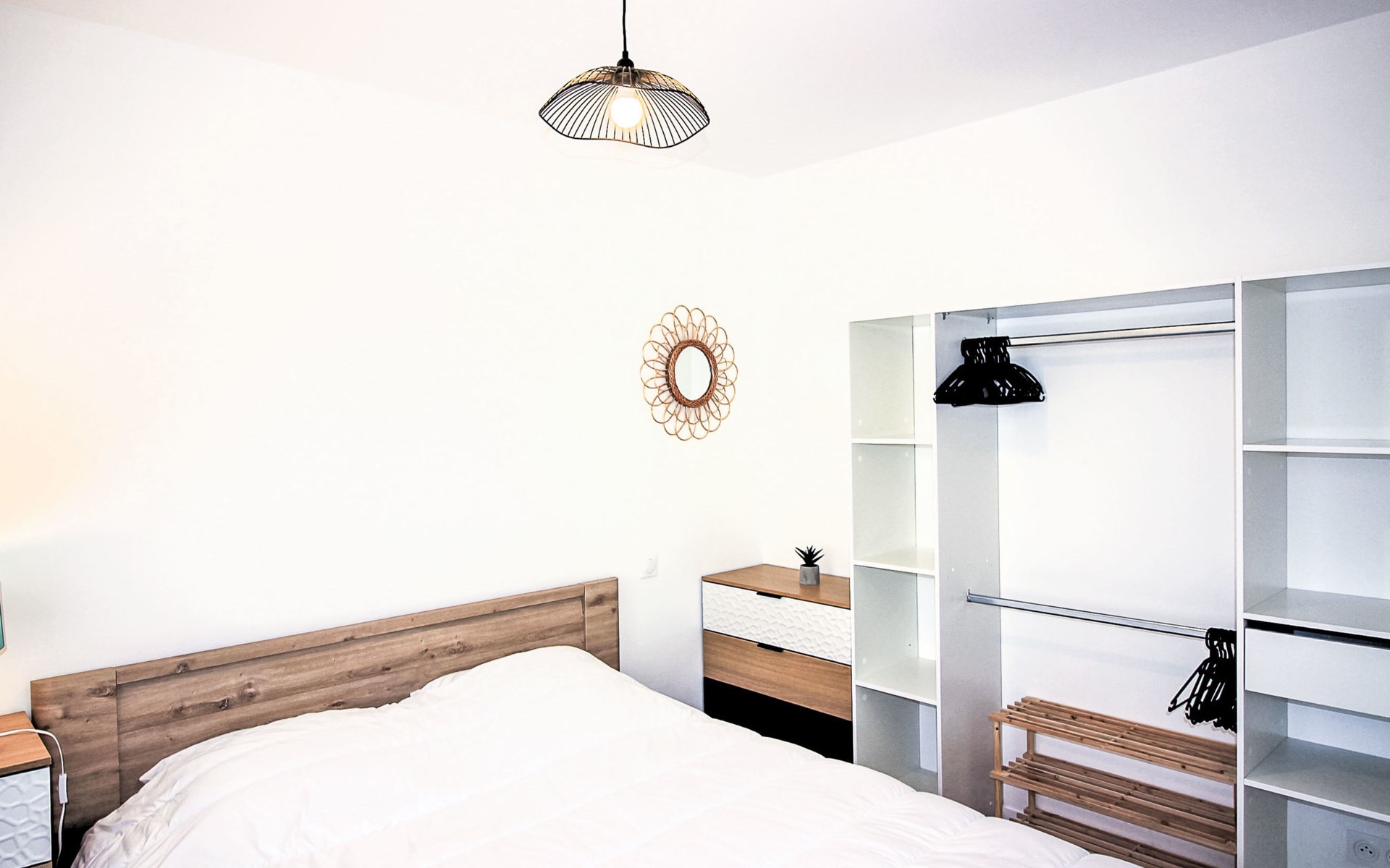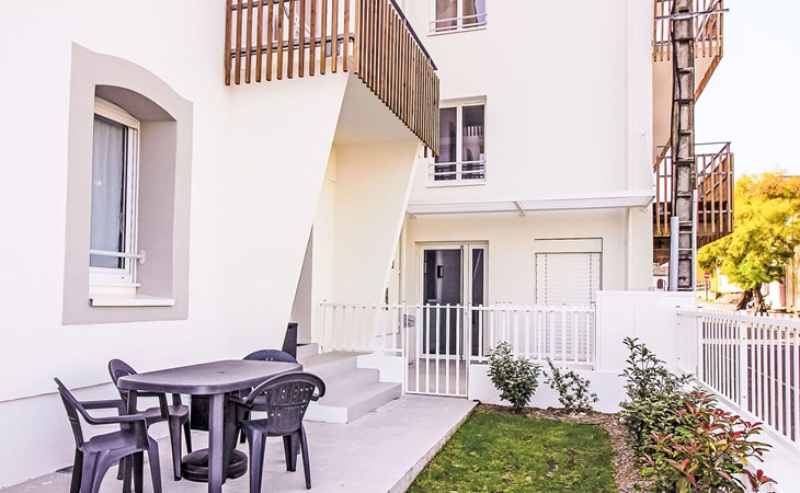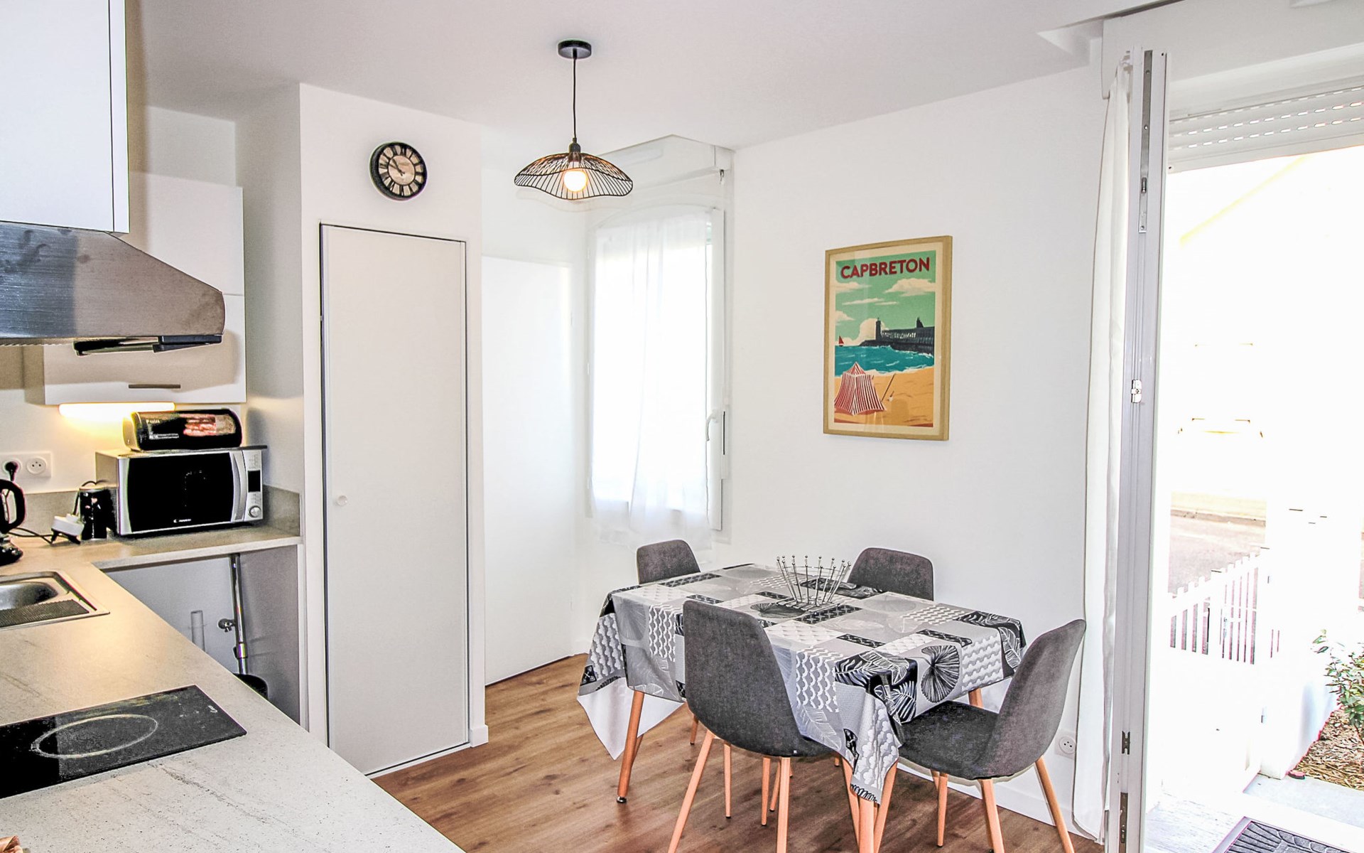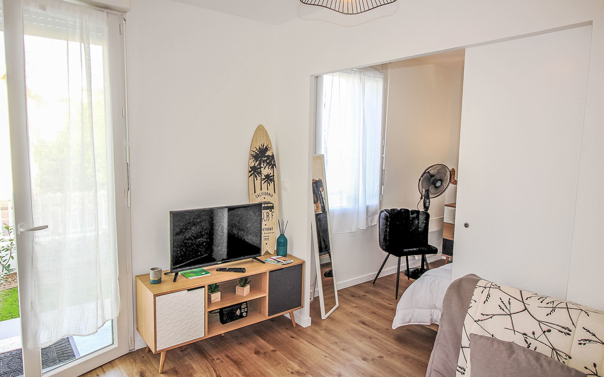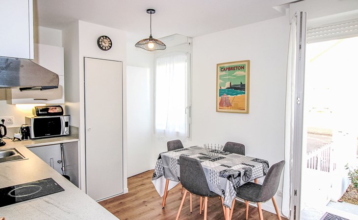 Capbreton: Apartment block "Cap Océan", 2 storeys, built in 2023. 17 apartments in the residence. In the resort, 150 m from the sea, 150 m from the beach. In the complex: washing machine, tumble dryer (for shared use). Public parking on the road. Shop 300 m, grocery 150 m, supermarket 1.8 km, restaurant 50 m, bakery 150 m, bicycle rental 100 m, sandy beach "Du Prévent". Golf course (18 hole) 4 km, surf school 150 m, tennis 3 km, minigolf 200 m, riding stable 1 km. Nearby attractions: Seignosse 15 km, Bayonne 22 km, Dax 37 km, Biarritz 37 km. Well-known lakes can easily be reached: Réserve Naturelle des Marais d’Orx, Réserve Naturelle du courant d’Huchet.
