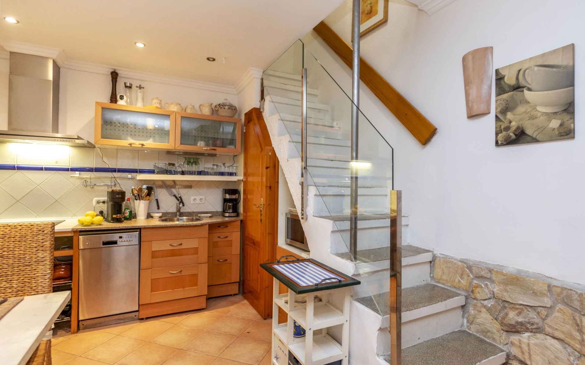 Vinaròs: Cosy, comfortable, historical house "Corazón de Vinaròs", 3 storeys, built in 1917, renovated in 2005. In the centre of Vinaròs historischen, in a central position, 200 m from the sea, 200 m from the beach, in a pedestrian area. In the house: roof terrace, air conditioning, washing machine. Narrow motor access. Central parking spaces. Short-stay parking zone (fee). Grocery 200 m, supermarket 250 m, shopping centre 3 km, restaurant 150 m, bar 100 m, bakery 300 m, café 20 m, bus stop "Carrer del Soro, 18" 550 m, railway station "Vinaròs" 2.3 km, sandy beach "Playa del Fortí" 200 m. Sports harbour 600 m, golf course (18 hole) 16 km. Nearby attractions: Castillo de Peñiscola 15 km, Laberinto Peñiscola (más grande España) 16 km, Delta del Ebro 30 km, Ciutat de les Arts i les Ciències 150 km, Morella 60 km, Port Aventura 105 km. Hiking paths: Parque Natural Sierra de Irta 19 km. Please note: no lift. The owner does not accept any youth groups. The apartment is located in a zone with limited traffic. Neighbourhood highly sensitive to noise. Quietness and good behaviour expected.