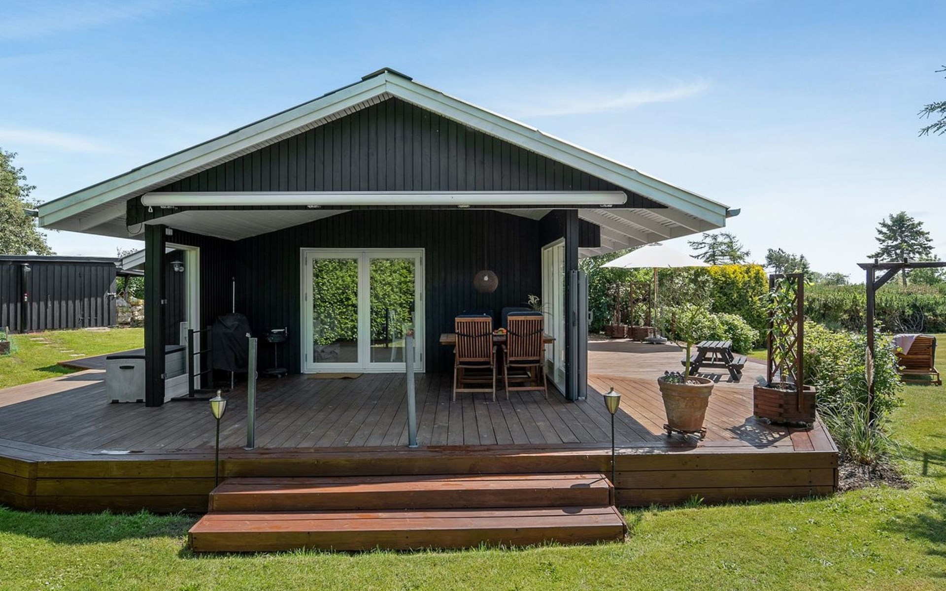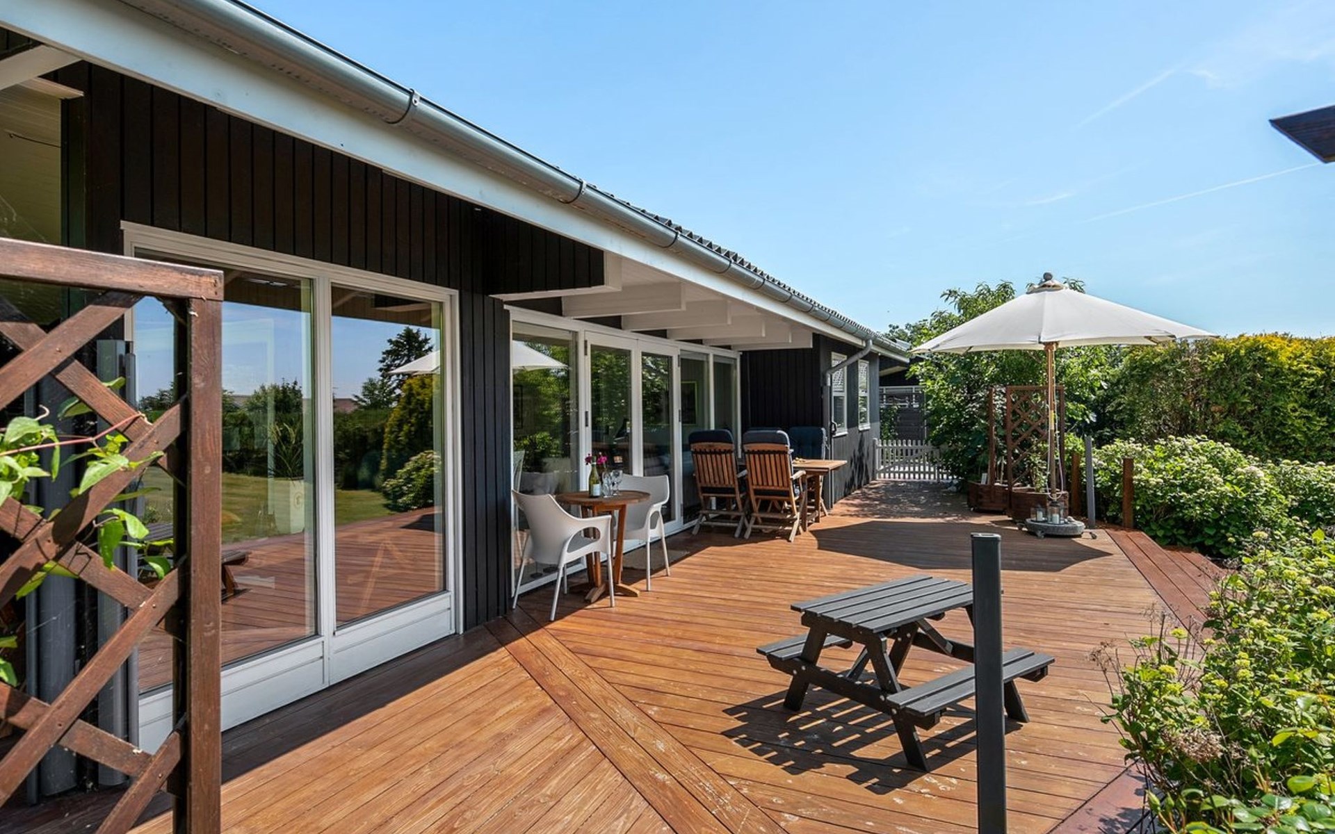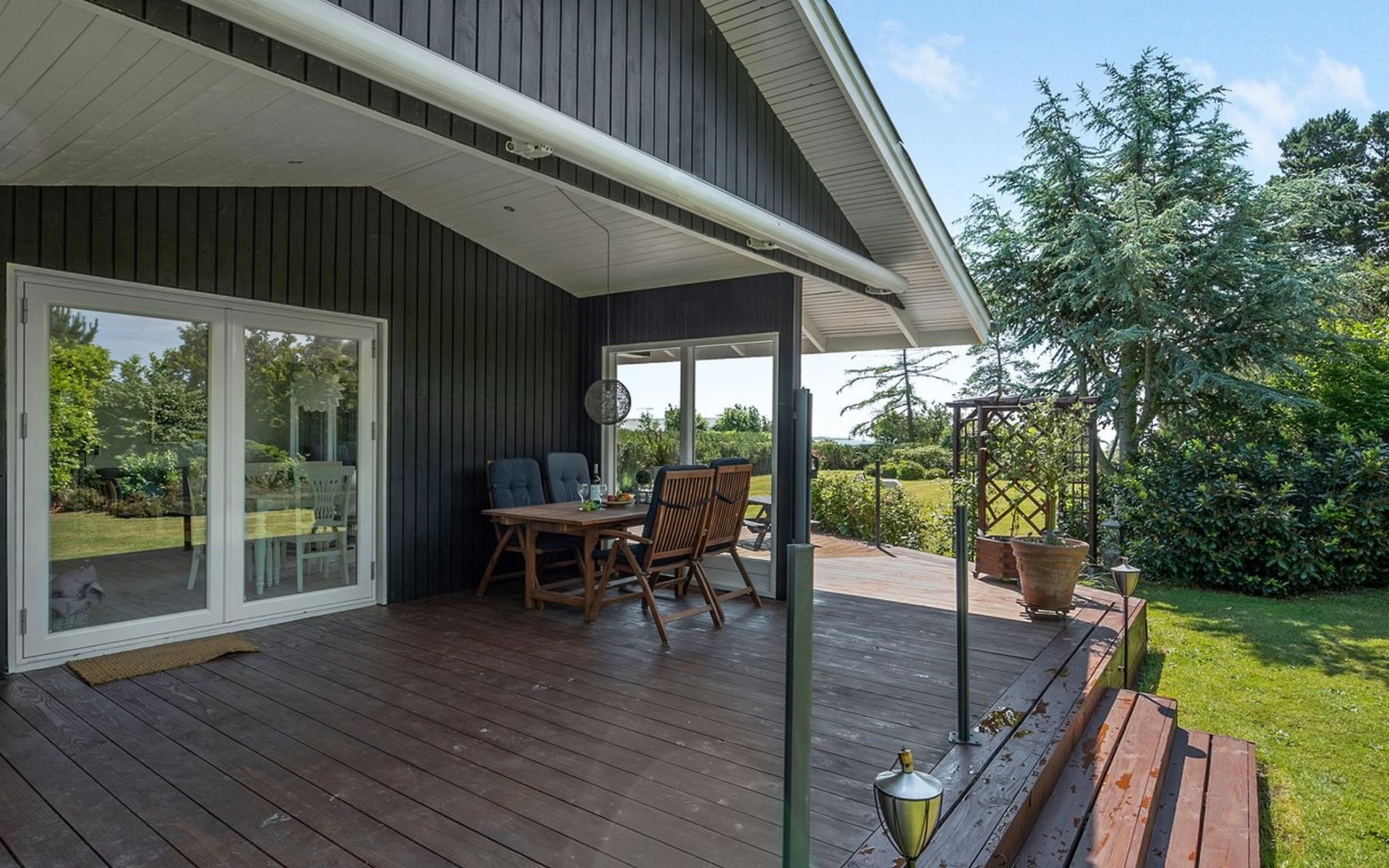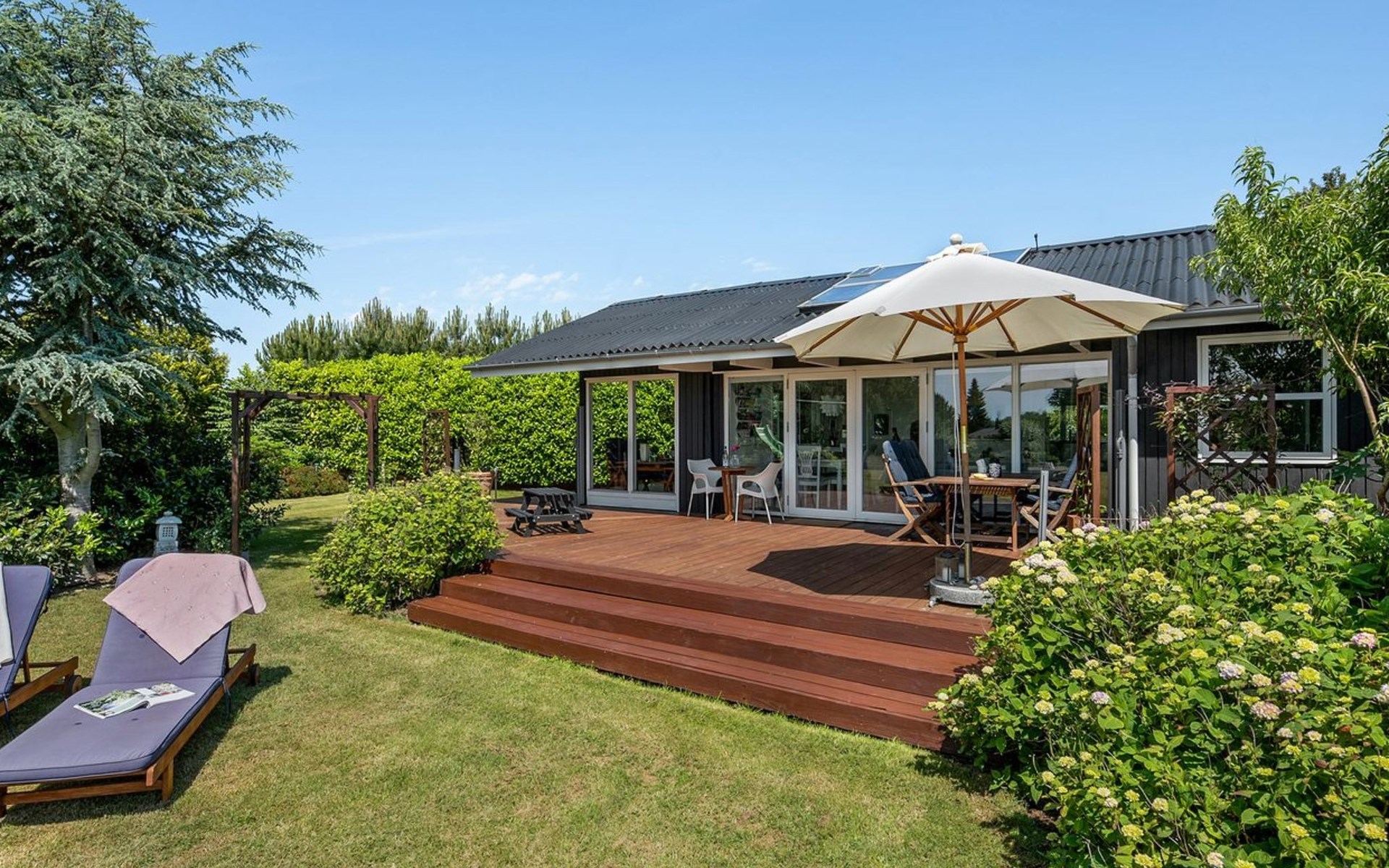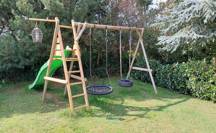 Single-family house, built in 1967. 150 m from the sea. Private: property 1'120 m2, well-kept garden. Outdoor shower, barbecue, children's playground (slide, swing). In the house: washing machine, tumble dryer. Parking at the house. Grocery 2 km. The owner does not accept any youth groups.