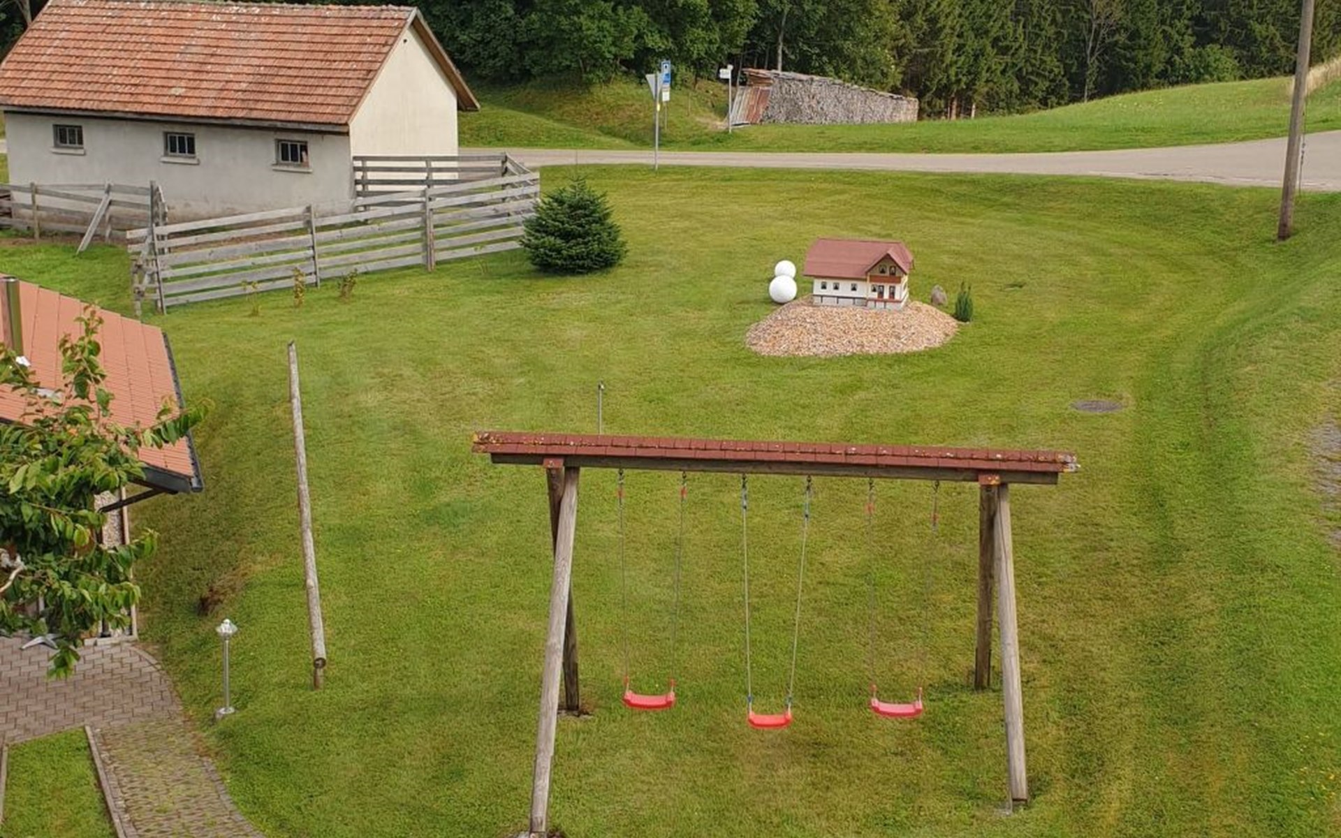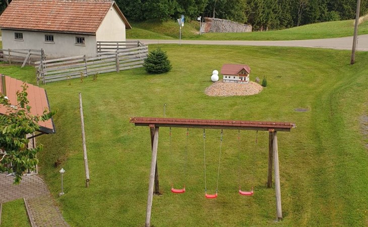 - For our welcome little guests we offer an in-house playground with swings, slide, sandpit and a large meadow to romp around, table tennis, bobby car, tractor, scooter and entertainment games, ..... and NEW: our giant trampoline For common use are our sunbathing lawn, which is equipped with 5 deckchairs and parasol, as well as our garden barbecue with garden seating area. In summer, we offer cosy get-together barbecue evenings for our guests once a week on request. - There are plenty of parking spaces around the house and motorbikes can be parked in the carport. - In winter, sledges and toboggans are provided free of charge and snowshoes are available for hire. - . - Your four-legged family member is also very welcome in our house. The popular morning and evening walks for our guests with their four-legged friends, ...... can be started directly from the house. Dog bags are provided free of charge. - Our holiday home is also ideal as accommodation for bikers. Drying rooms and storage facilities are available to provide perfect accommodation for your "machine".