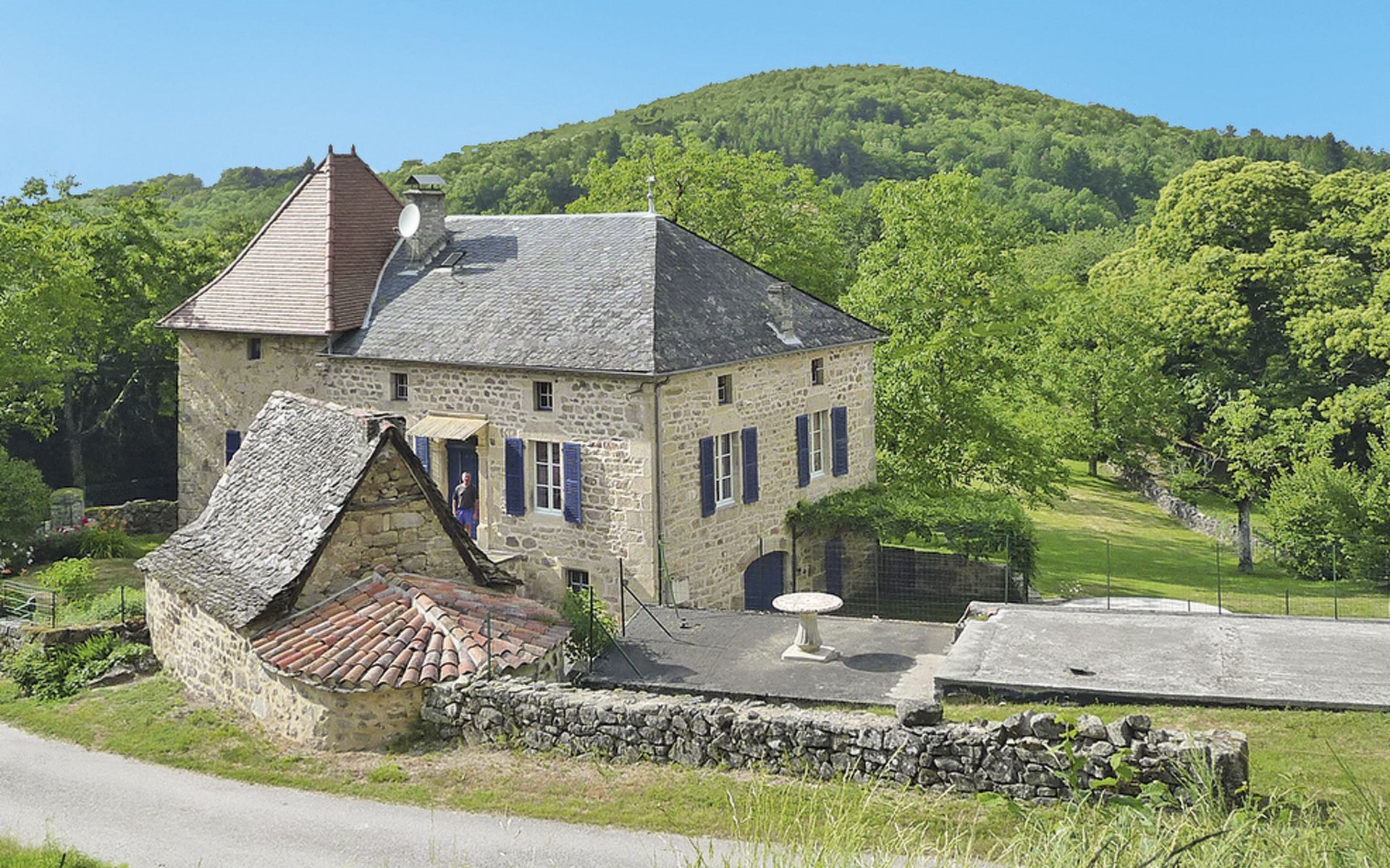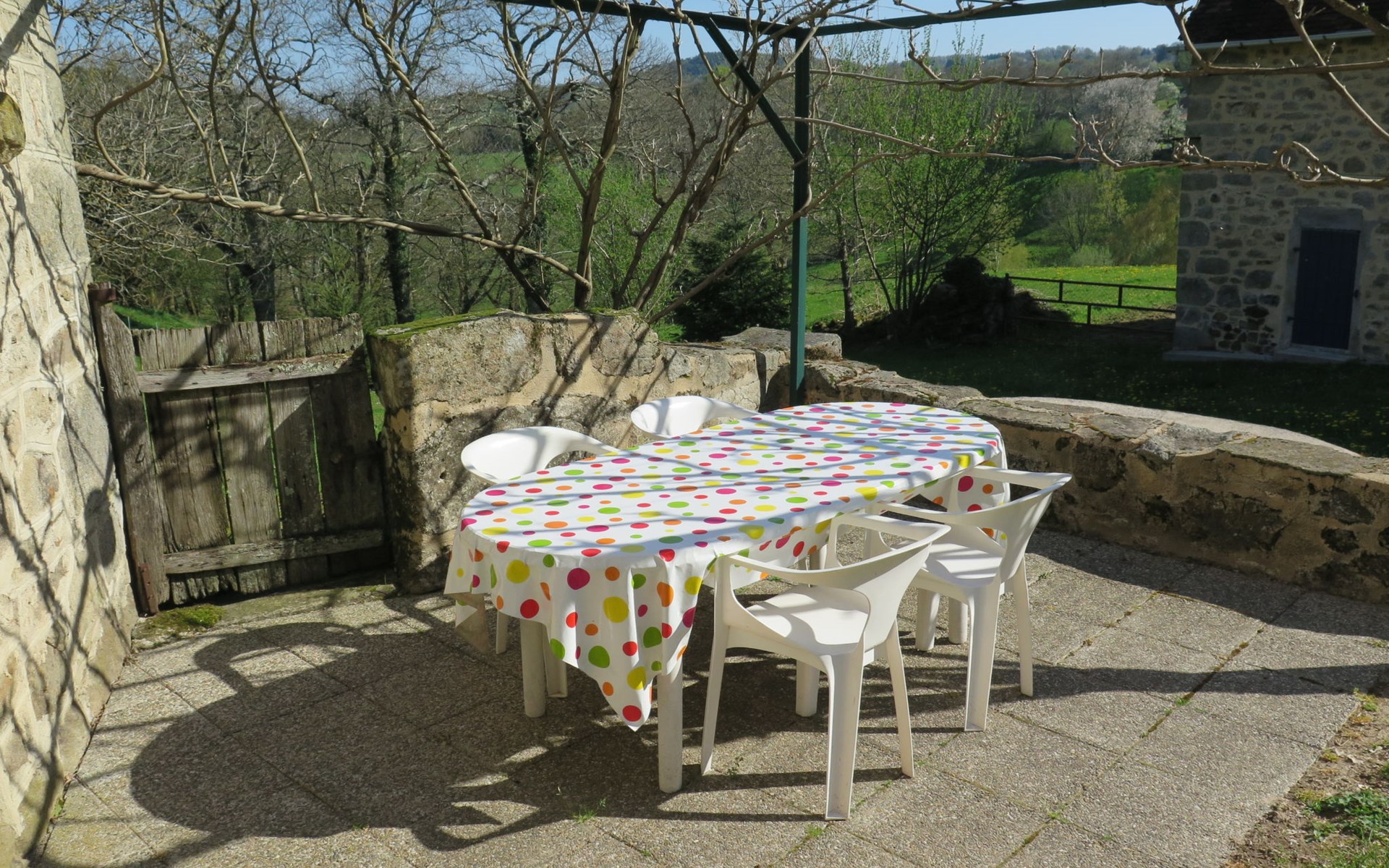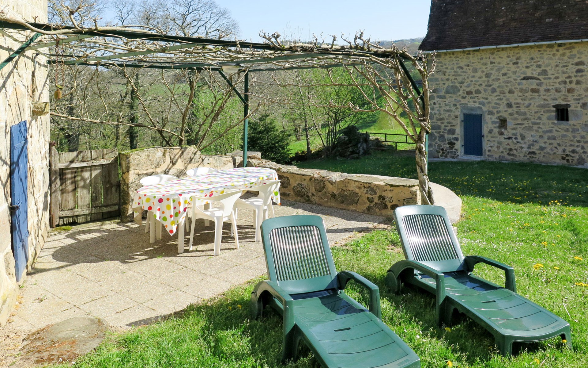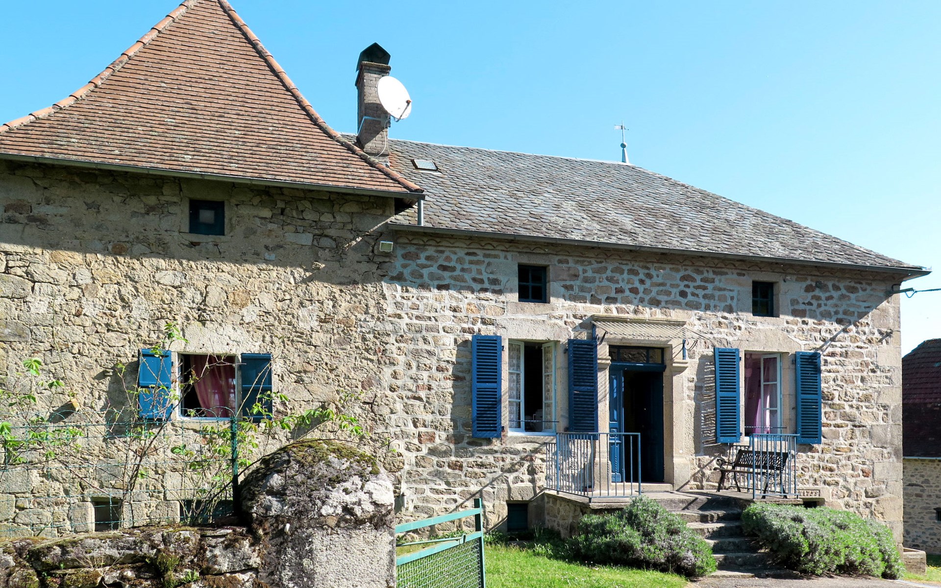 Rustic country house "Cazals", 430 m a.s.l., surrounded by meadows and fields. 700 m from the centre of Teyssieu, 13 km from the centre of Bretenoux, 14 km from the centre of Saint Céré, in a quiet position on a slope, 4 km from the river. Private: natural state property 5'000 m2 (fenced) with wildlife garden and trees, swimming pool (above ground) (3.80 m diameter, depth 90 cm, seasonal availability: 01.May. - 15.Sep.). Table tennis. Stepped path (4 steps) to the house. Parking at the house on the premises. Shop 700 m, supermarket 13 km, bus stop "Laval-de-Cère" 7 km. Golf course (9 hole) 14 km.
