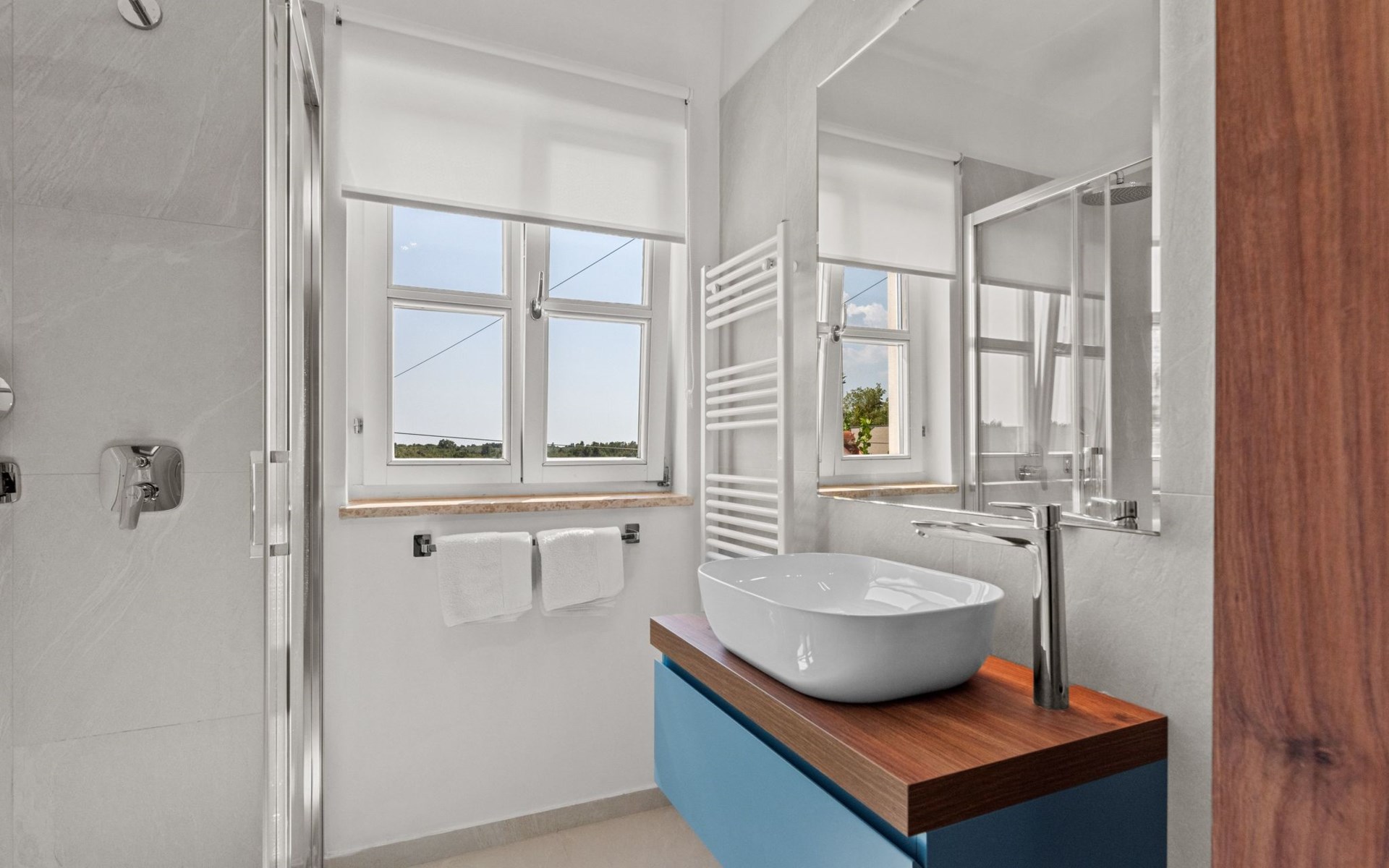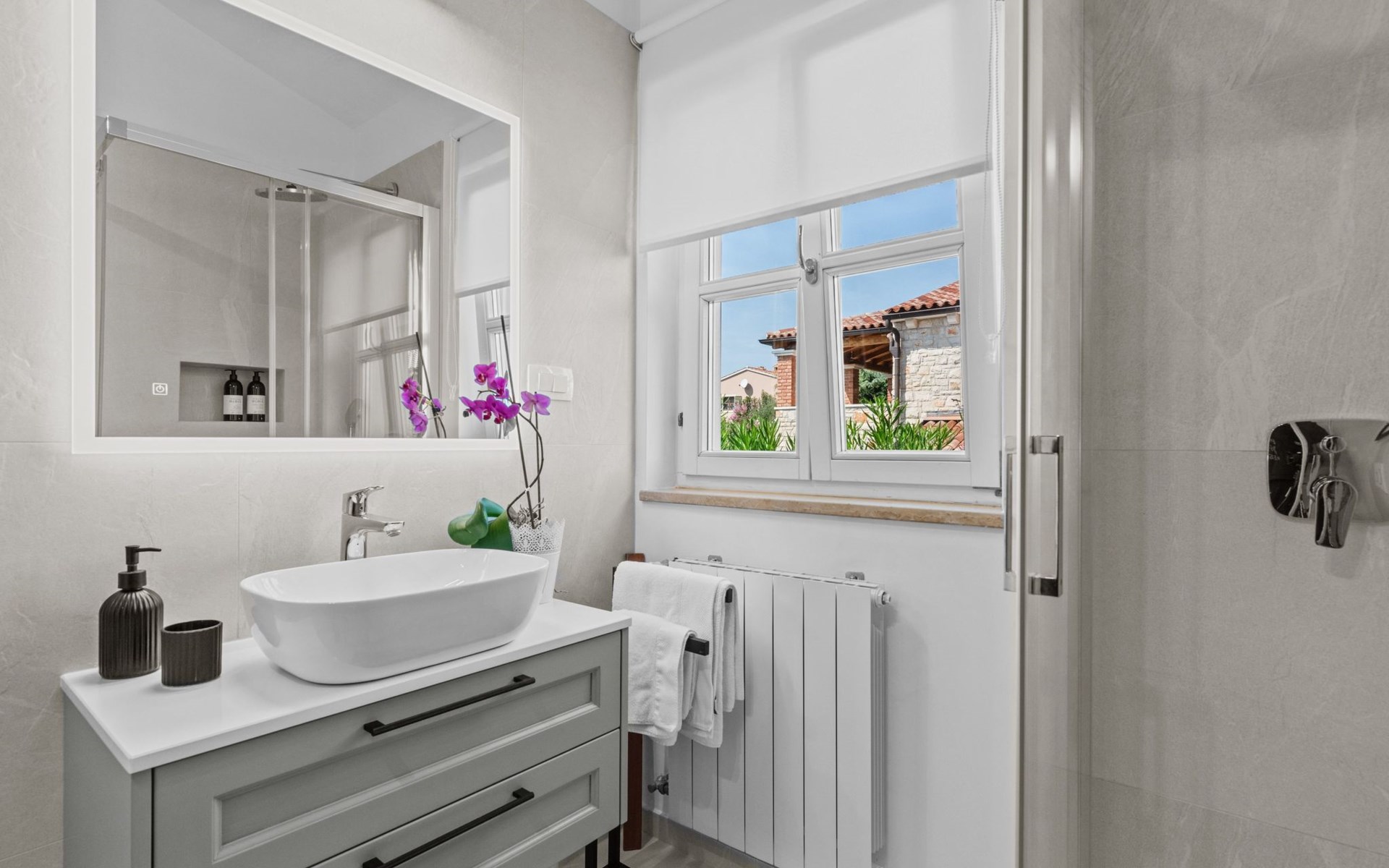 The house benefits from an excellent location at the edge of a very quite village of Vabriga. The village is located between vibrant towns of Porec (8 km) in the south and Novigrad (9 km) in the north.There is a hotel resort only 1 km away with nice beaches and excellent water sports facilities and tennis courts and our guests get pass for free parking and entrance . If you would like to do horse riding or go carting , they are located only 5 minutes by car from the house.The village has a very well equipped supermarket shop with a butcher shop and their own bakery. Also not far away there is a fishmonger with daily fresh supply of fish. The main shopping centers are located in Porec and Novigrad. There are few restaurants and bars in the village within walking distance from the house.