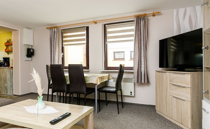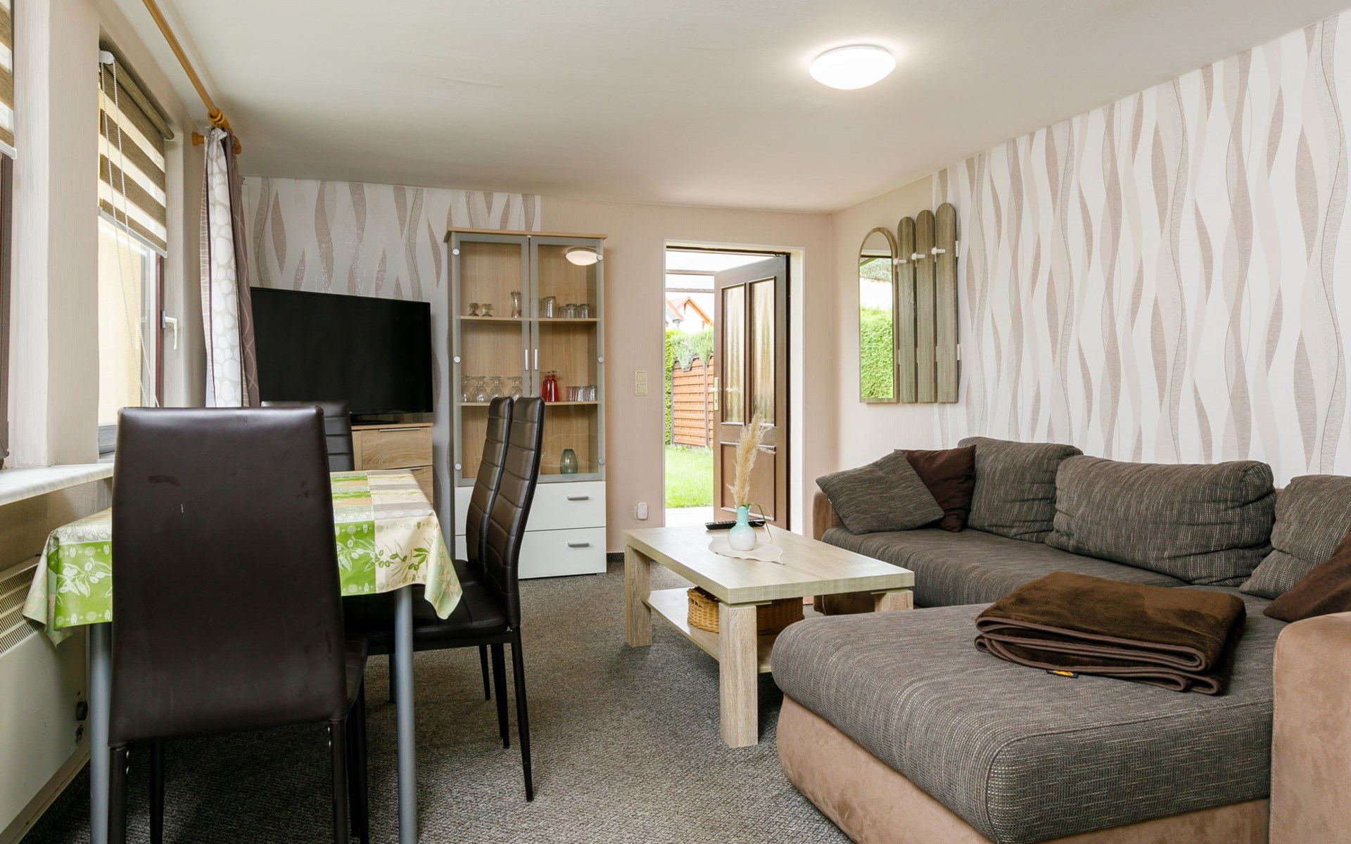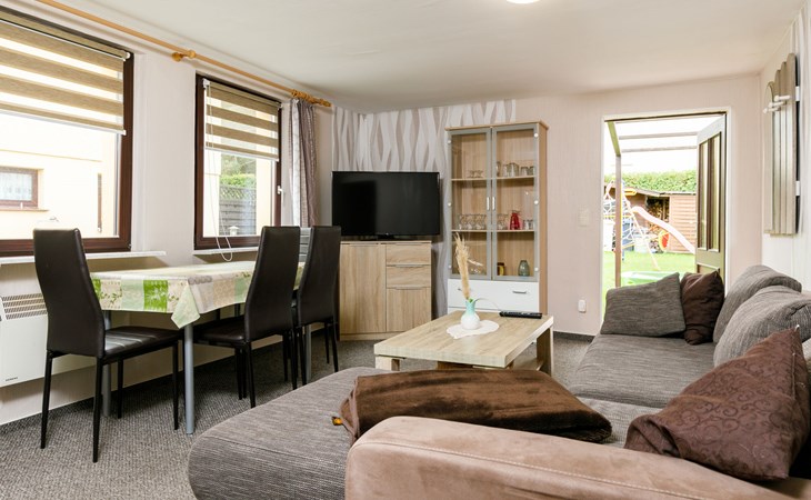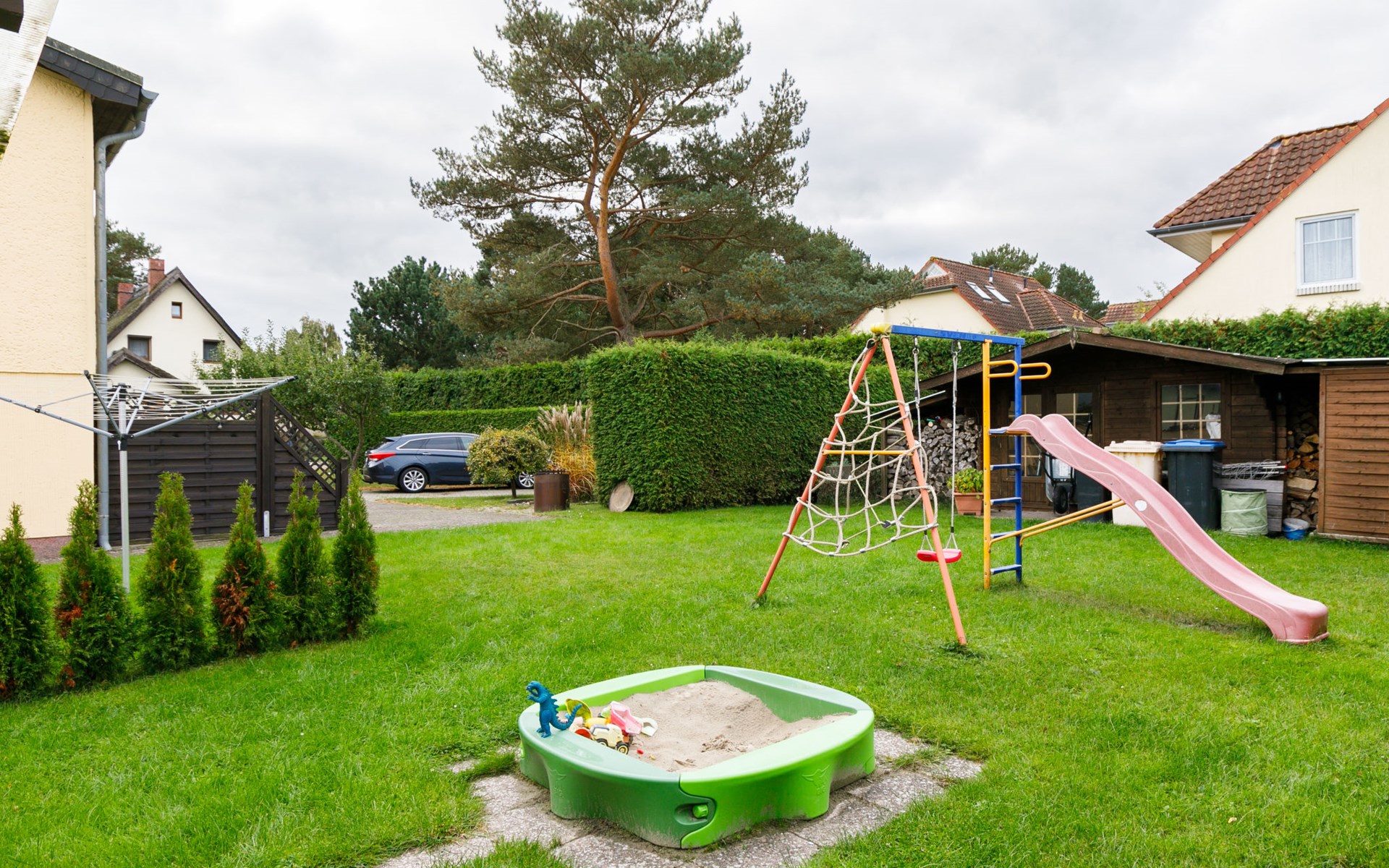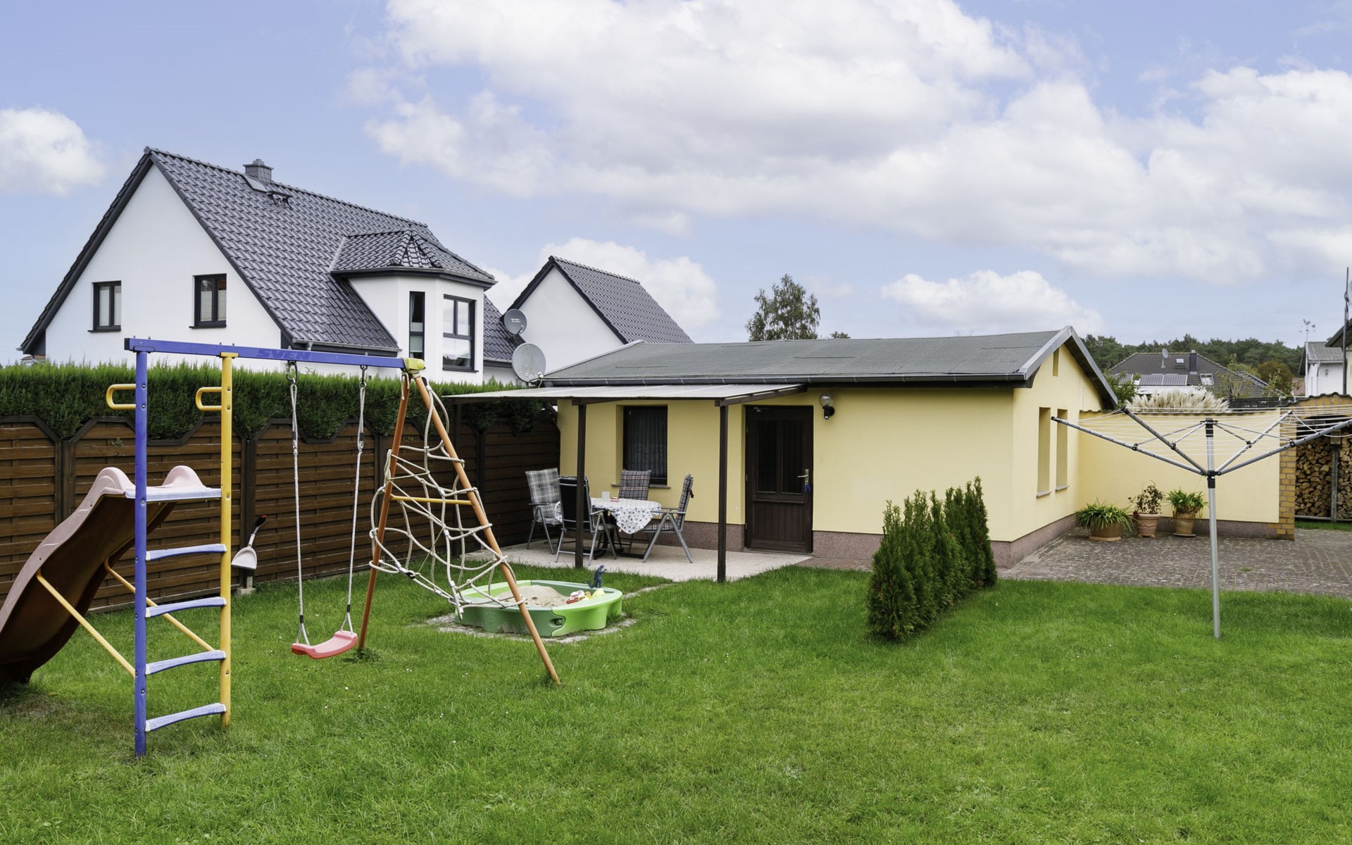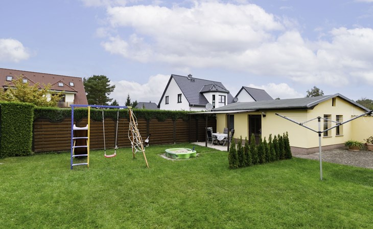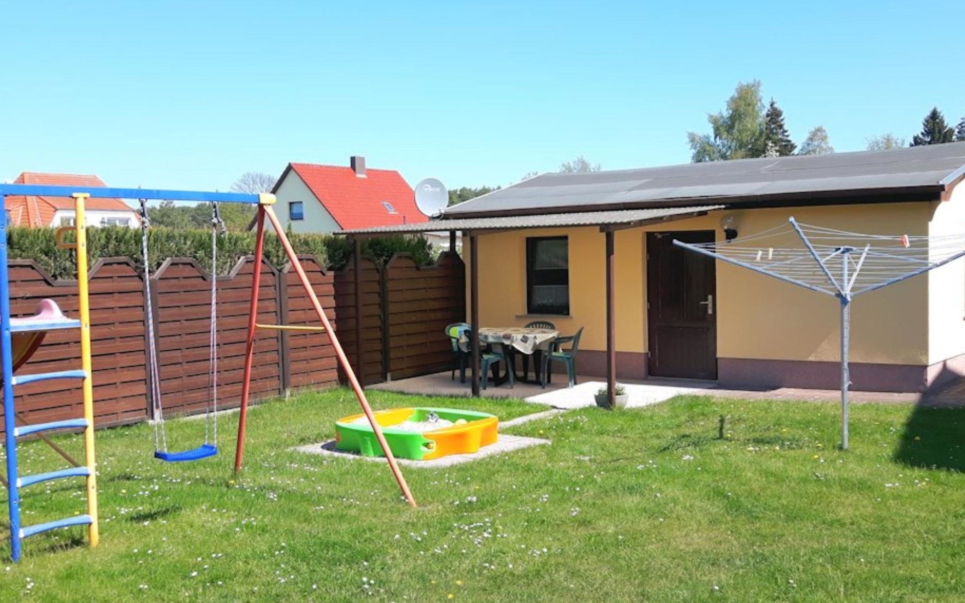 Bungalow "Ehmke". On the outskirts, 1 km from the centre of Karlshagen, 1.5 km from the sea, 1.5 km from the beach. For shared use: well-kept garden with lawn. (swing, sandbox), parking on the premises. Supermarket, restaurant, bakery, café, bus stop 550 m, railway station 1.2 km, sandy beach 1.5 km, thermal baths "Bernsteintherme" 10 km. Golf course (18 hole) 32 km, surf school 2 km, minigolf 10 km.