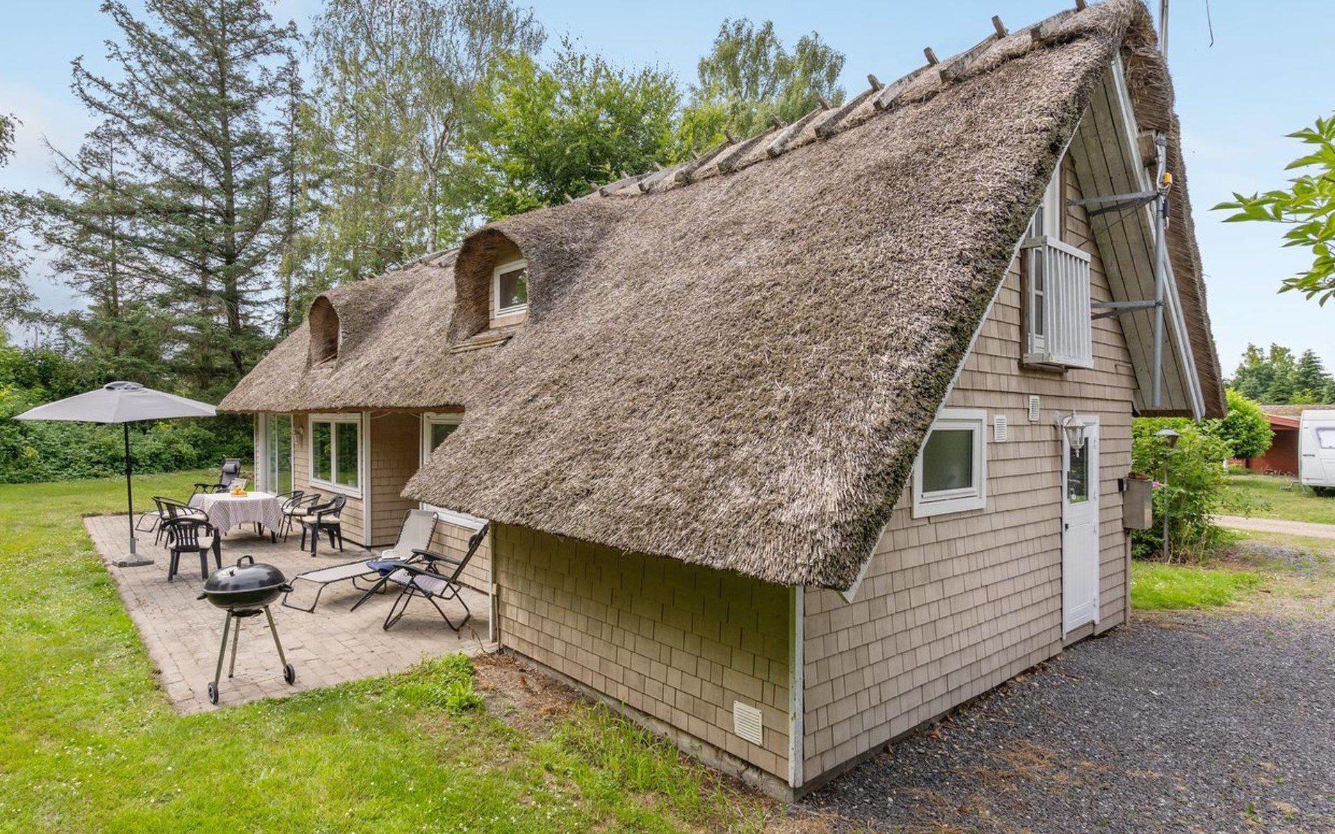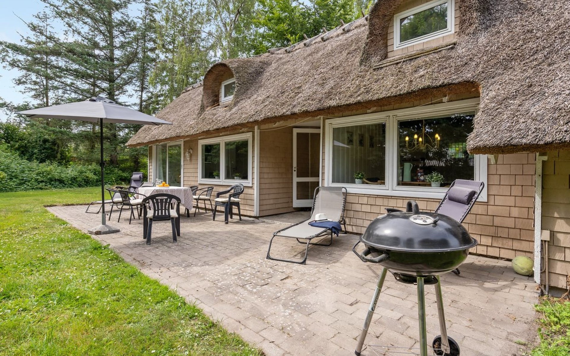 Single-family house, built in 1969. 750 m from the sea. Private: natural state property 1'150 m2. Barbecue. In the house: washing machine, tumble dryer. Parking at the house. E-charging station. Grocery 1 km. Golf course 850 m. The owner does not accept any youth groups.