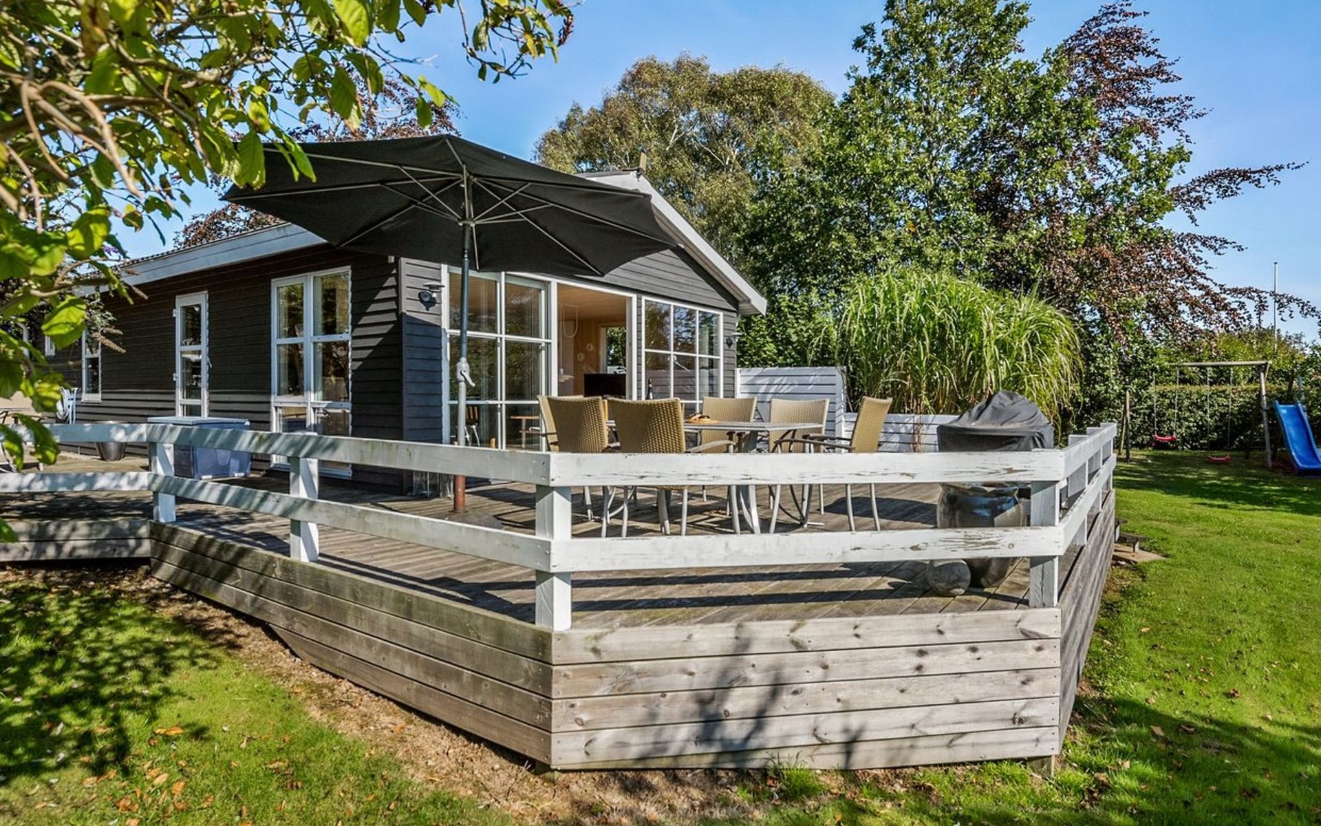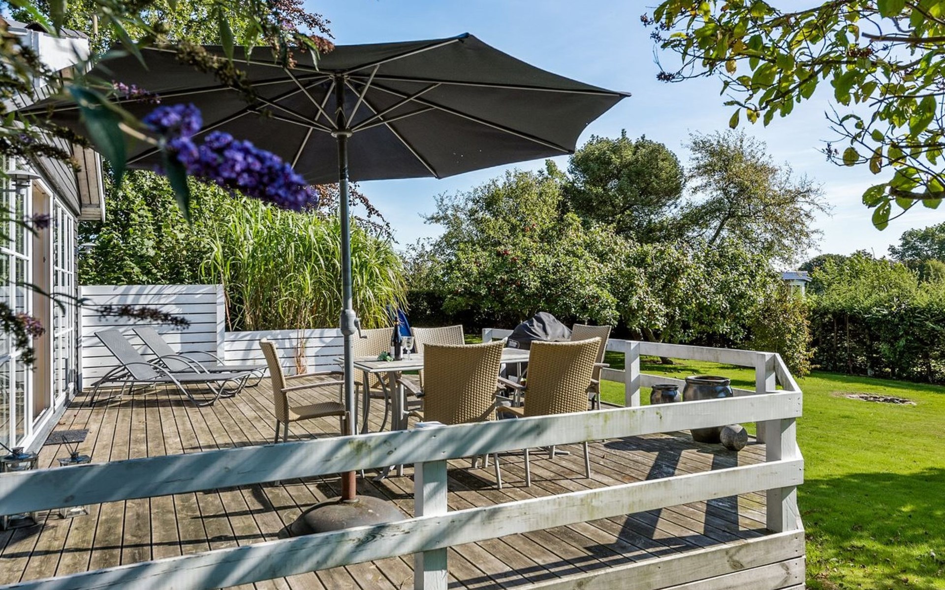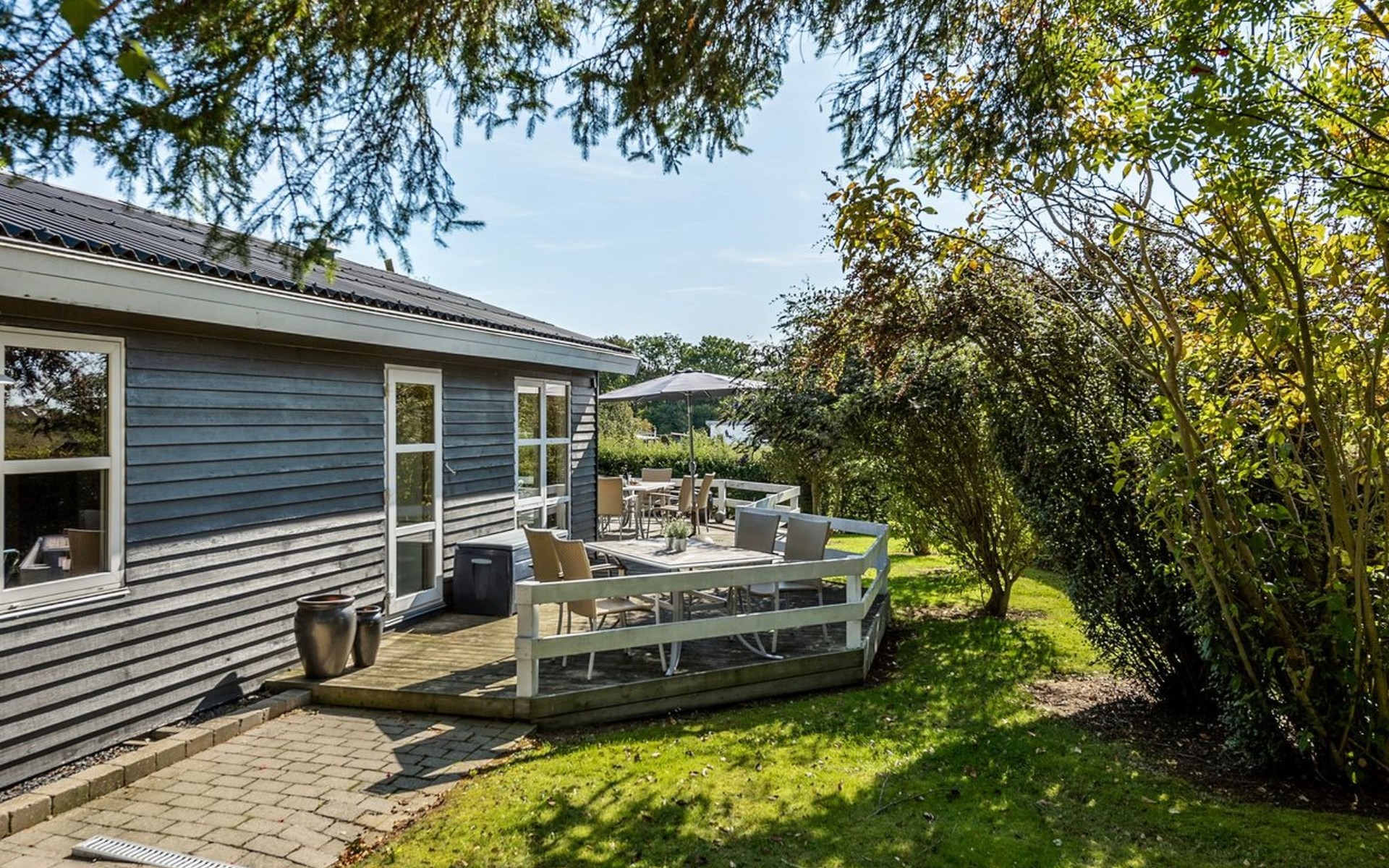 Single-family house, built in 1969. 600 m from the sea. Private: property 890 m2, well-kept garden. Terrace (25 m2), barbecue, children's playground (swing). In the house: washing machine, tumble dryer. Parking at the house. Carport. Grocery 5 km. The owner does not accept any youth groups.
