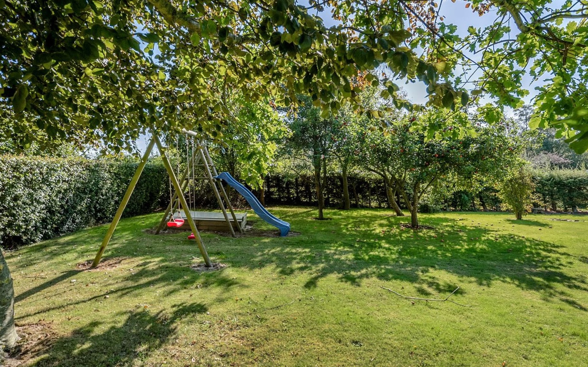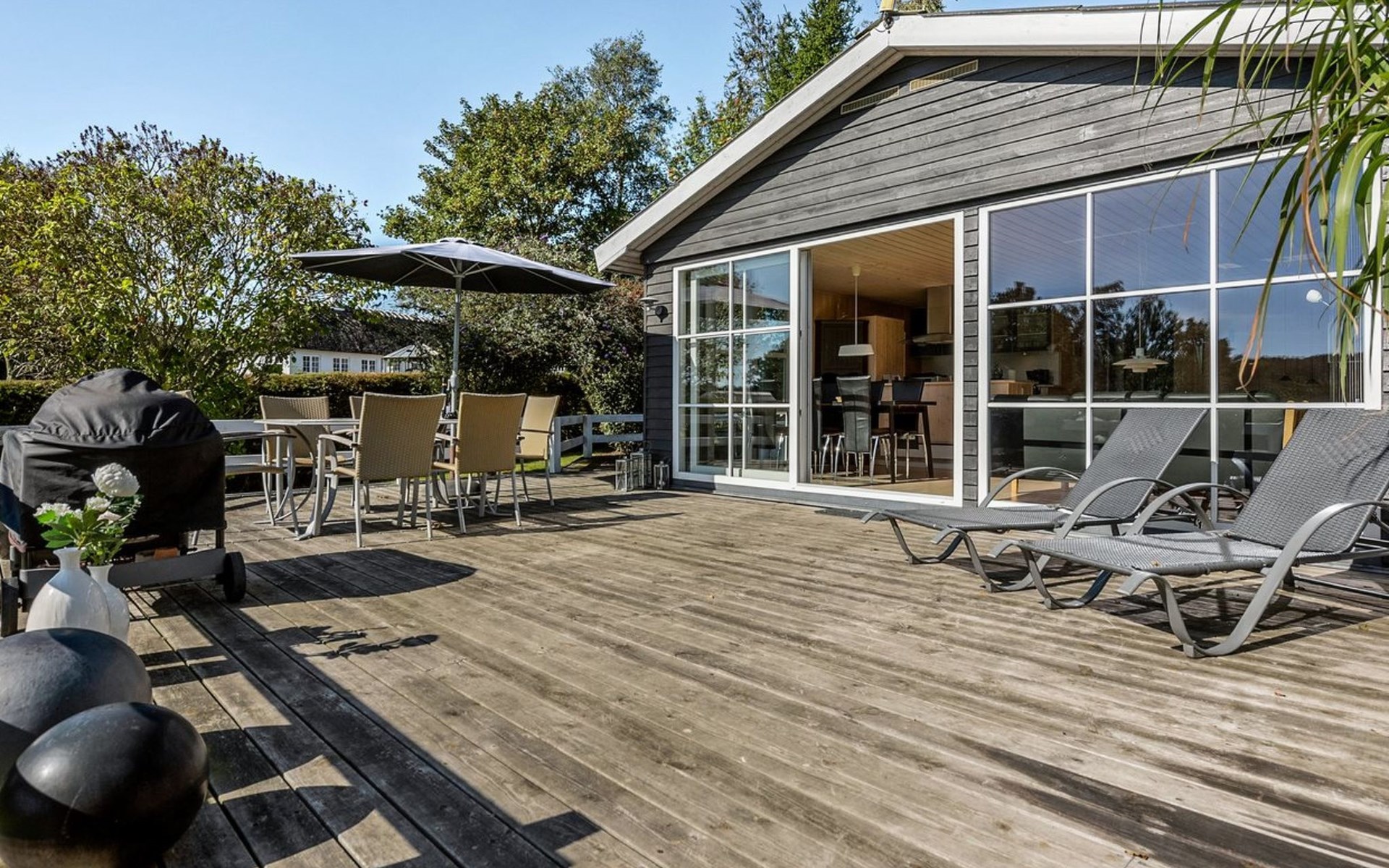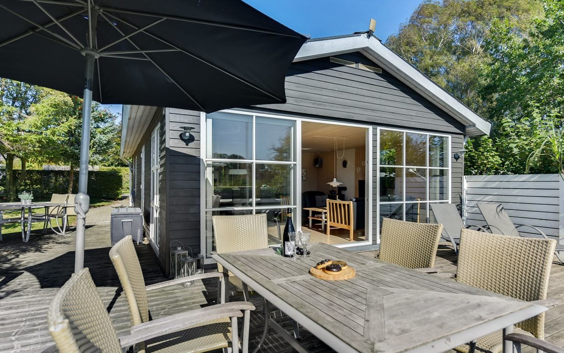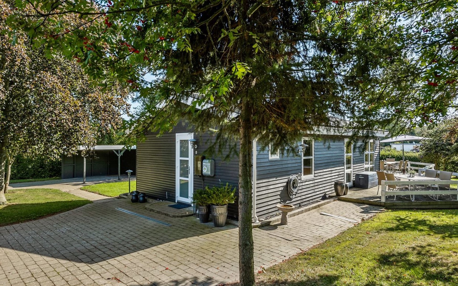 Single-family house, built in 1969. 600 m from the sea. Private: property 890 m2, well-kept garden. Terrace (25 m2), barbecue, children's playground (swing). In the house: washing machine, tumble dryer. Parking at the house. Carport. Grocery 5 km. The owner does not accept any youth groups.