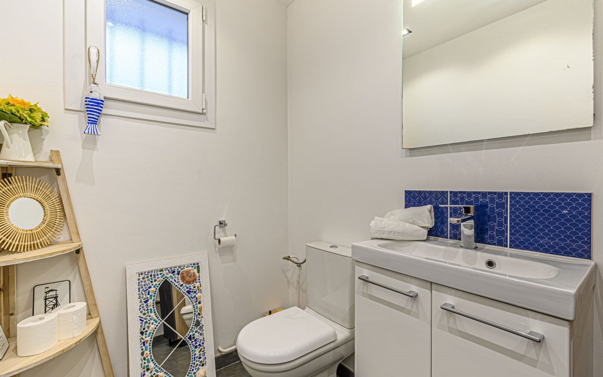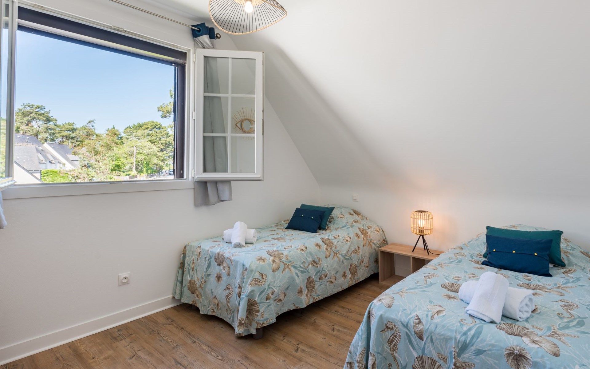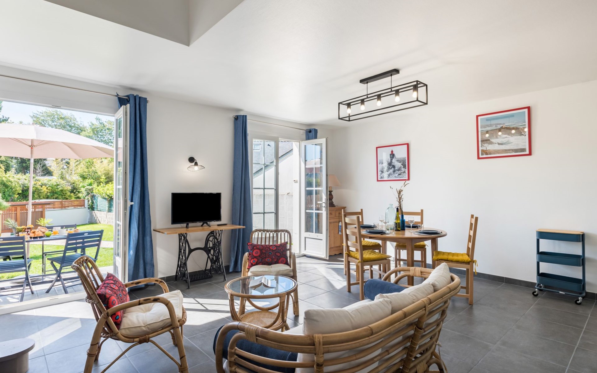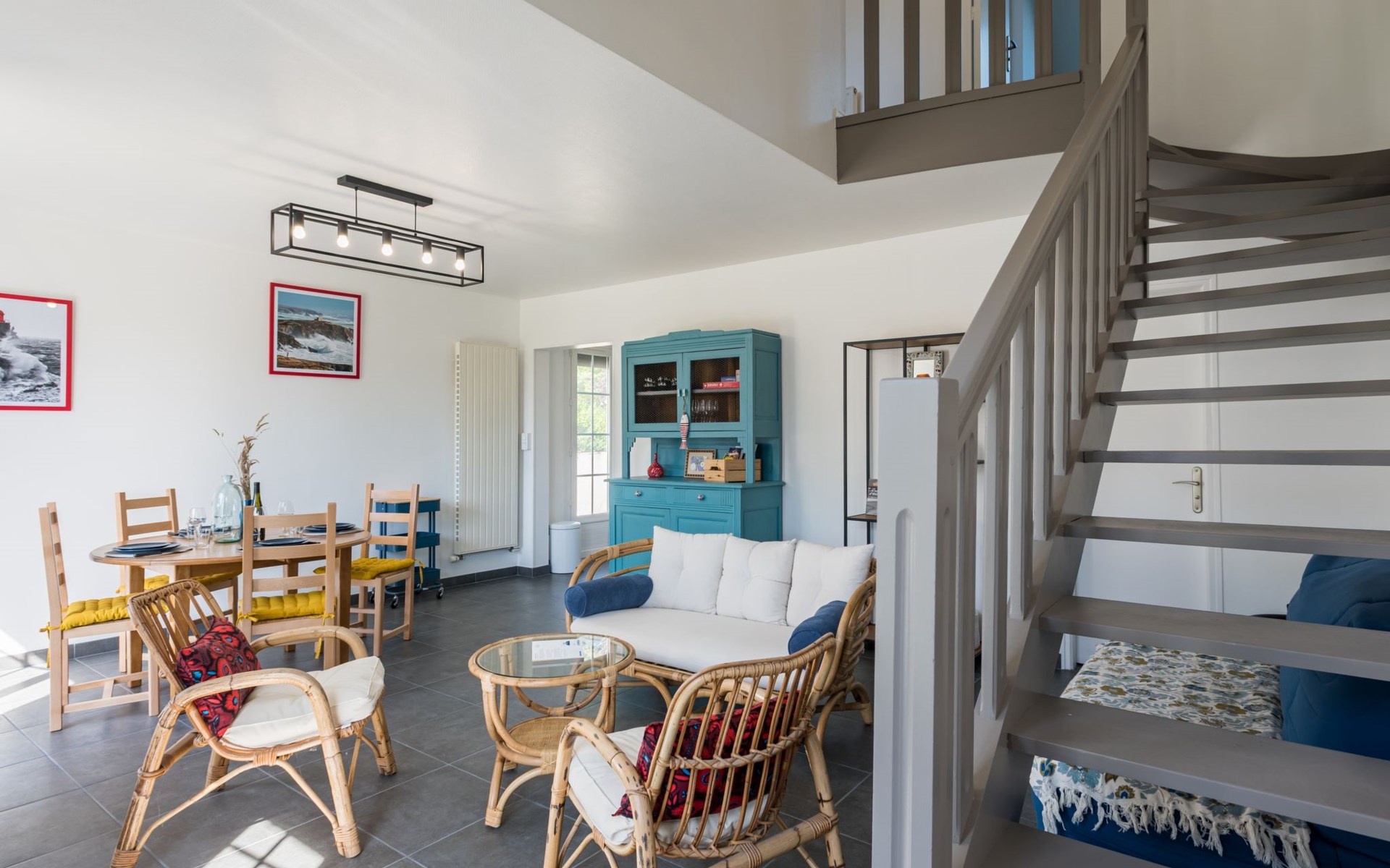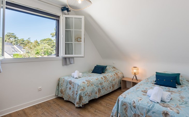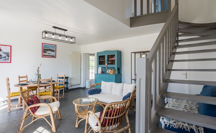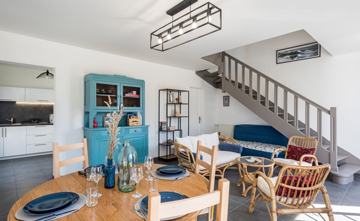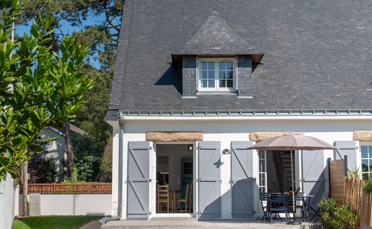 Terraced house "Bretagne", 2 storeys, renovated in 2021. In the resort 1.5 km from the centre of Carnac, 200 m from the sea, from the beach. Private: garden 200 m2 (fenced), parking at the house. Supermarket 50 m, restaurant 200 m, sandy beach "Grande plage et Men dû" 300 m, indoor swimming pool 1.5 km, thermal baths "Thalassothérapie Thalazur" 1.5 km. Sports harbour 4 km, golf course (18 hole) 15 km, sailing school 1.5 km, tennis 300 m. Nearby attractions: Site Mégalithique 4 km, La Trinité sur Mer 4 km, Presqu'ile de Quiberon 20 km, Vannes 30 km, lorient 50 km, Belle île en Mer, Houat, Hoedic. Hiking paths: Le Golfe du Morbihan.