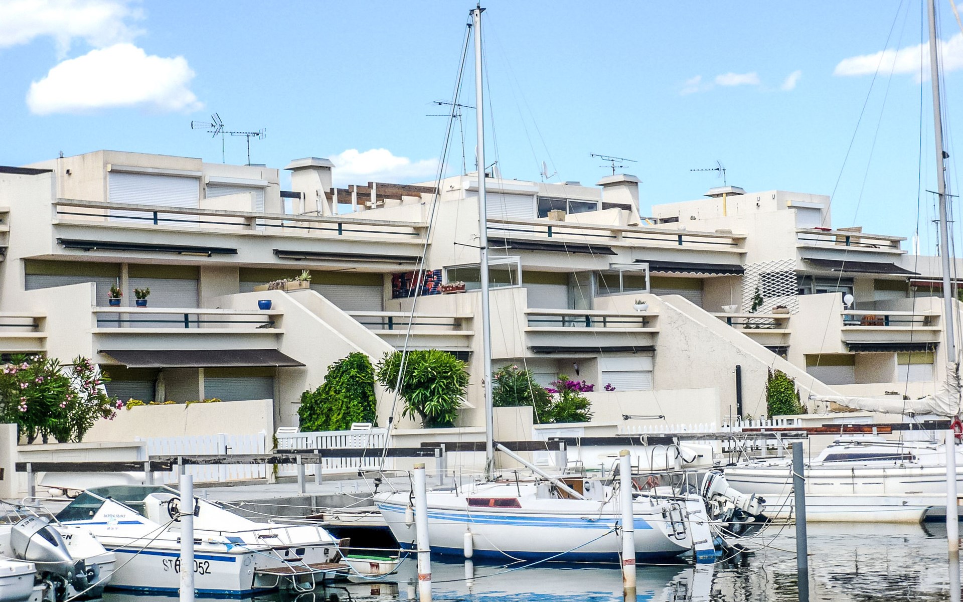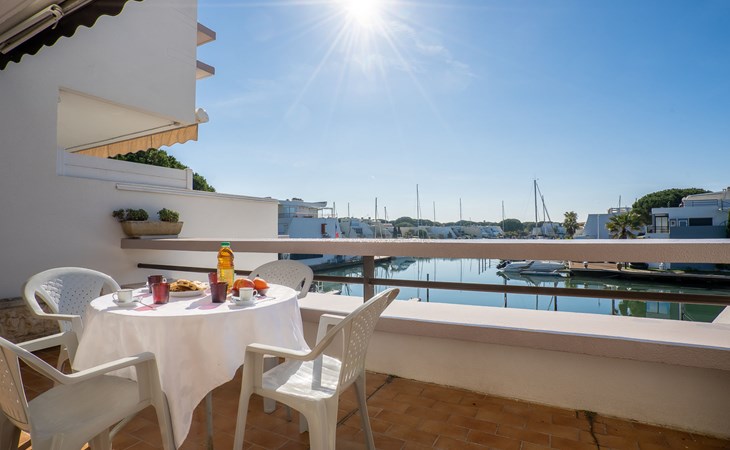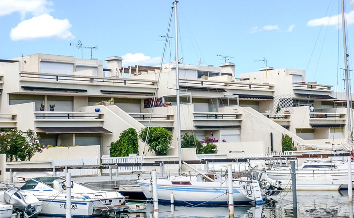 Residence "Les Marinas d'Ulysse IV", 3 storeys. In the district of les Marinas I, 1.2 km from the sea, 1.2 km from the beach. Shop, grocery 250 m, supermarket 4 km, shopping centre, restaurant 250 m, sandy beach "Plage Sud" 1.2 km, thermal baths "Thalazur les Bains de Camargue" 2.5 km. Sports harbour 10 m, tennis 600 m, riding stable 2 km. Nearby attractions: Seaquarium 3.6 km, Casino Flamingo 4 km, Aigues-Mortes 8 km, La Grande-Motte 13 km, Montpellier 30 km, Nîmes 52 km. Hiking paths: Réserve Naturelle de Camargue. Please note: airfield 24 km from the property.