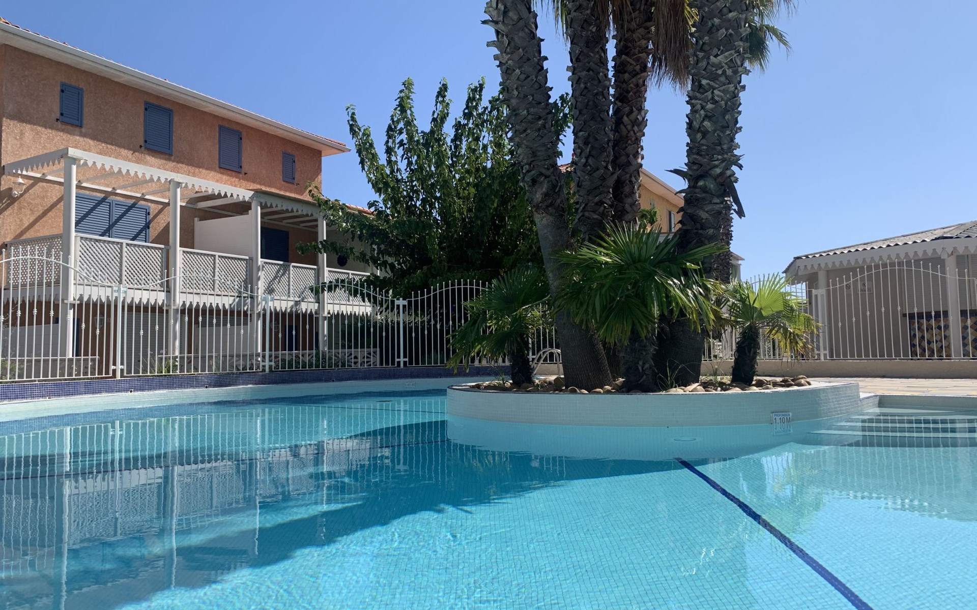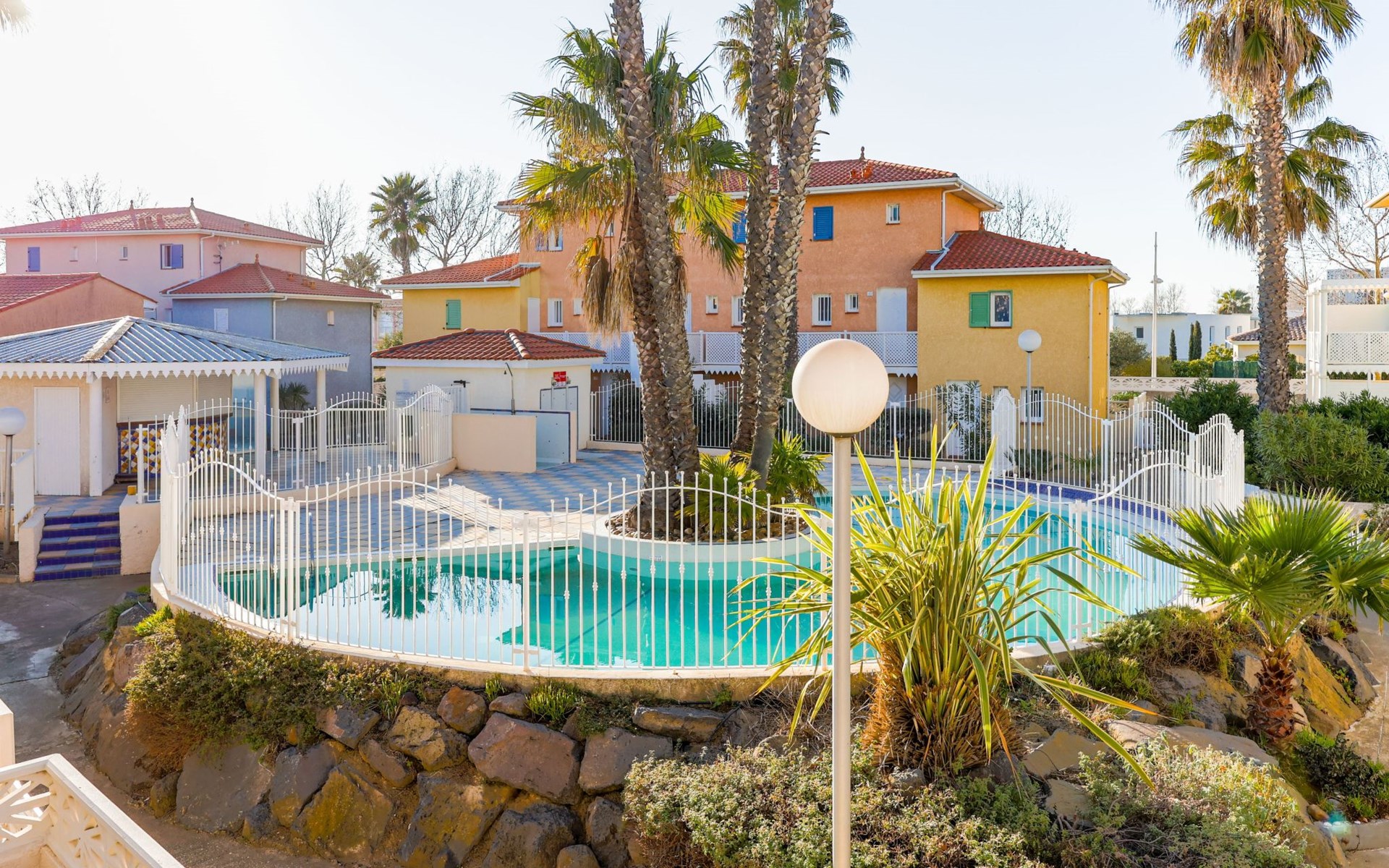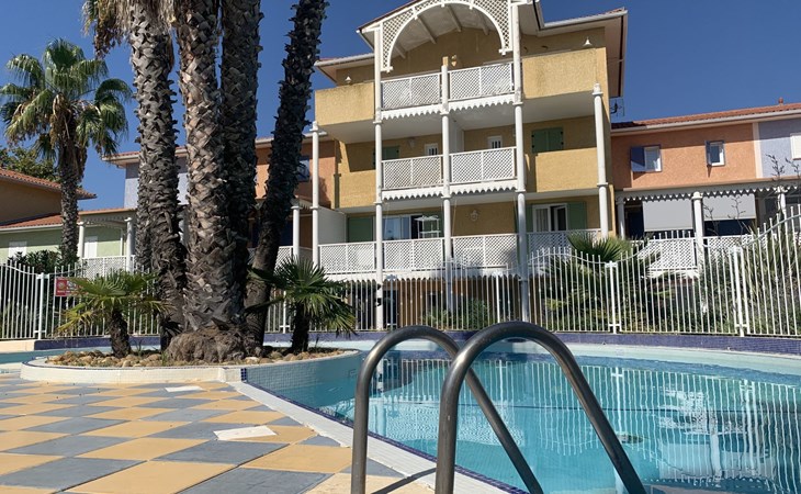 Beautiful residence "La Belle Créole". Rochelongue, 450 m from the sea, 450 m from the beach. For shared use: swimming pool (depth 160 cm, seasonal availability: 01.May. - 15.Oct.). Grocery 290 m, restaurant 300 m, bakery 350 m, bicycle rental 250 m, bus stop "Mail de Rochelongue" 400 m, sandy beach "Rochelongue" 450 m, outdoor swimming pool 1.7 km. Sports harbour 3.3 km, golf course (27 hole) 1.7 km, tennis 3.9 km, riding stable 1 km. Nearby attractions: Ile des loisirs 2.5 km, Casino 3.3 km, Musée de l'Ephèbe 3.9 km, Grande Roue 3.2 km, Arènes 3.9 km, Aqualand 1.6 km.