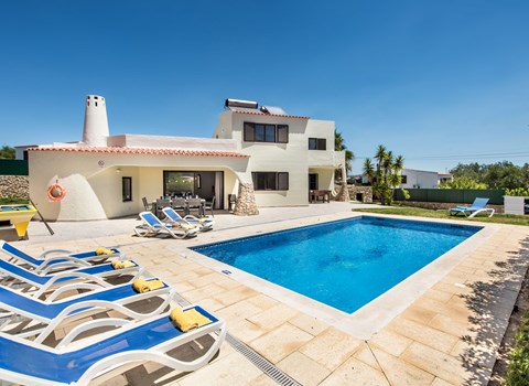 Armação de Pêra: Very cosy, comfortable villa "Villa Quinta do Sol", detached, built in 1993. In a quiet, sunny position residential area (villas), 1.1 km from the sea, in a cul-de-sac. Private: property 490 m2 (fenced), swimming pool (7 x 4 m, depth 70 - 180 cm, seasonal availability: 01.Jan. - 31.Dec.). Unconventional pool shape. Arbour, terrace, barbecue. In the house: washing machine, drying room. Parking at the house. Shop 1.1 km, grocery 1.1 km, supermarket 1 km, shopping centre 9.4 km, restaurant 1.1 km, bar 1.1 km, bakery 1.1 km, café 1.1 km, internet café 1.1 km, pedestrian zone 1.1 km, bicycle rental 1.1 km, pub garden 1.1 km, bus stop 1.1 km, sandy beach "Praia de Armação de Pêra" 1.1 km. Marina 11 km, golf course (18 hole) 4 km, sailing school 11 km. Nearby attractions: Zoomarine 64 km, Slide & Splash 10.8 km, Fiesa 4.6 km, Aqualand 4.4 km, Krazy World 13.1 km, Aquashow 30.4 km. Please note: car recommended. Groups of teenagers on request only.