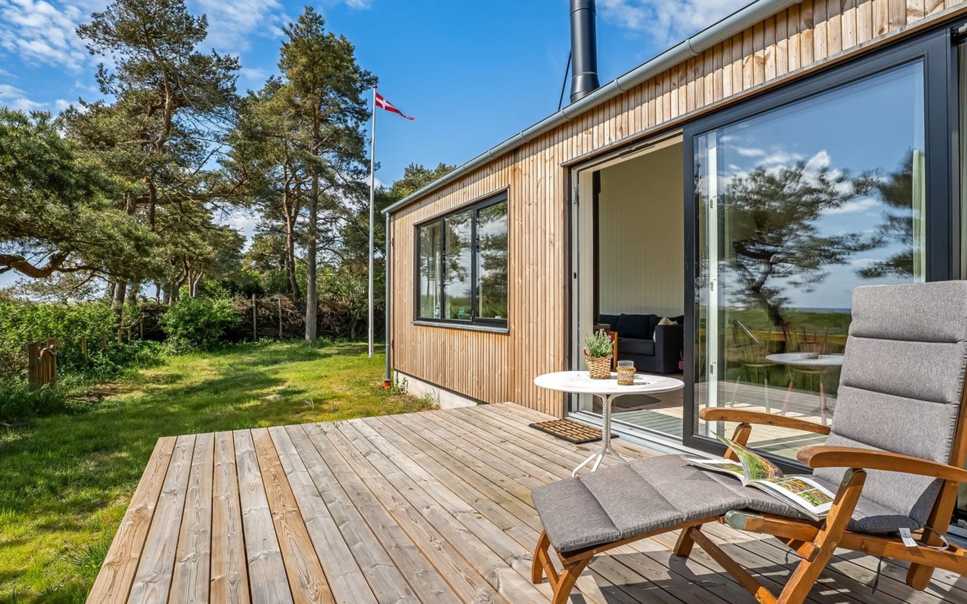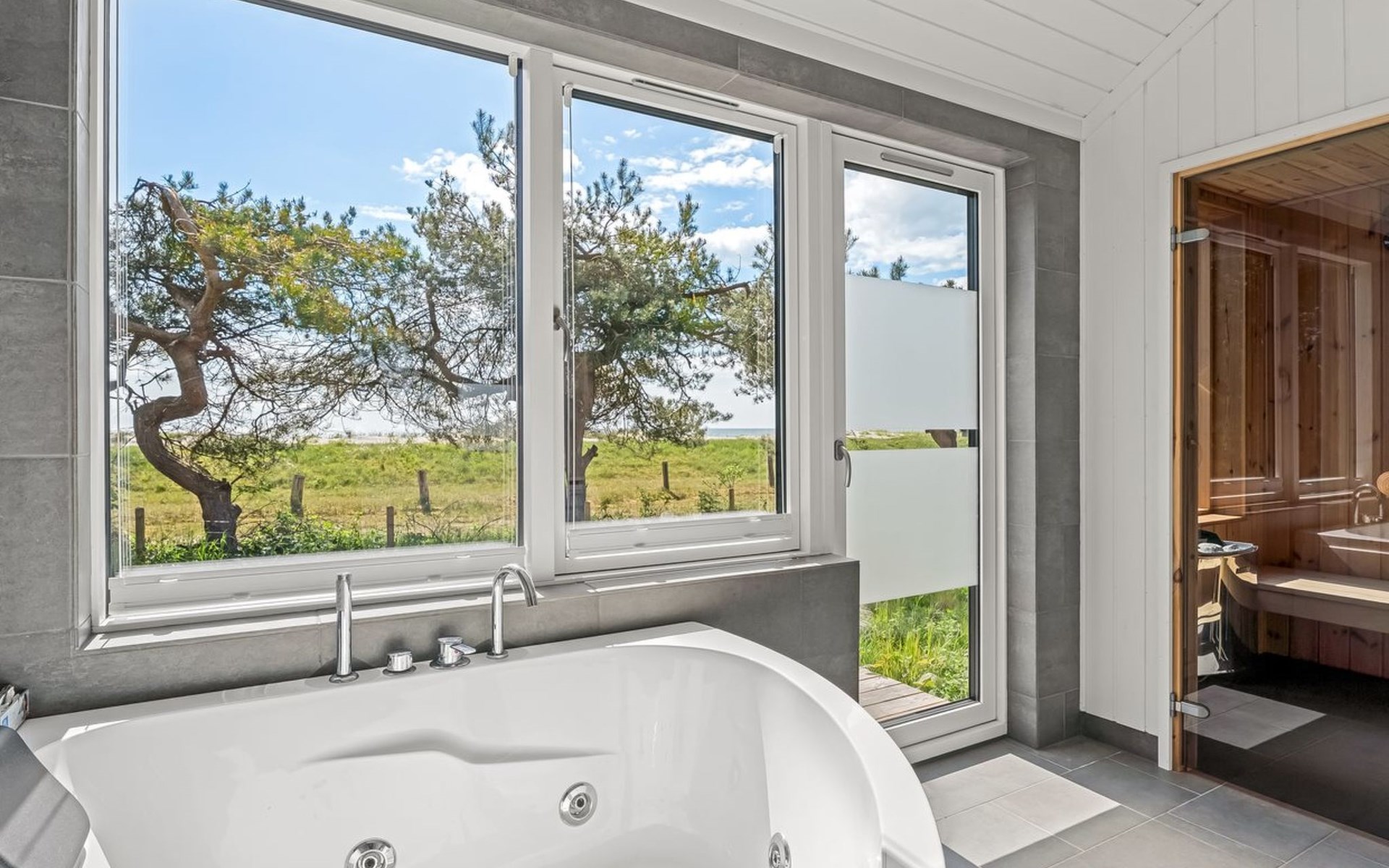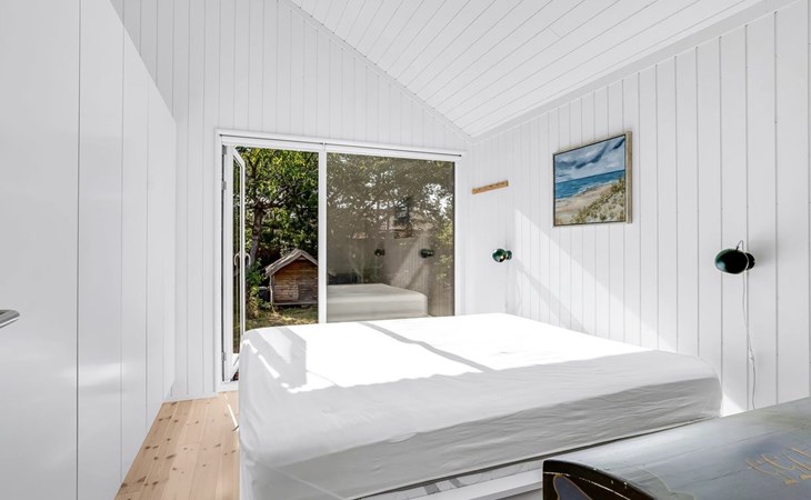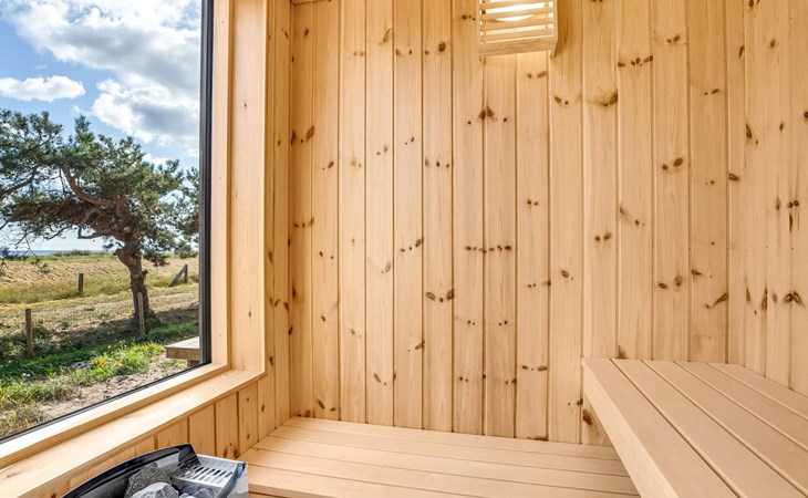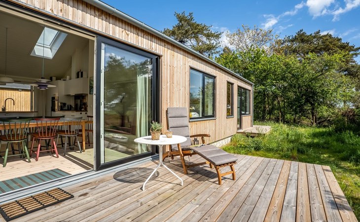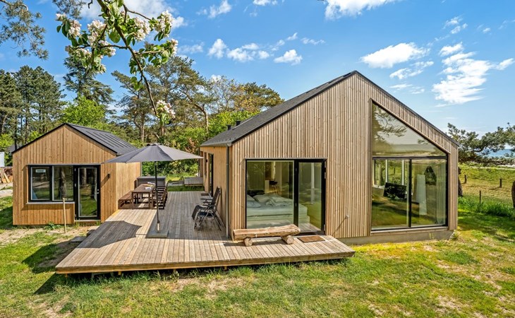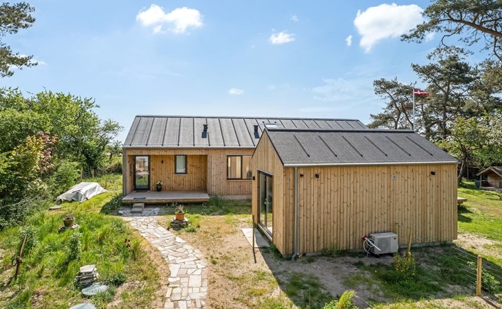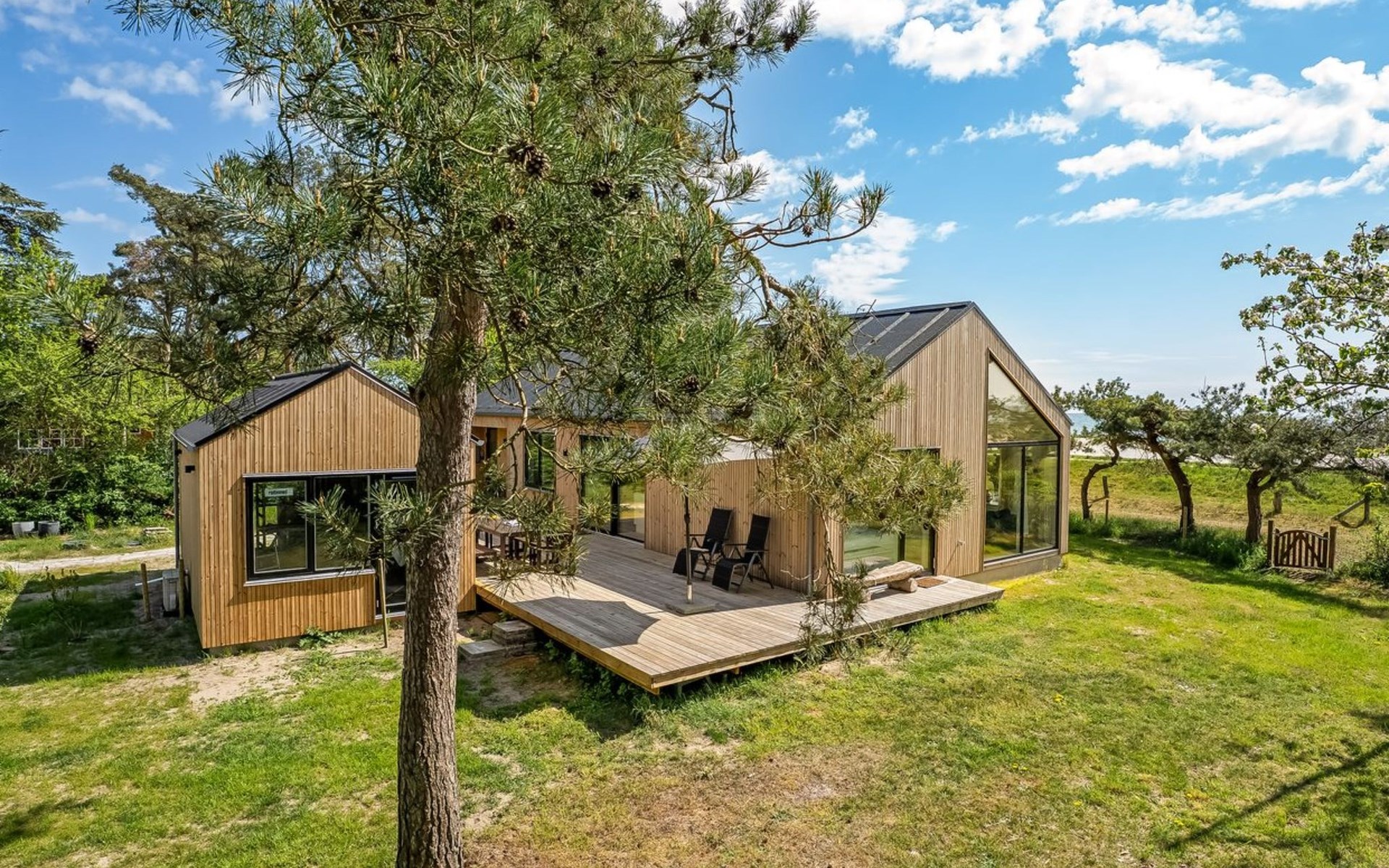 Single-family house, built in 2024. 50 m from the sea. Private: natural state property 1'203 m2. Outdoor shower, barbecue. In the house: sauna, trampoline, washing machine, tumble dryer. Parking at the house. Grocery 3 km. Golf course 6 km. The owner does not accept any youth groups.
