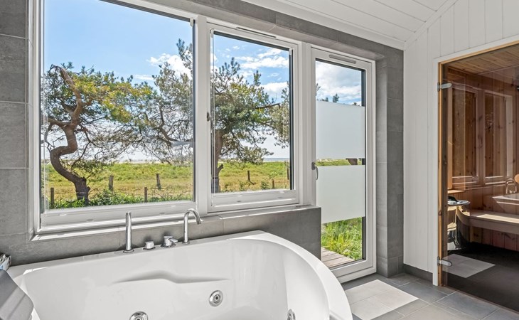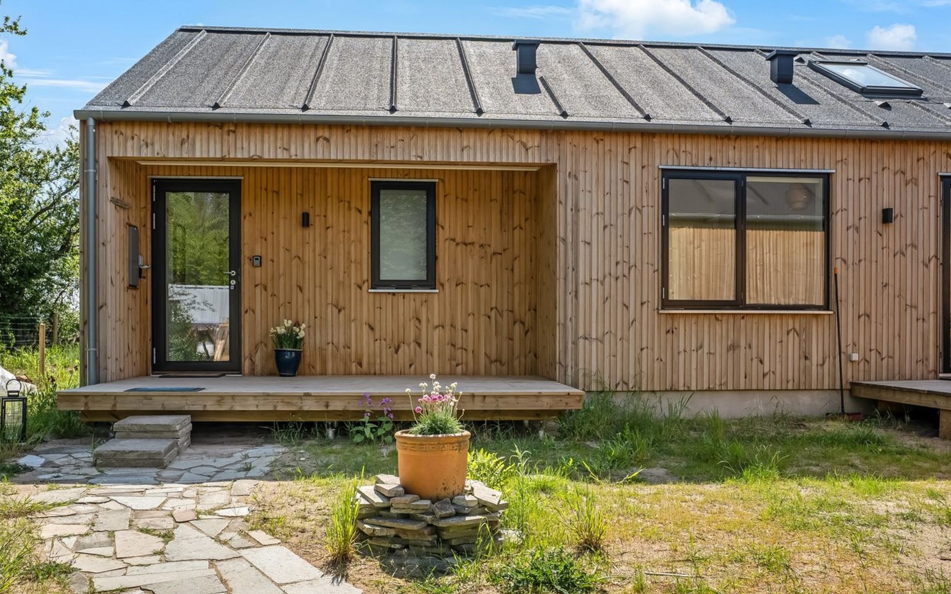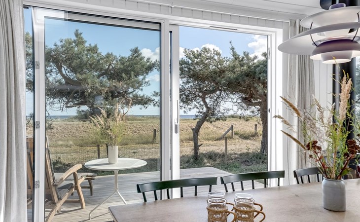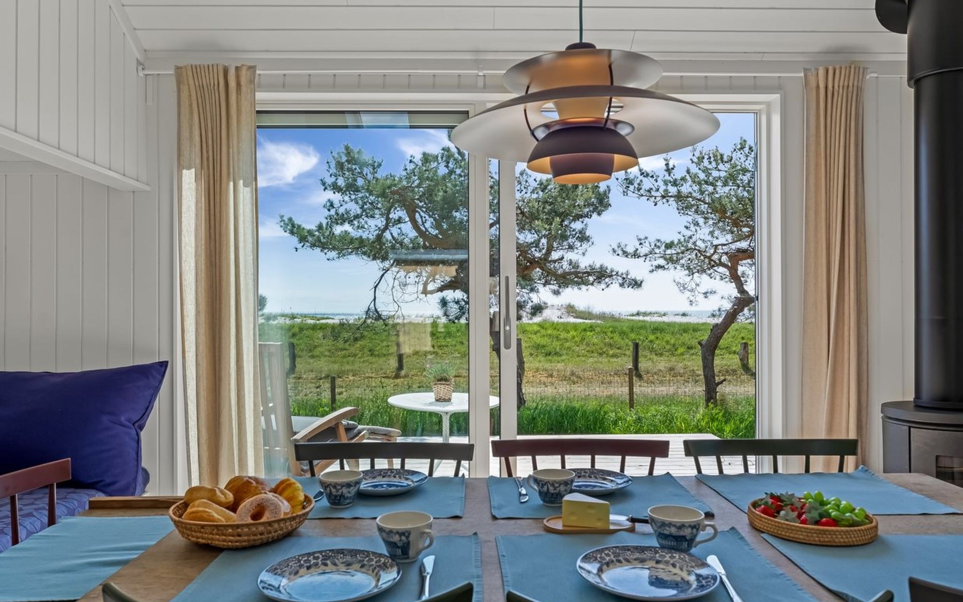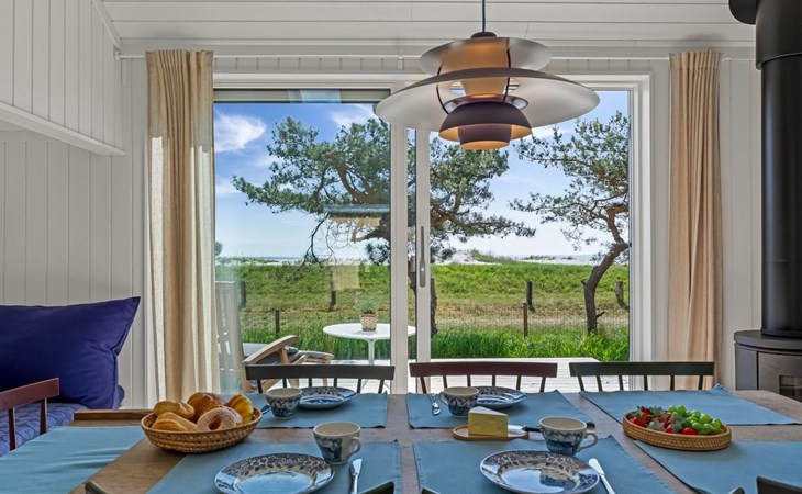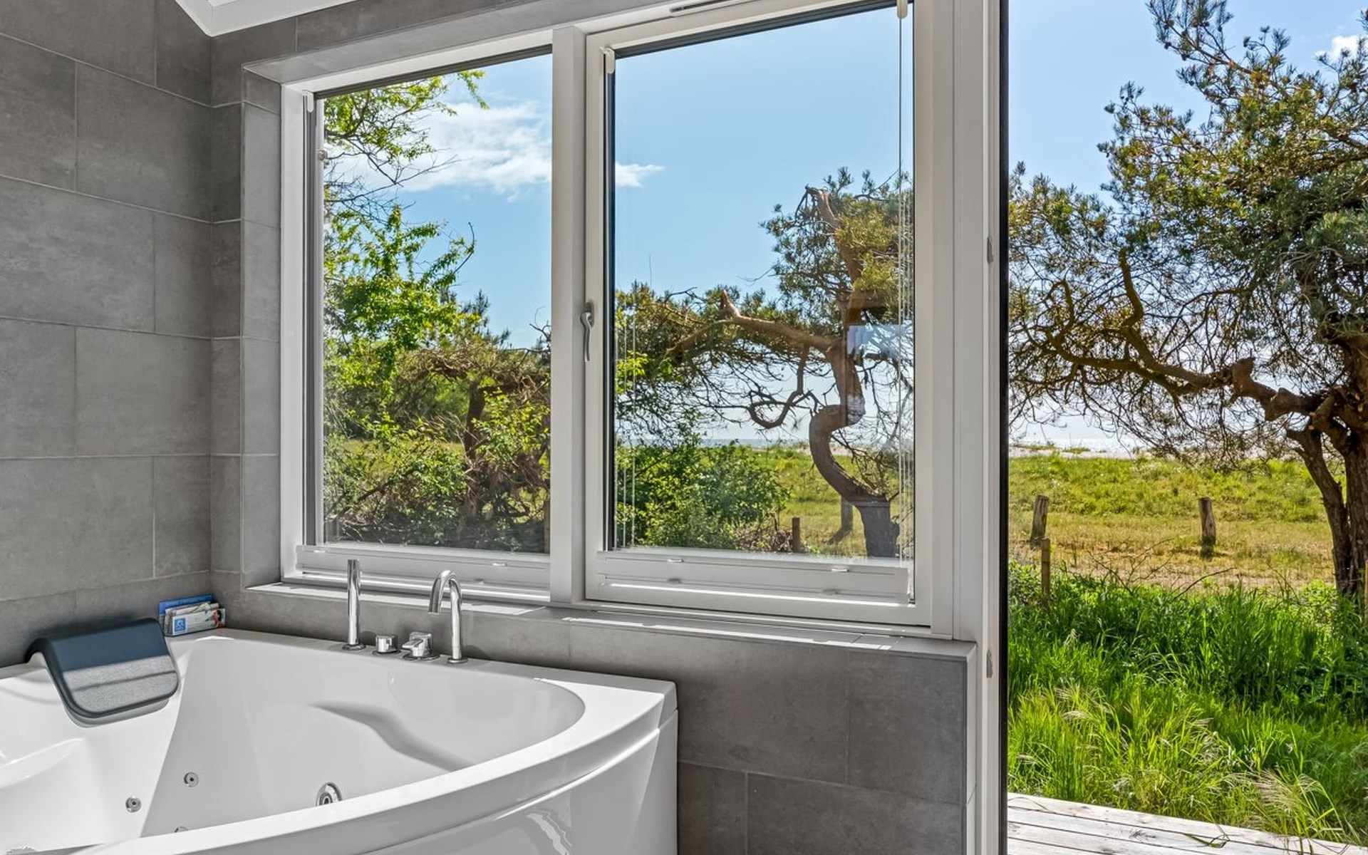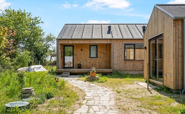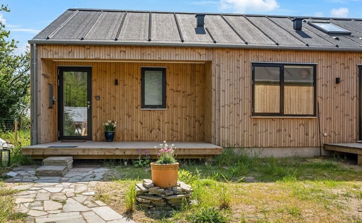 Single-family house, built in 2024. 50 m from the sea. Private: natural state property 1'203 m2. Outdoor shower, barbecue. In the house: sauna, trampoline, washing machine, tumble dryer. Parking at the house. Grocery 3 km. Golf course 6 km. The owner does not accept any youth groups.