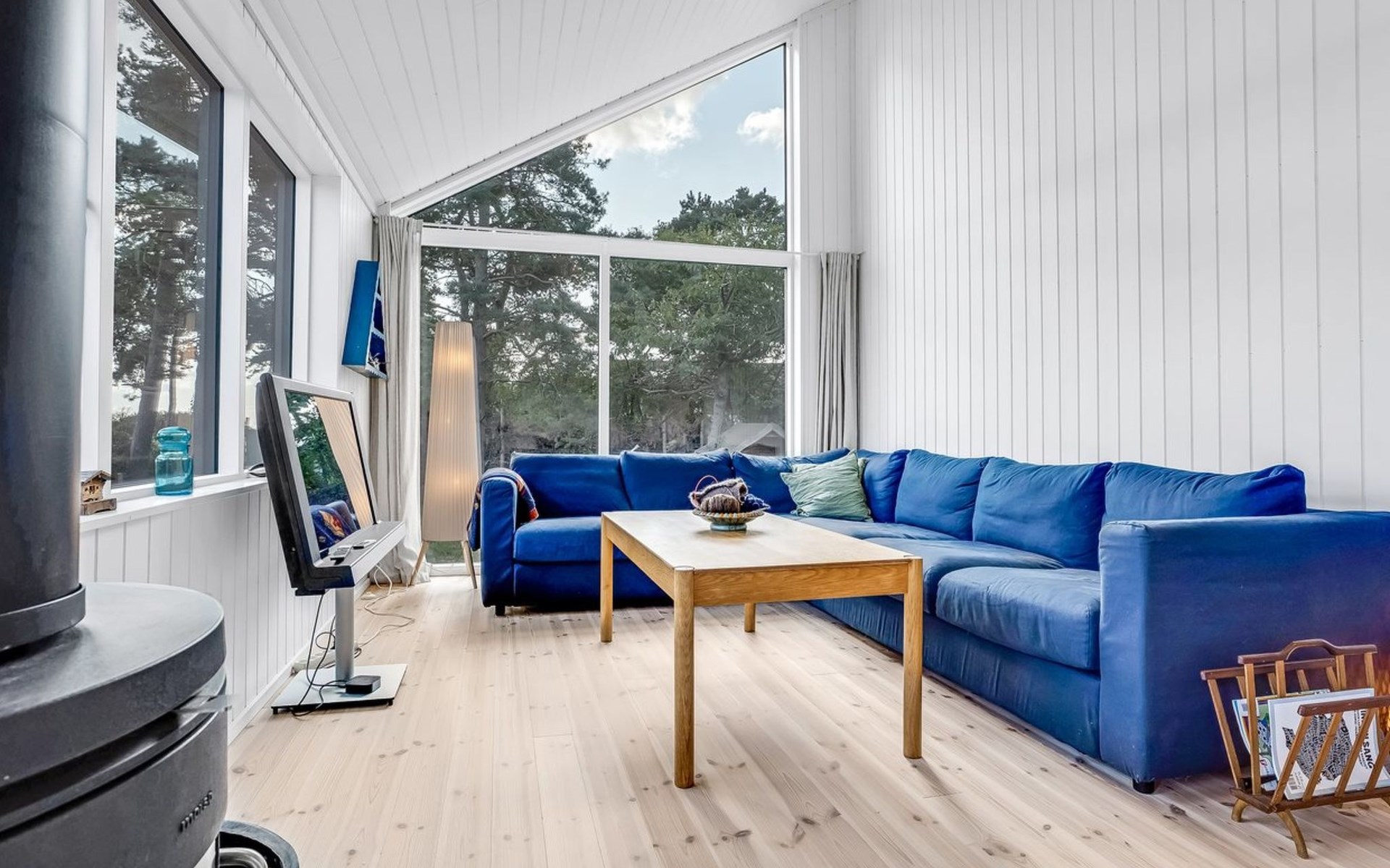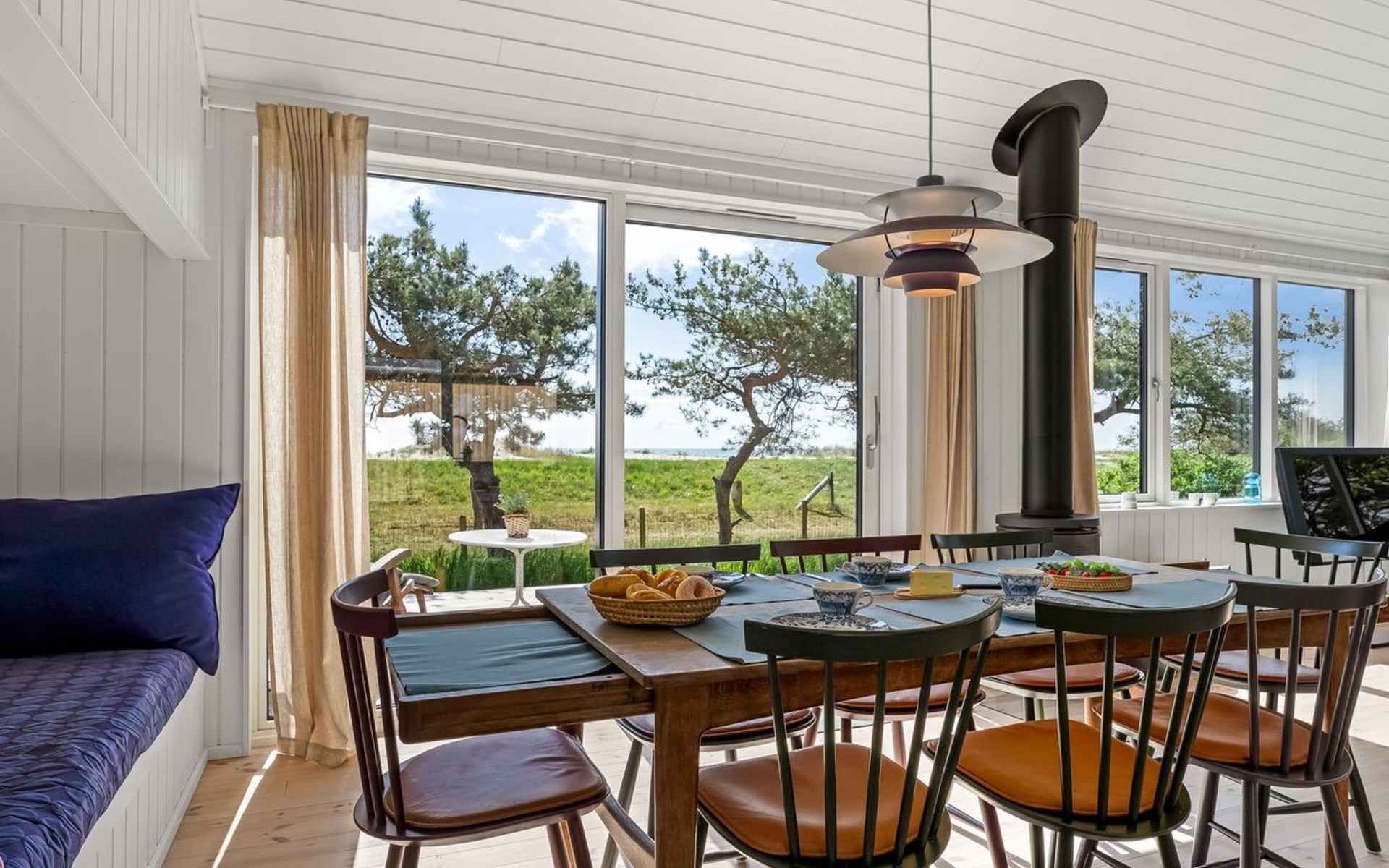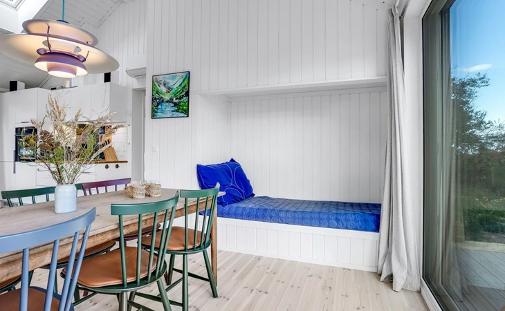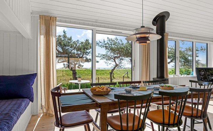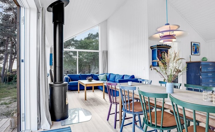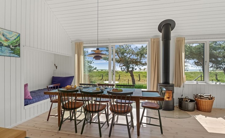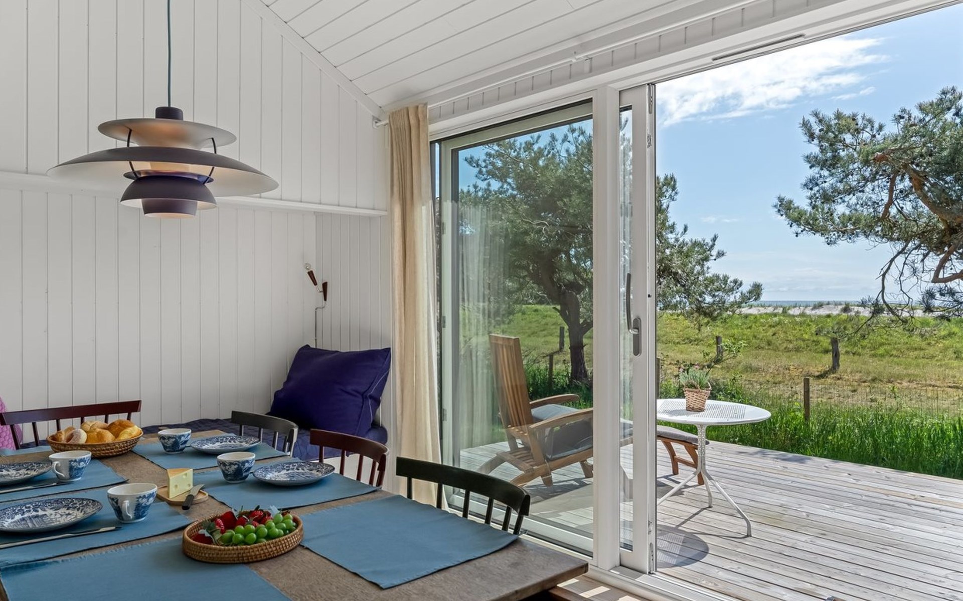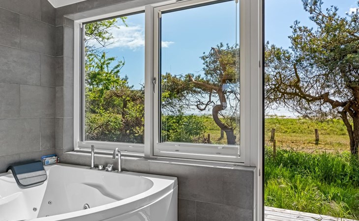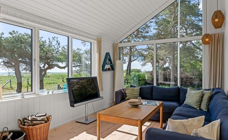 Single-family house, built in 2024. 50 m from the sea. Private: natural state property 1'203 m2. Outdoor shower, barbecue. In the house: sauna, trampoline, washing machine, tumble dryer. Parking at the house. Grocery 3 km. Golf course 6 km. The owner does not accept any youth groups.