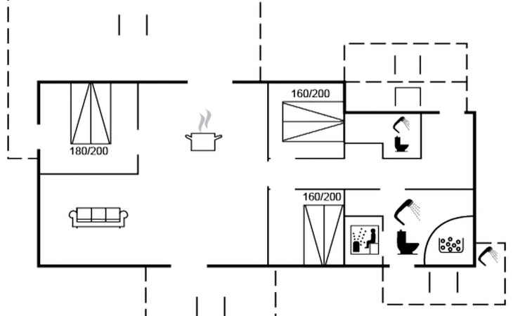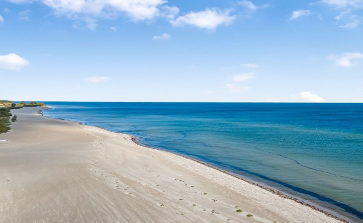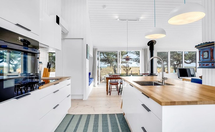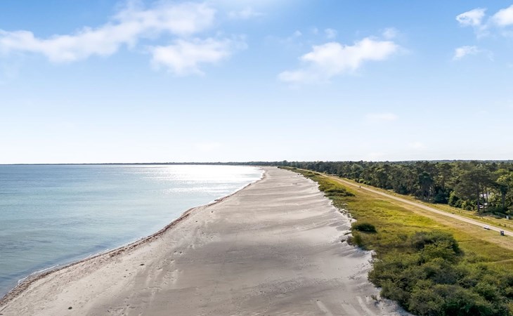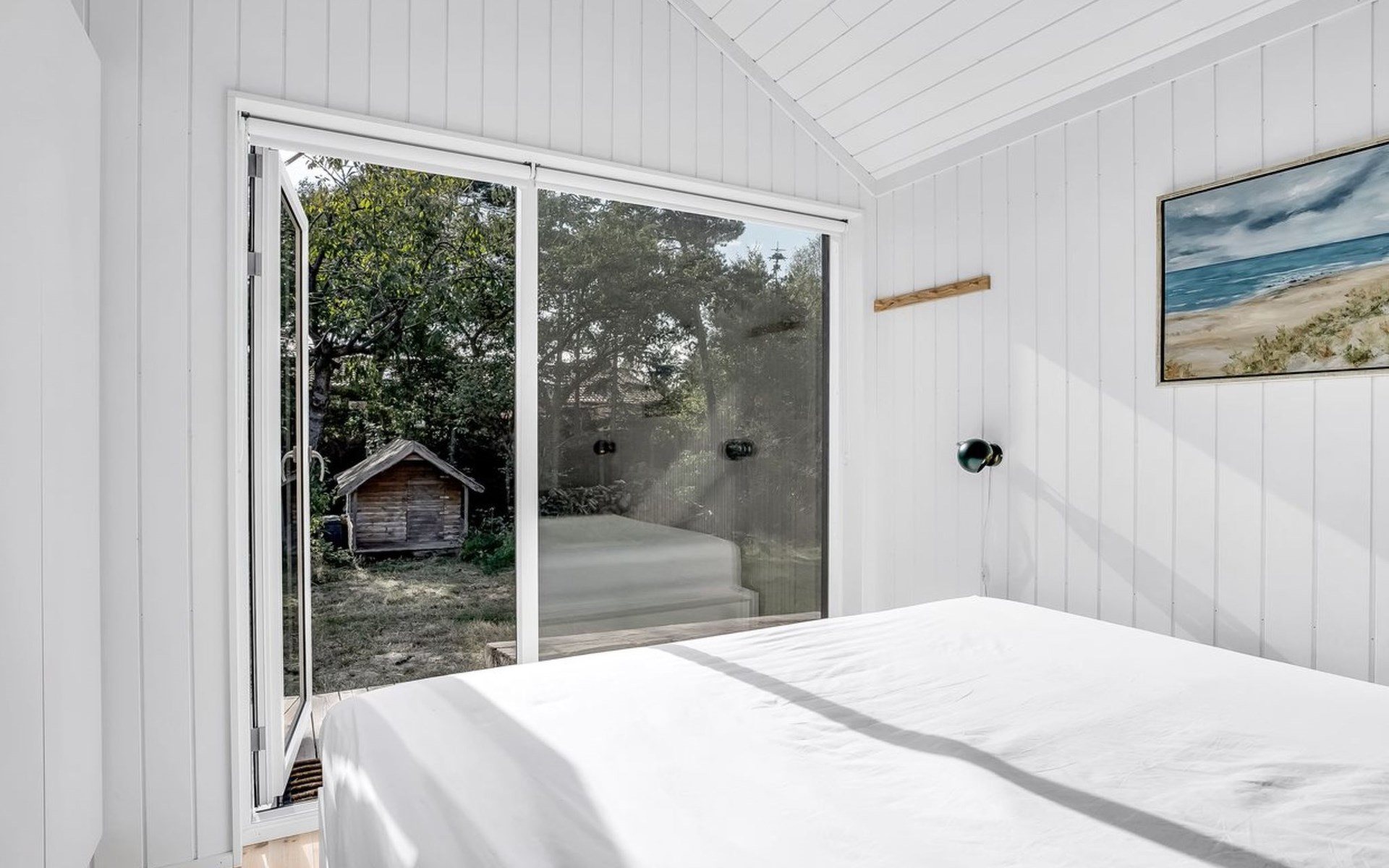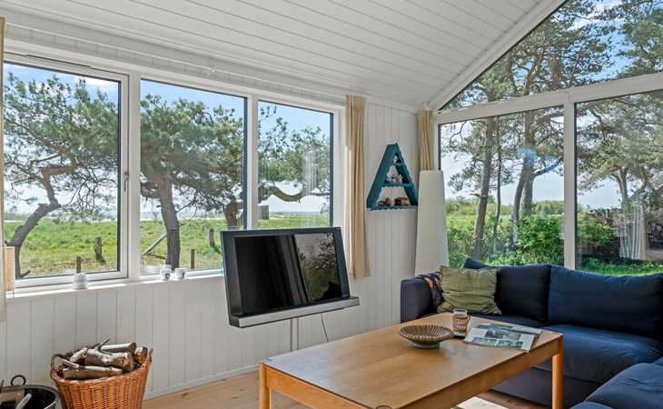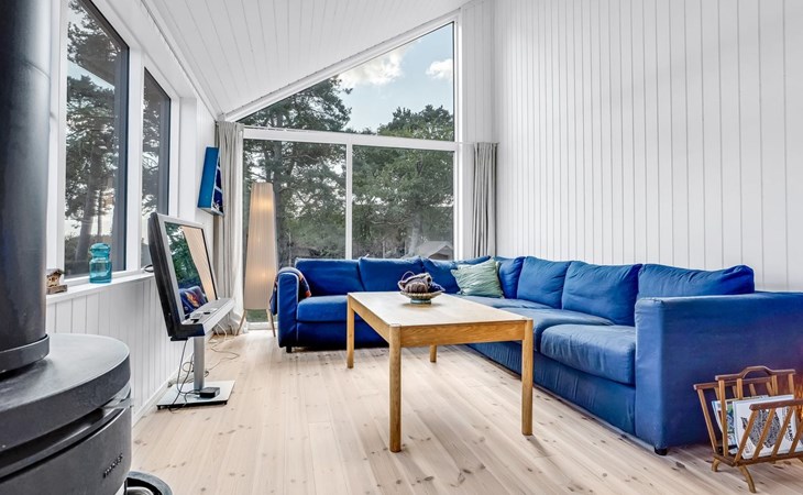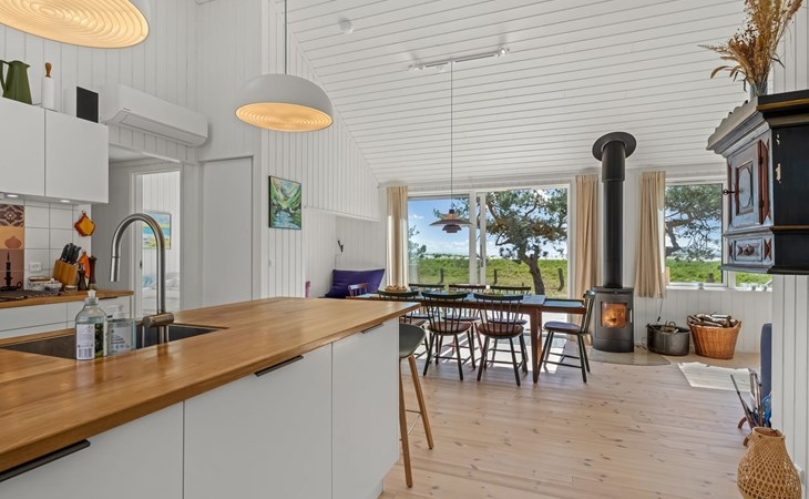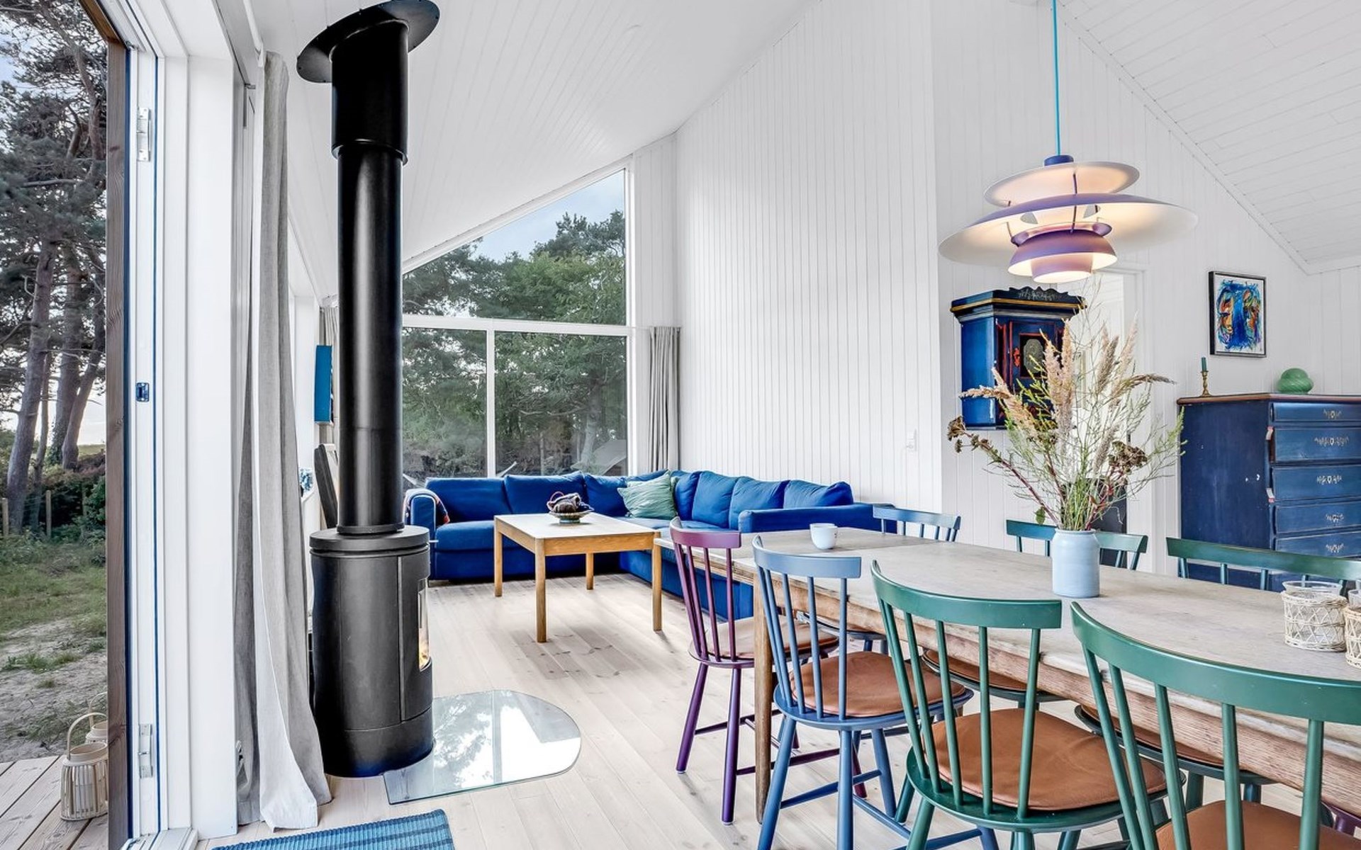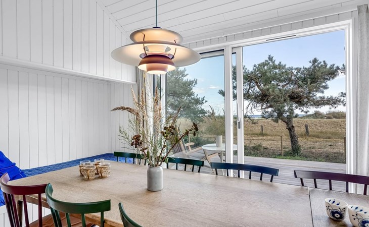 Single-family house, built in 2024. 50 m from the sea. Private: natural state property 1'203 m2. Outdoor shower, barbecue. In the house: sauna, trampoline, washing machine, tumble dryer. Parking at the house. Grocery 3 km. Golf course 6 km. The owner does not accept any youth groups.