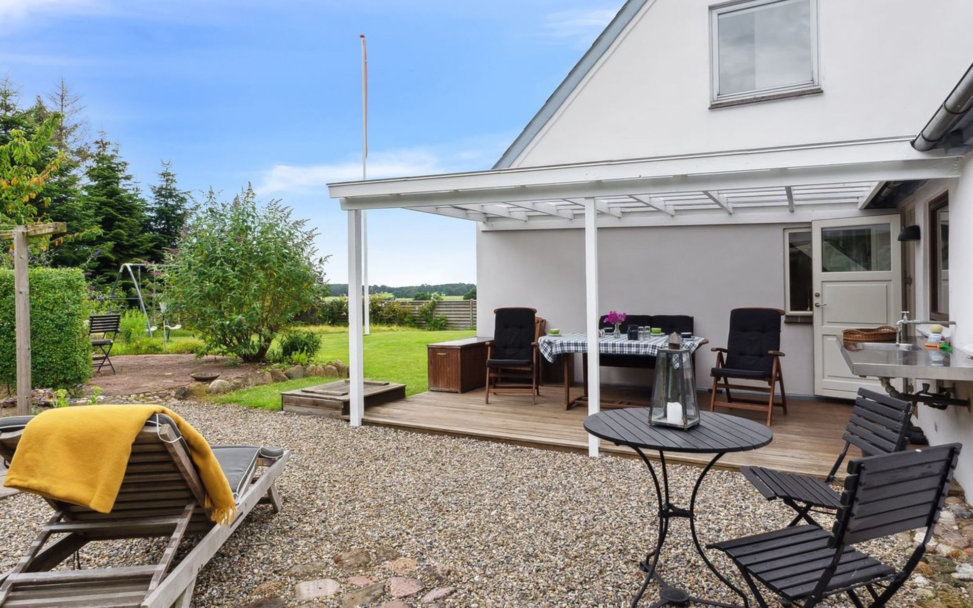 Single-family house, built in 1912. 2.3 km from the sea. Private: property 723 m2, well-kept garden. Barbecue, children's playground (swing). In the house: washing machine. Parking at the house. Grocery 1.5 km. Golf course 5.3 km. The owner does not accept any youth groups.