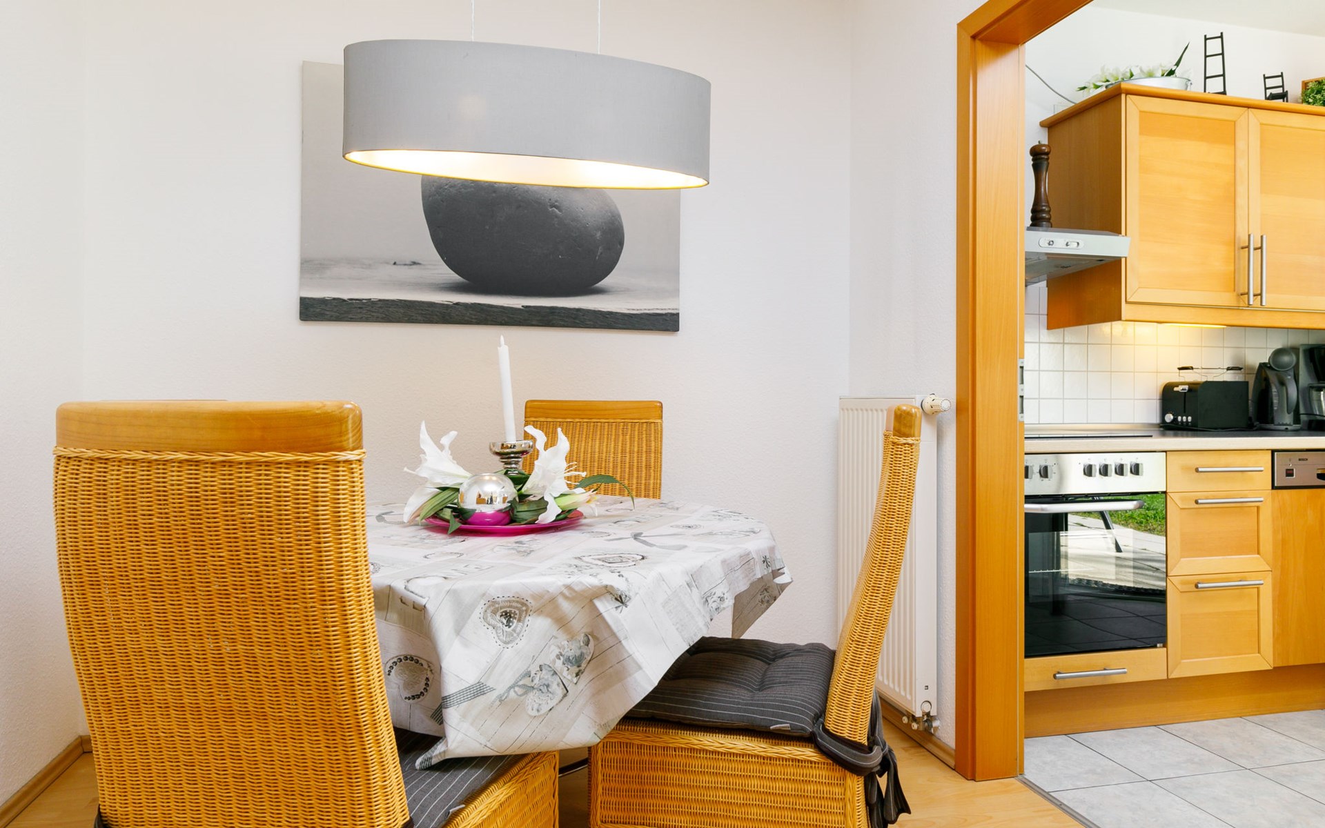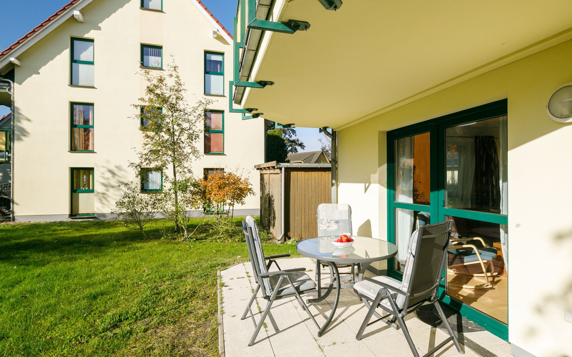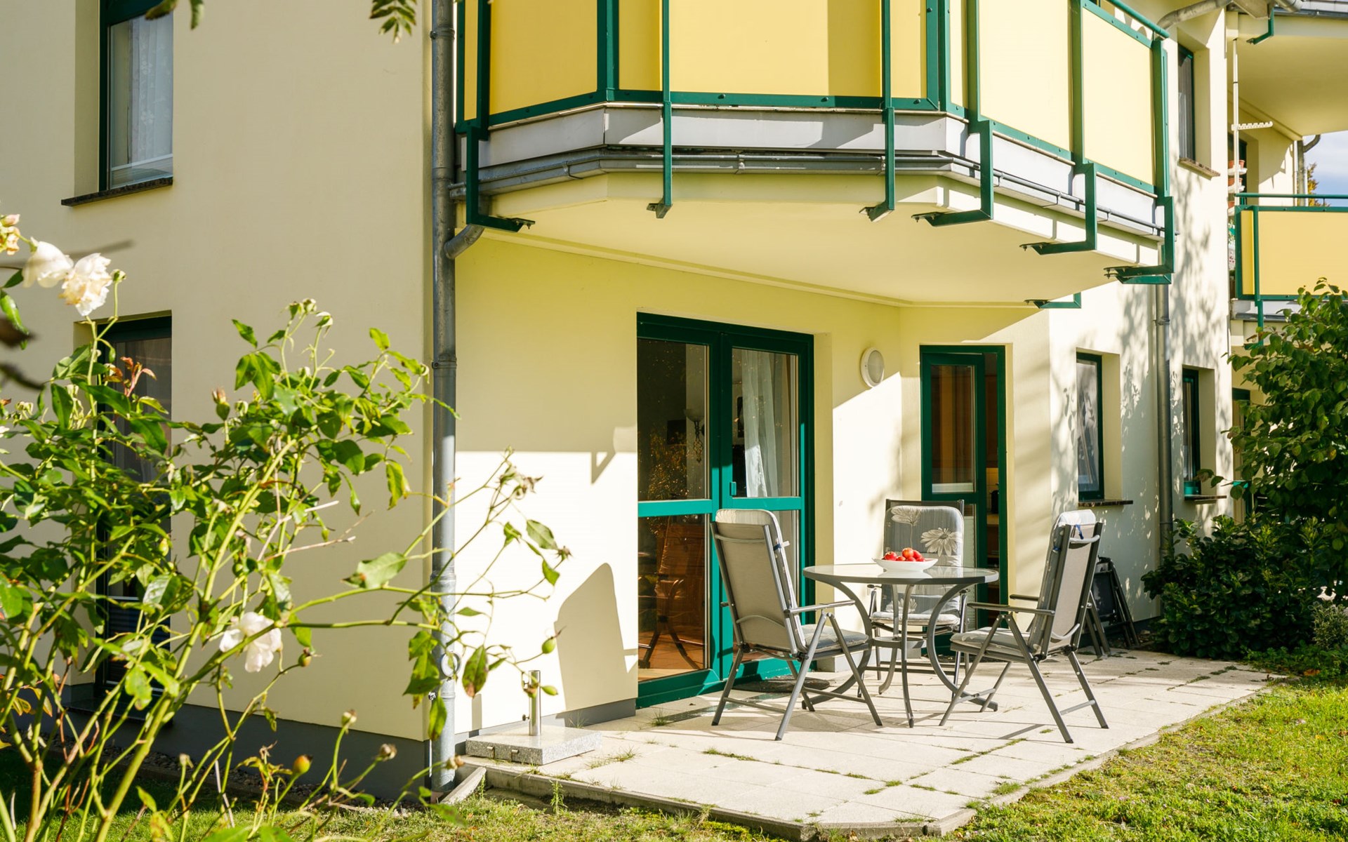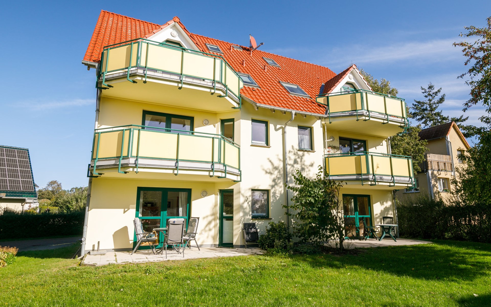Apartment block "Ostseetrio", 3 storeys. 3 houses in the residence. 6 apartments in the property. In the resort 900 m from the centre of Zinnowitz, 1 km from the sea, 1 km from the beach. In the house: storage room for bicycles, central heating system. Parking on the premises. Supermarket 600 m, restaurant 600 m, bakery 600 m, café 800 m, bus stop 100 m, railway station 350 m, sandy beach 1 km, thermal baths "Bernsteintherme" 1.4 km. Marina 2.3 km, golf course (18 hole) 25 km, surf school 1.4 km, tennis 1 km, minigolf 1.4 km.