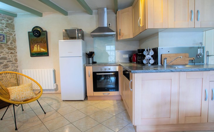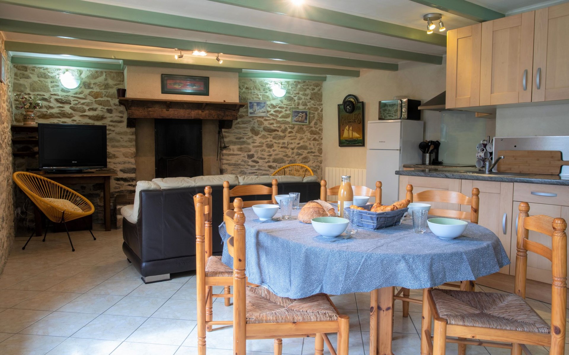 Pleurtuit: Terraced house "Ty Coz". In the hamlet Les Forges with 4 houses, in the resort 2 km from the centre of La Richardais, in a quiet position, 1.5 km from the sea, 2.2 km from the beach. Parking at the house at 20 m. Shop 4.7 km, grocery 2.2 km, supermarket 3.5 km, shopping centre 4.7 km, restaurant 1.5 km, bar 2.2 km, bakery 2.2 km, café 2.2 km, bicycle rental 5.6 km, bus stop "Centre" 2 km, railway station "SNCF Saint Malo" 9.8 km, ferry "Gare maritime du Naye" 10 km, sandy beach "Cancavale" 1.5 km, park "Port Breton" 4.9 km, outdoor swimming pool 6.6 km, indoor swimming pool 6.6 km, thermal baths "Thalasso Emeria Dinard" 9.6 km. Sports harbour 6.1 km, golf course (9 hole) 5.4 km, sailing school 2.2 km, tennis 5.6 km, indoor tennis centre 5.6 km, minigolf 4.5 km, riding stable 5.4 km, sports centre 6.3 km. Nearby attractions: Dinard 6.2 km, Saint Briac 12.5 km, Saint Malo 11 km, Dinan 18.2 km, Cap Fréhel Fort Lalatte 36.5 km, Le Mont Saint Michel 56 km. The keys‘ handover takes place by the agency Interhome in Dinard, 6 km.