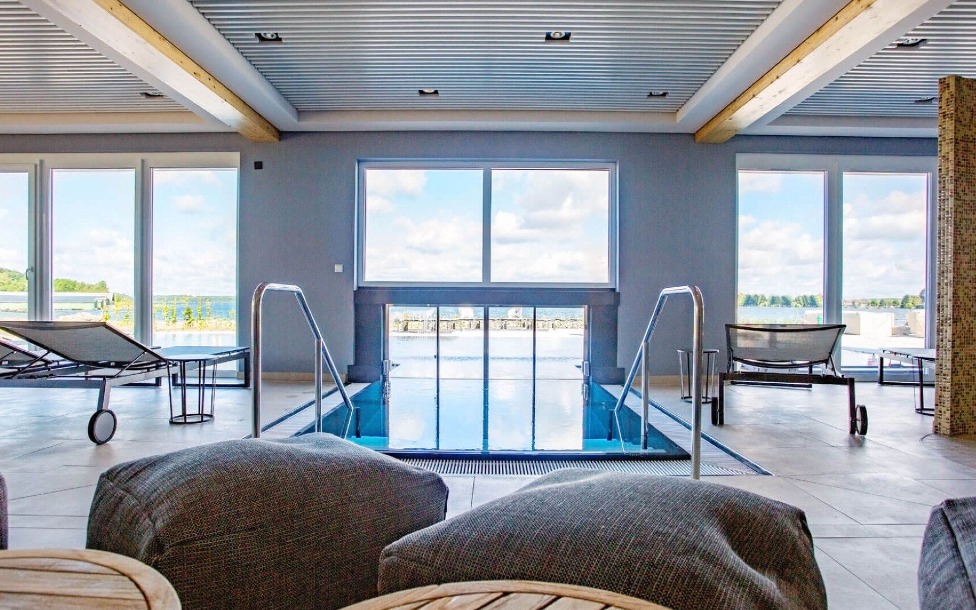 Modern resort "Maremüritz Yachthafen Resort", built in 2019. 184 apartments in the residence. 2 km from the centre of Waren, on the outskirts, 97 km from the centre of Schwerin, 100 km from the centre of Rostock, 80 m from the lake, direct access to the beach. For shared use: property with lawn, swimming pool heated (15 x 6 m, seasonal availability: 01.Jan. - 31.Dec., extra). Private beach, children's playground. In the complex: reception, restaurant, sauna (extra). Spa area for shared use (extra), lift, washing machine (for shared use, extra). Breakfast possible (extra). Storeroom available. Stepped path to the house. Communal covered parking (extra). Shop 2 km, supermarket 2.5 km, bus stop "Waren (Müritz) Jugendherberge" 150 m, grass beach 80 m. Marina 2 km, golf course (18 hole) 22 km. The swimming pool is a heated outdoor pool. Use of the spa area is included! One bathrobe rental is included per adult per stay.