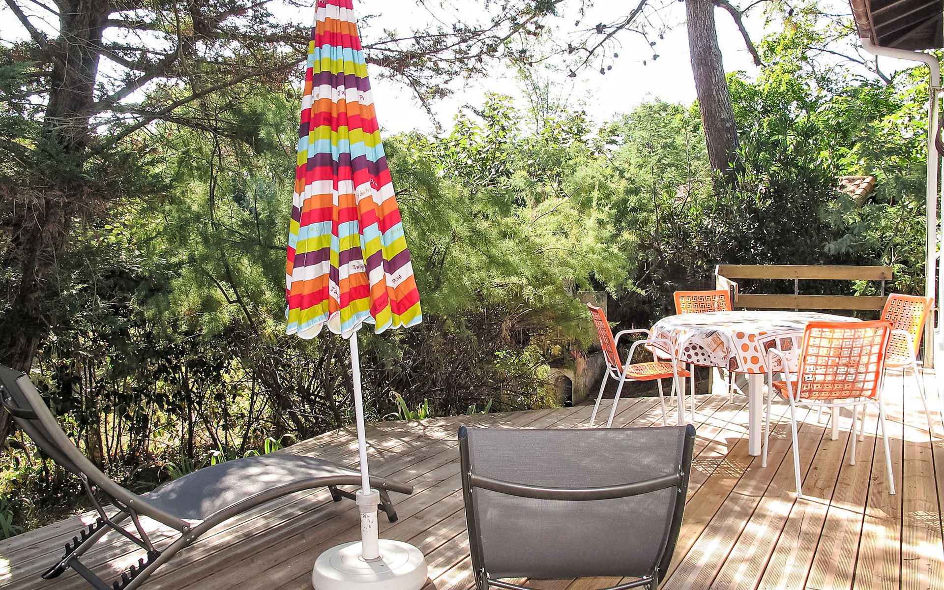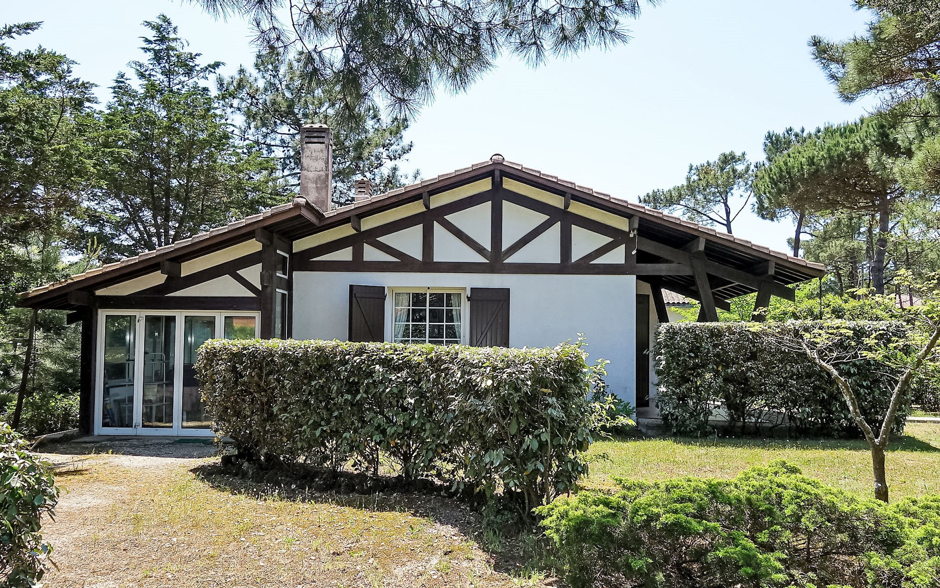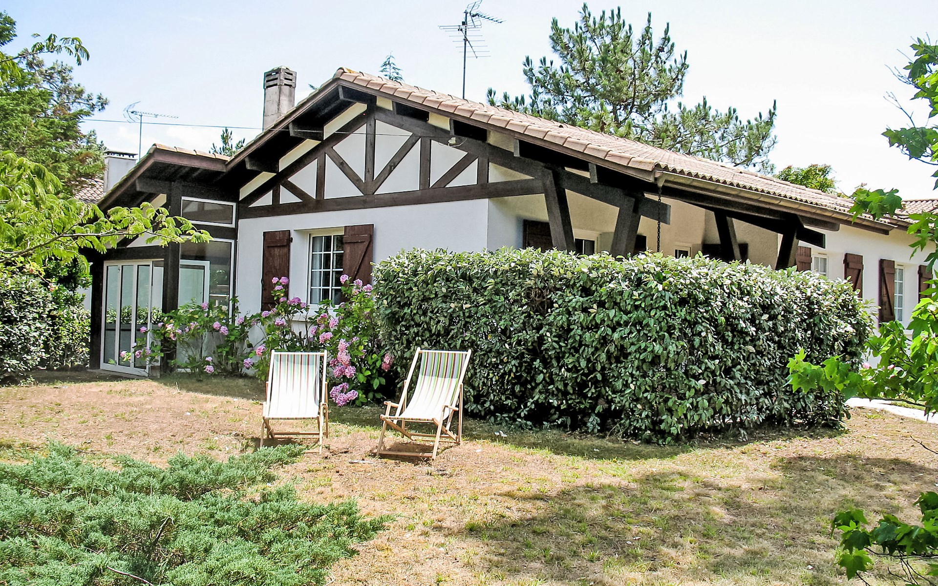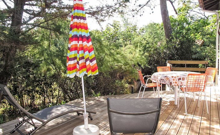 Single-family house "Promenade des Pins". In the resort 1 km from the centre of Mimizan-Plage, 500 m from the edge of the forest, 500 m from the sea, 500 m from the beach. Private: natural state property 1'000 m2 (fenced), parking on the premises. Supermarket 1 km, railway station "Labouheyre" 30 km, sandy beach 500 m, park "Landes Aventure" 6 km, indoor swimming pool 6 km, bathing lake "Aureilhan" 10 km. Golf course (9 hole) 6 km, surf school 600 m, riding stable 7 km, cycle lane 500 m. Nearby attractions: Arcachon 70 km, Bordeaux 120 km, Biscarosse 40 km, Centre Nautique 7 km, Casino Mimizan Plage. Hiking paths: Parc naturel régional des Landes.