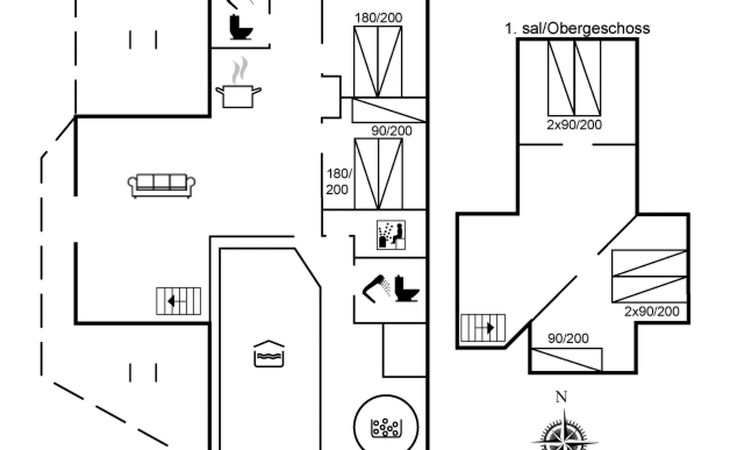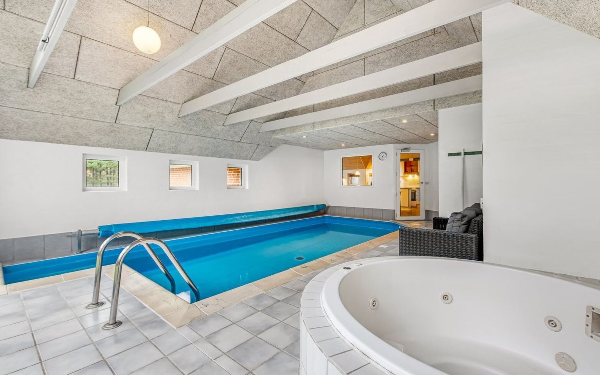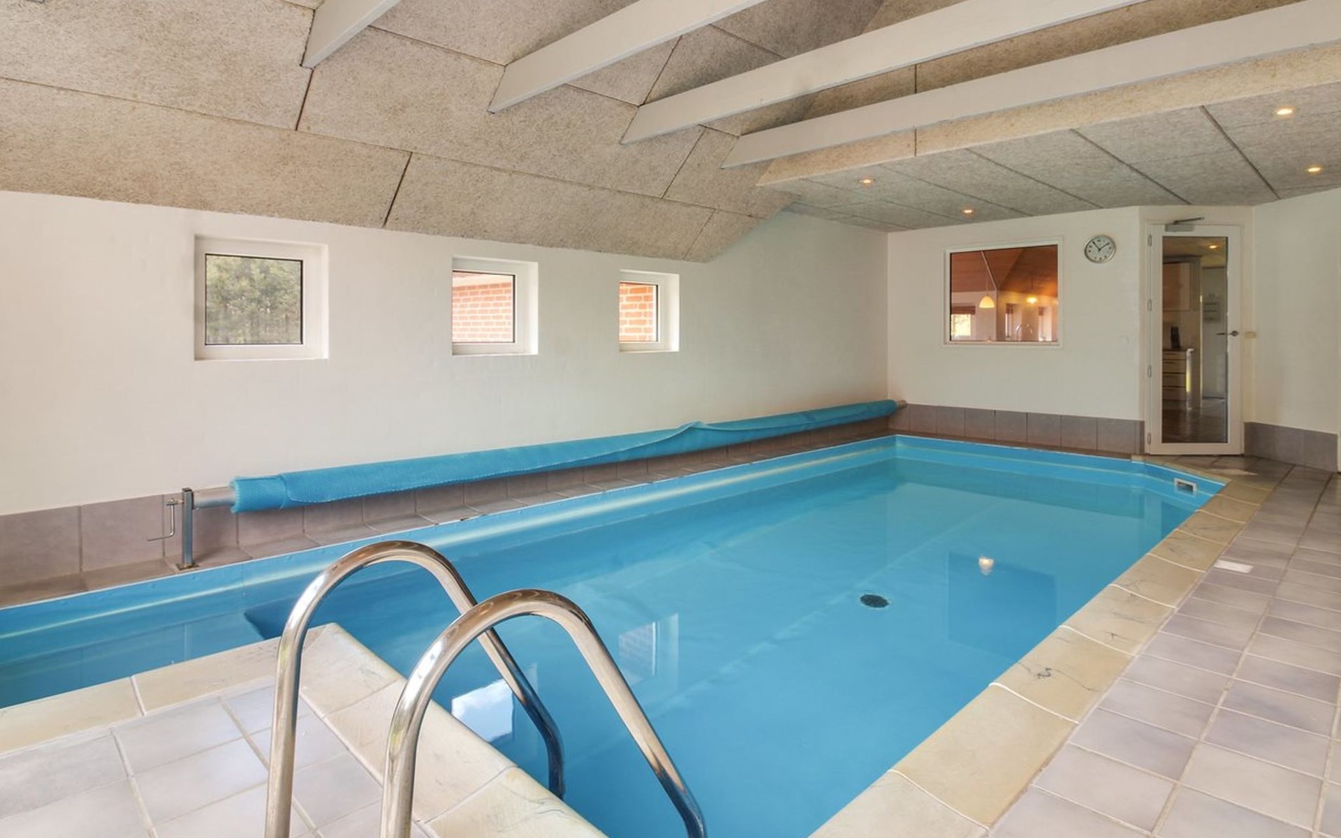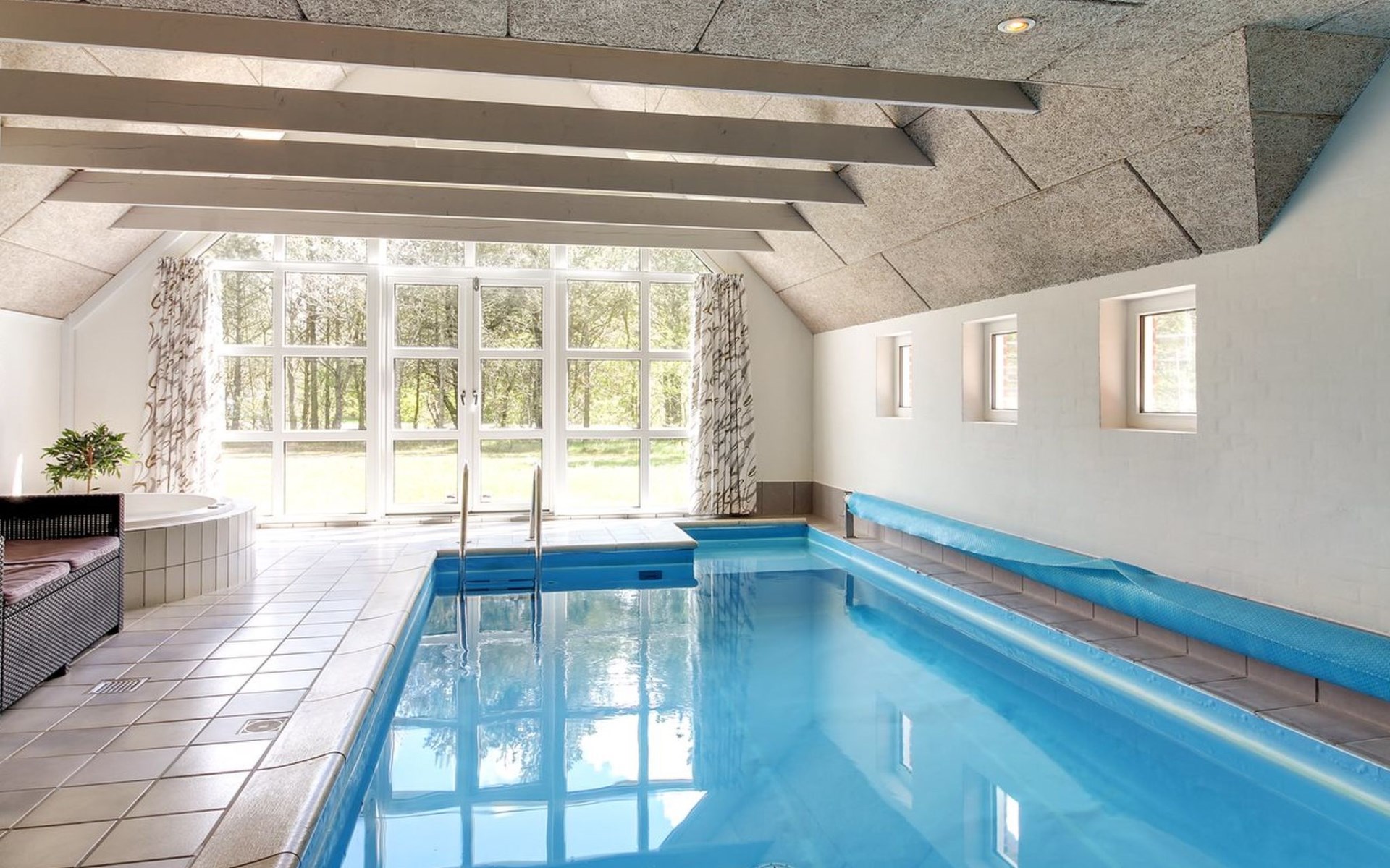 Single-family house, built in 1994. 4.3 km from the sea. Private: natural state property 1'800 m2, indoor pool (3 x 8 m, 24 m2, depth 140 - 140 cm). Terrace (55 m2), children's playground (slide). In the house: sauna, washing machine, tumble dryer. Parking at the house. E-charging station. Grocery 1 km.