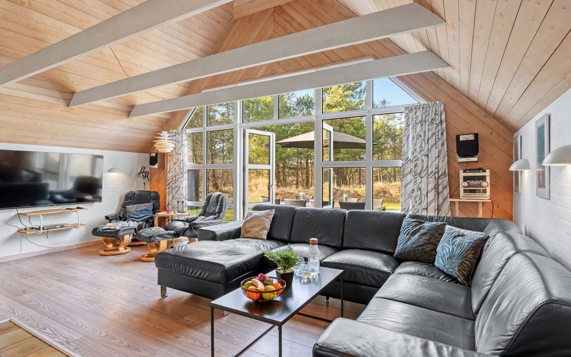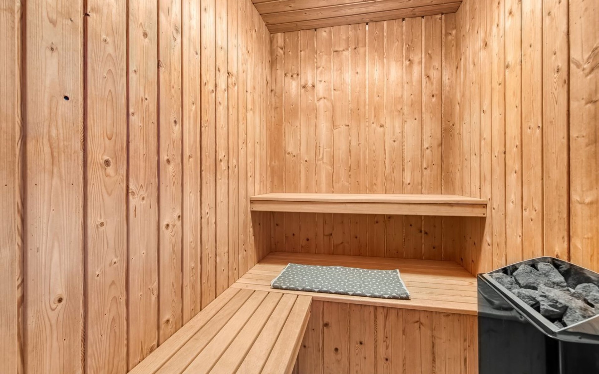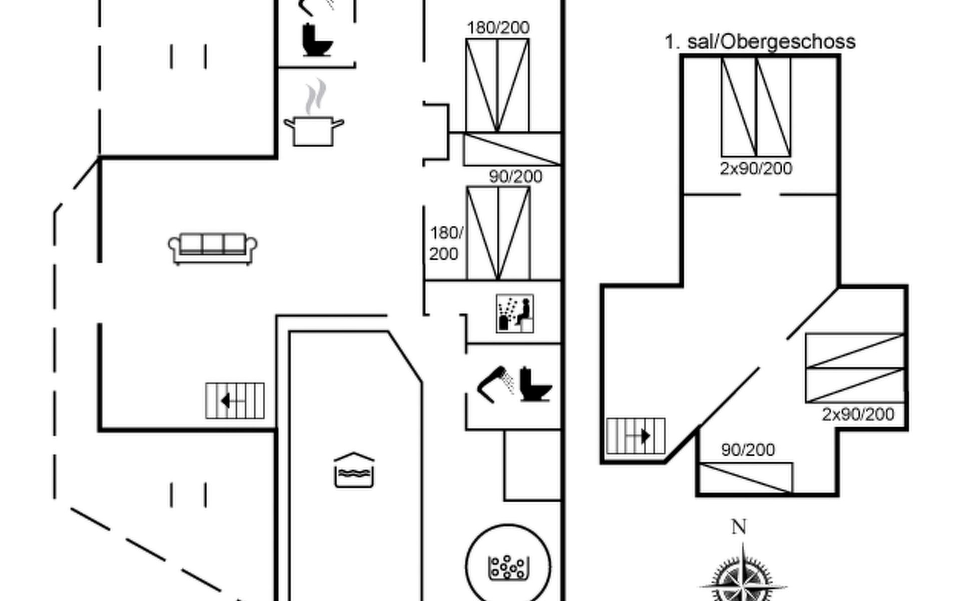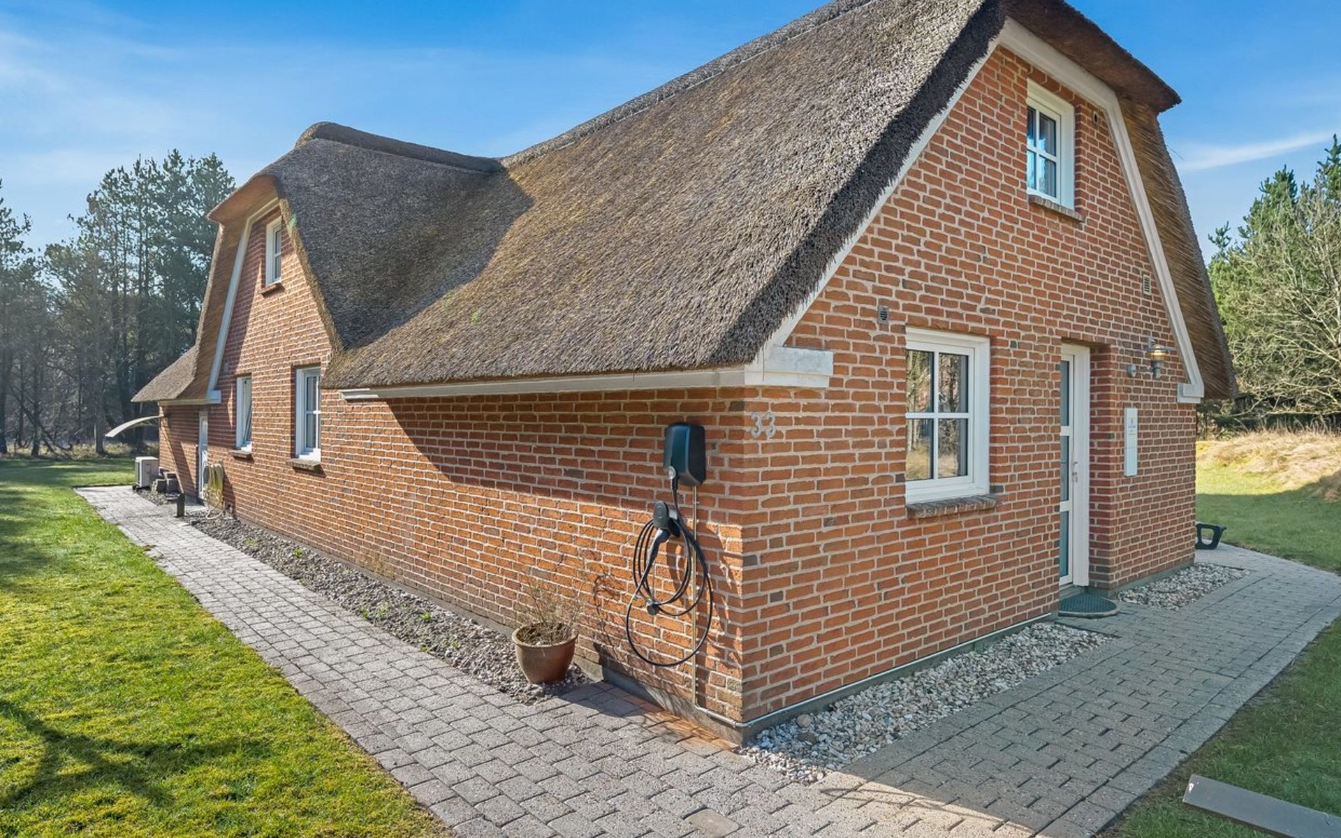Single-family house, built in 1994. 4.3 km from the sea. Private: natural state property 1'800 m2, indoor pool (3 x 8 m, 24 m2, depth 140 - 140 cm). Terrace (55 m2), children's playground (slide). In the house: sauna, washing machine, tumble dryer. Parking at the house. E-charging station. Grocery 1 km.
