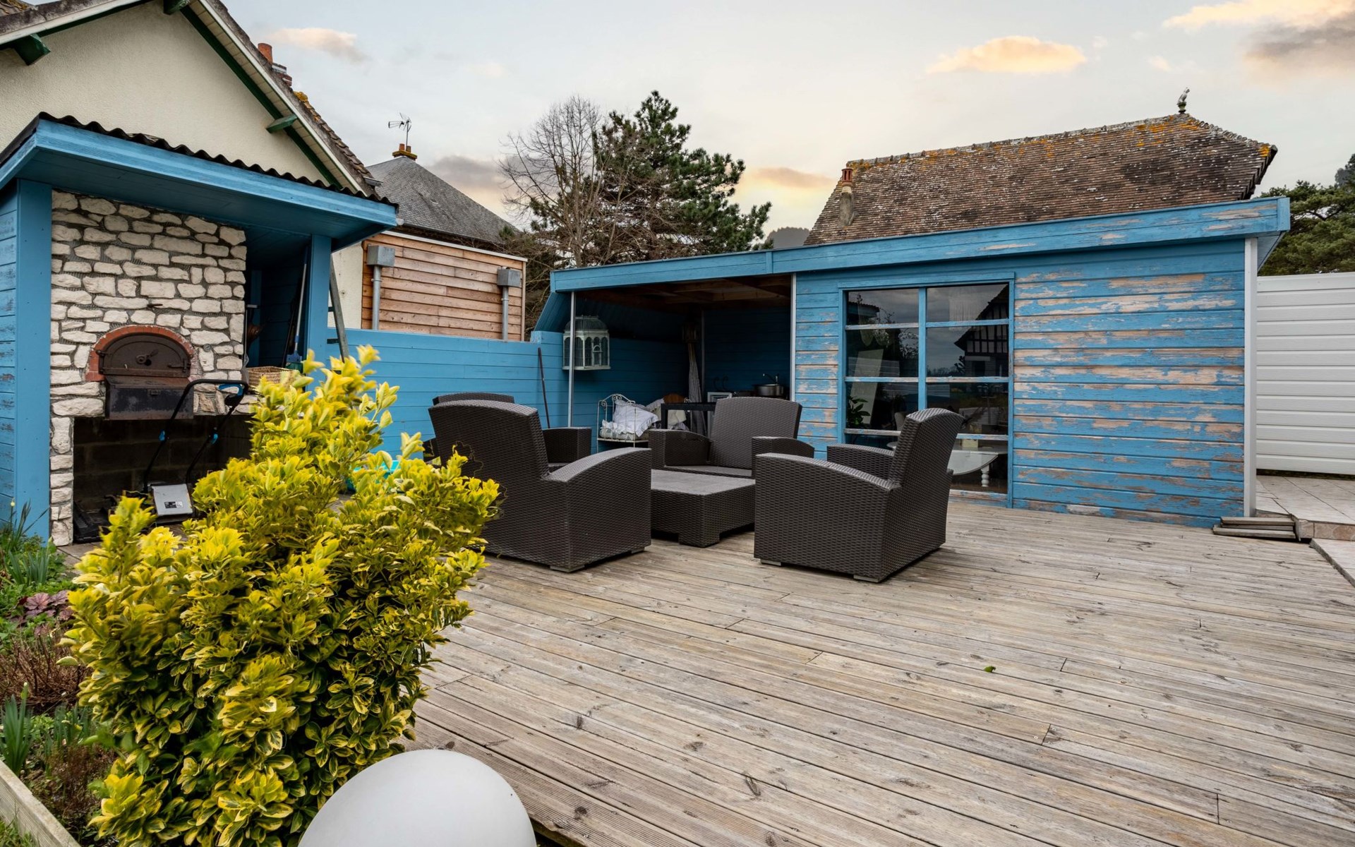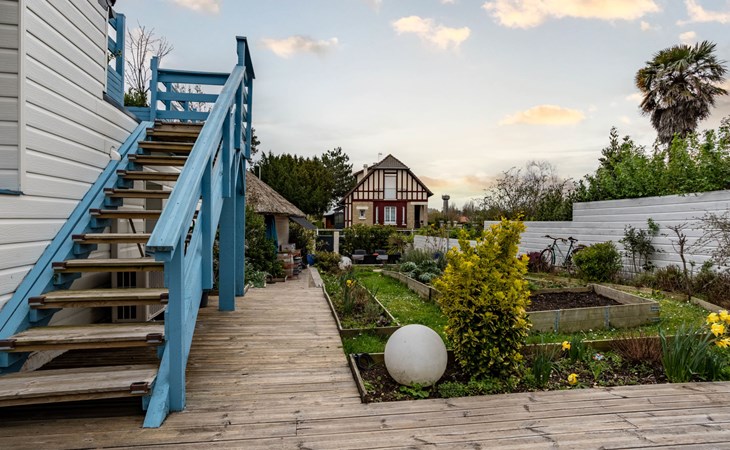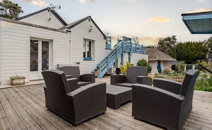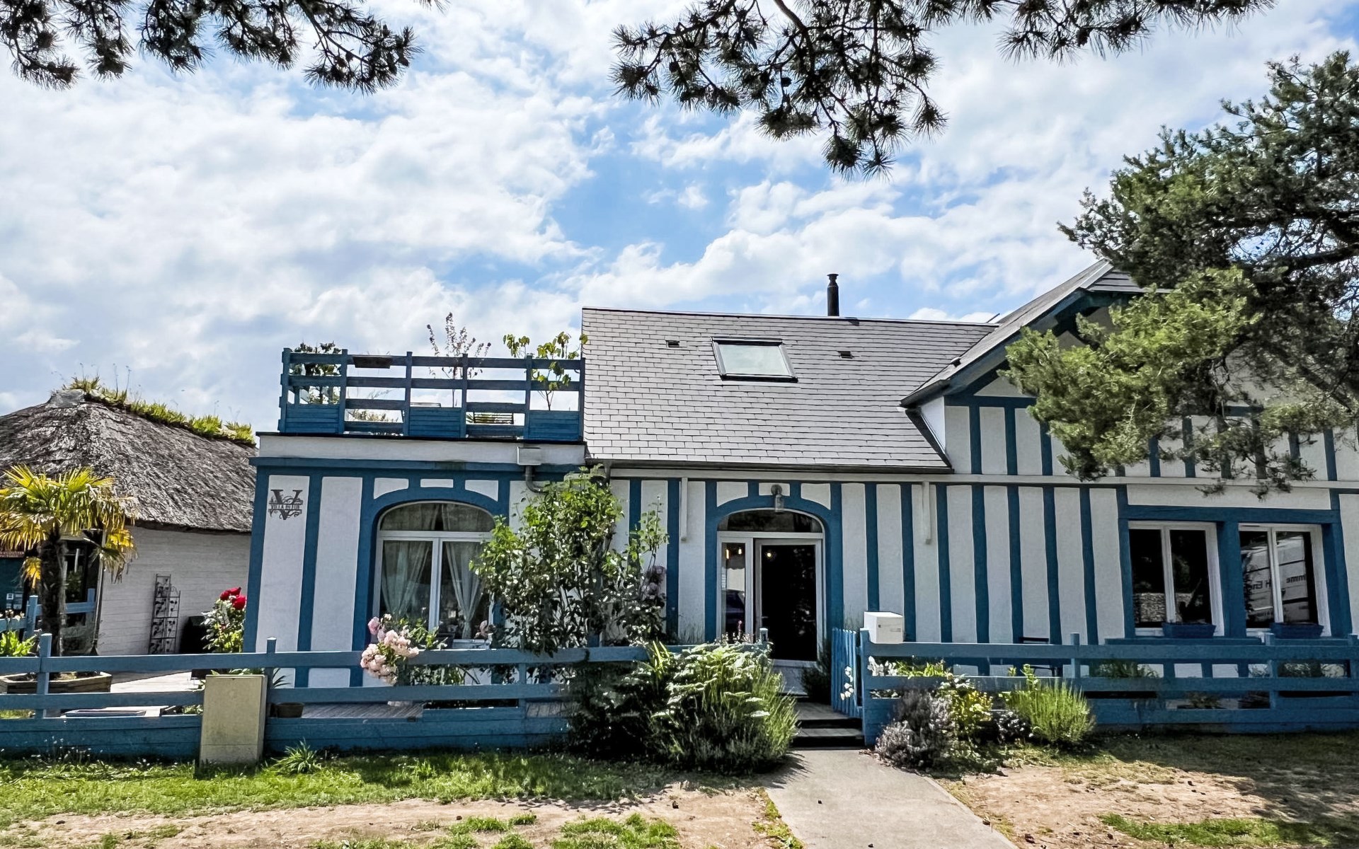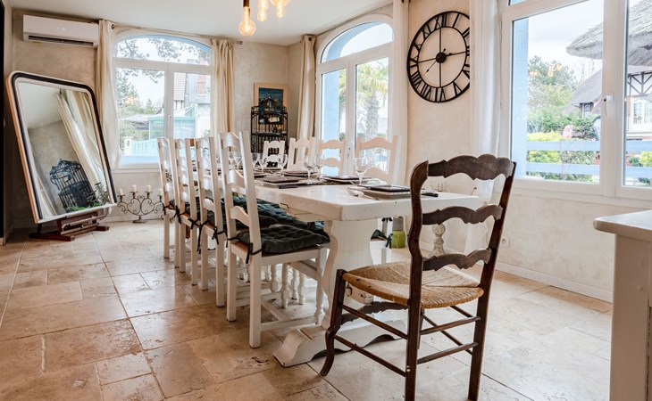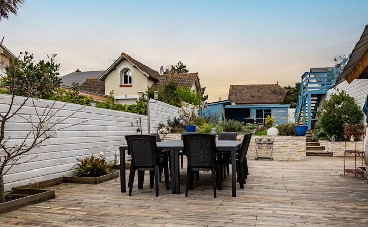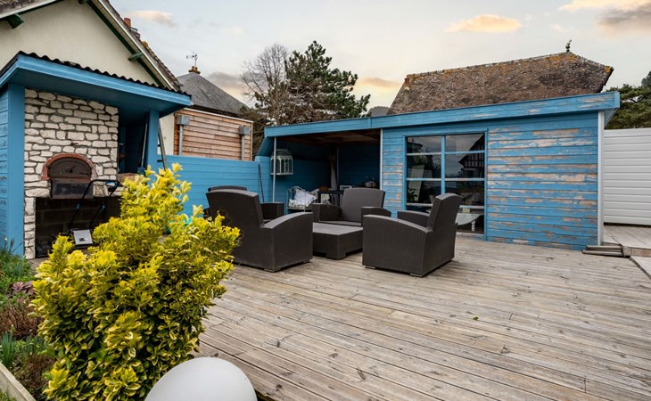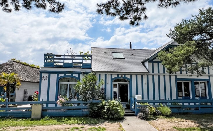 Merville Franceville 4 km from Cabourg: Single-family house "La Villa bleue", 3 storeys. In the resort 500 m from the centre of Merville Franceville, 700 m from the sea, from the beach. Private: garden 200 m2 (fenced). Terrace (200 m2). In the house: billiard table. Public parking on the road. Shop, grocery, supermarket, restaurant, bar, bakery 700 m, bus stop "Route de Cabourg" 210 m, sandy beach 800 m, thermal baths "Thalazur" 5.5 km. Sports harbour 8 km, golf course (18 hole) 3.6 km, minigolf 6.8 km. The keys‘ handover takes place by the agency Interhome in Cabourg, 8 km.