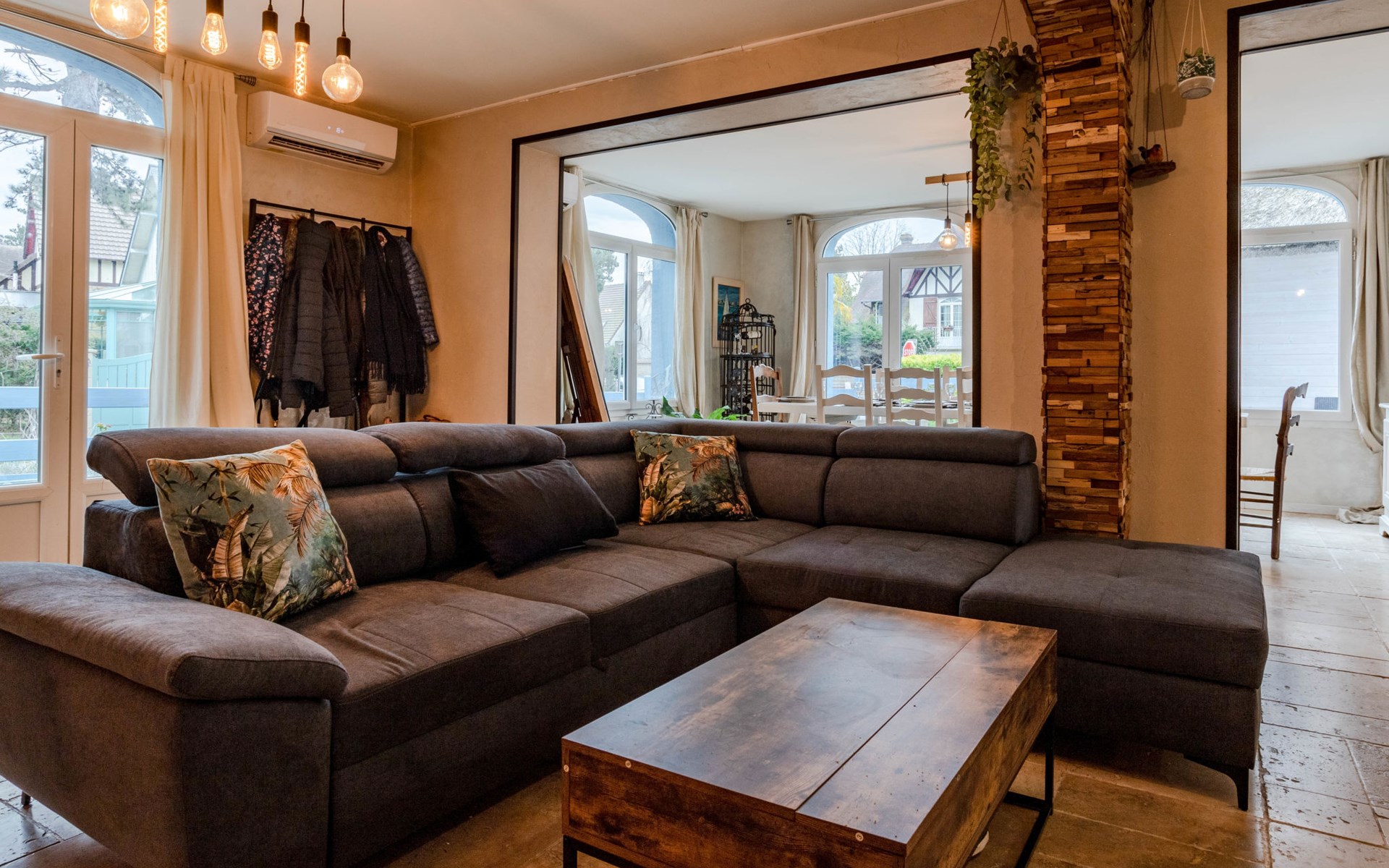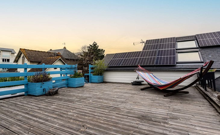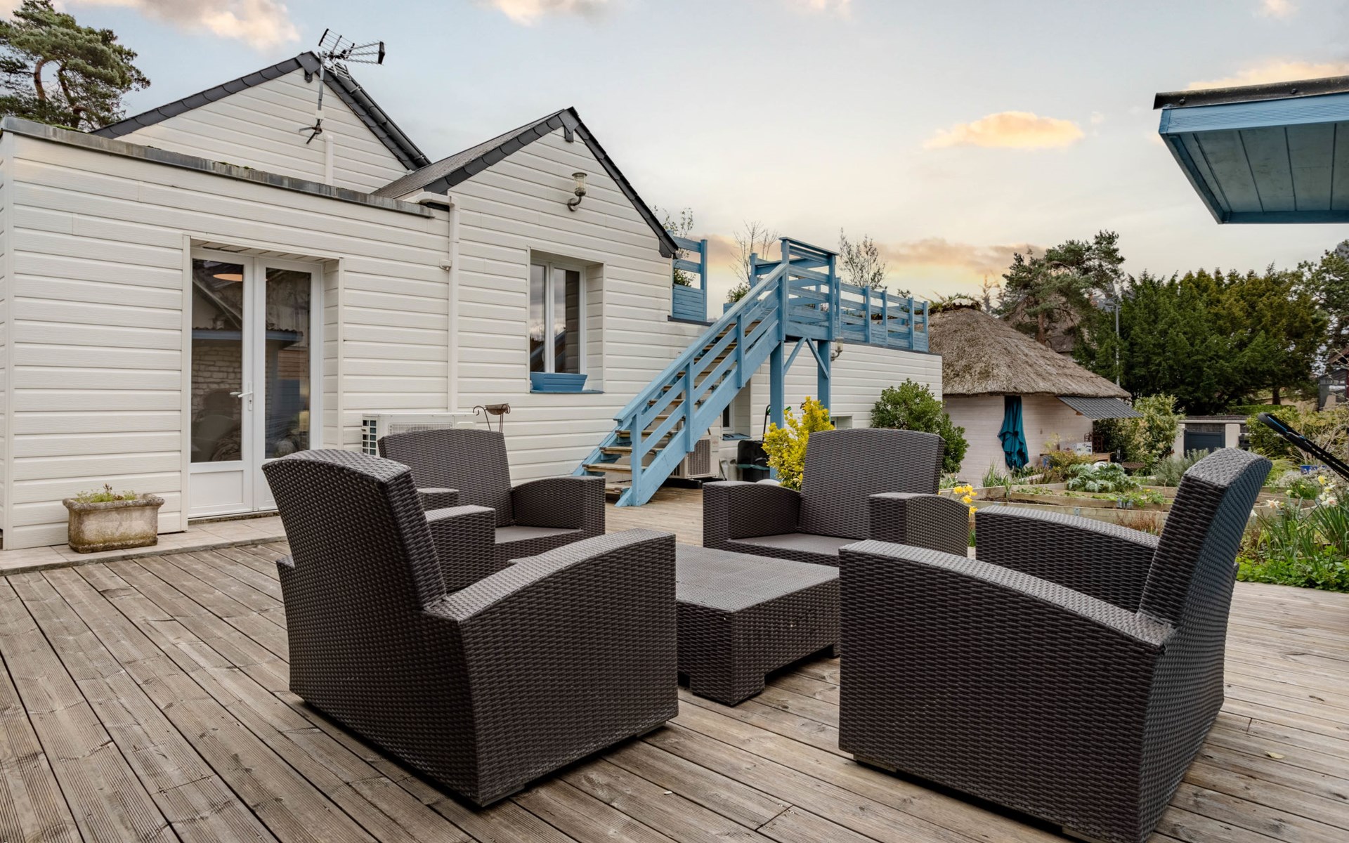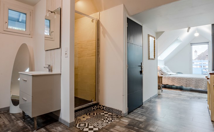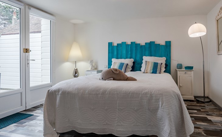 Merville Franceville 4 km from Cabourg: Single-family house "La Villa bleue", 3 storeys. In the resort 500 m from the centre of Merville Franceville, 700 m from the sea, from the beach. Private: garden 200 m2 (fenced). Terrace (200 m2). In the house: billiard table. Public parking on the road. Shop, grocery, supermarket, restaurant, bar, bakery 700 m, bus stop "Route de Cabourg" 210 m, sandy beach 800 m, thermal baths "Thalazur" 5.5 km. Sports harbour 8 km, golf course (18 hole) 3.6 km, minigolf 6.8 km. The keys‘ handover takes place by the agency Interhome in Cabourg, 8 km.