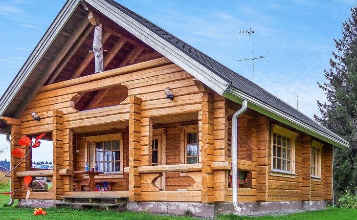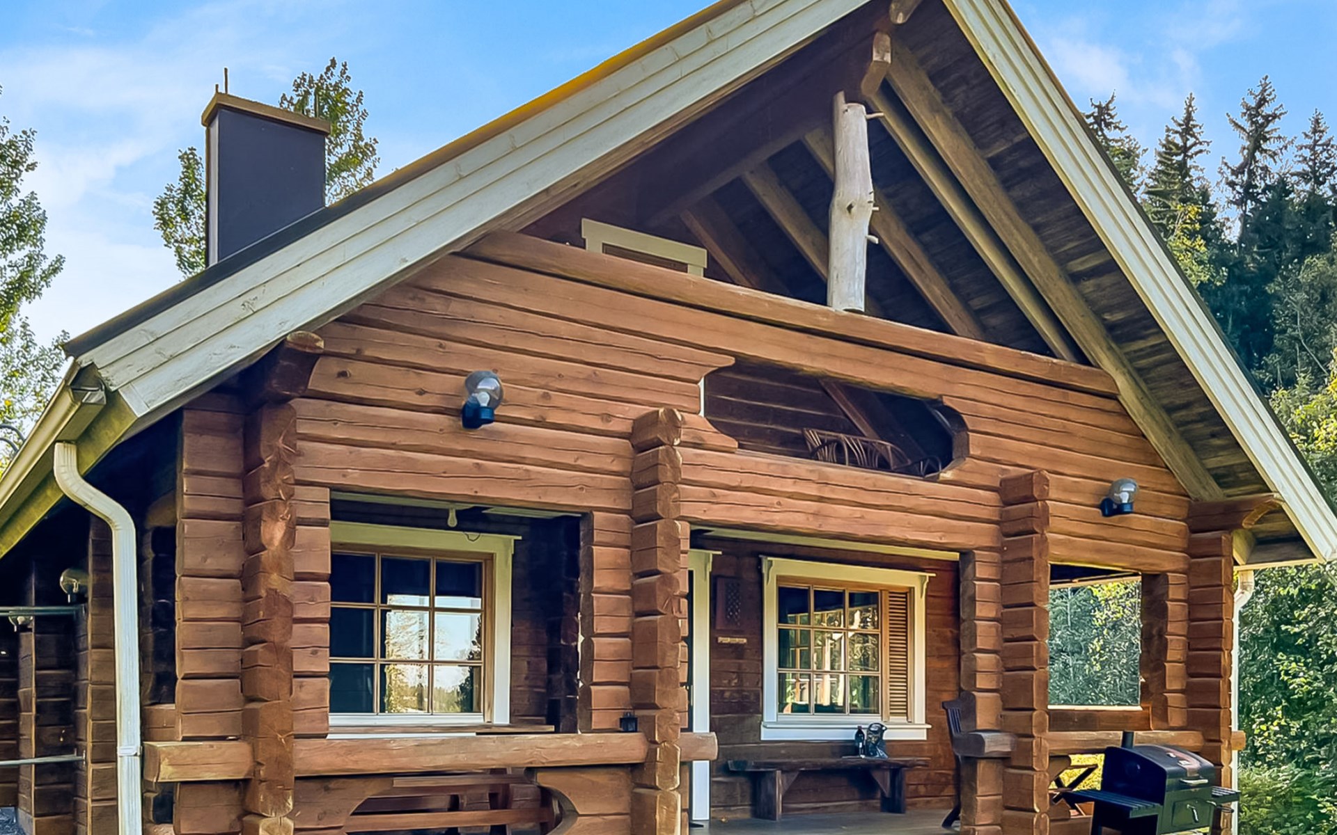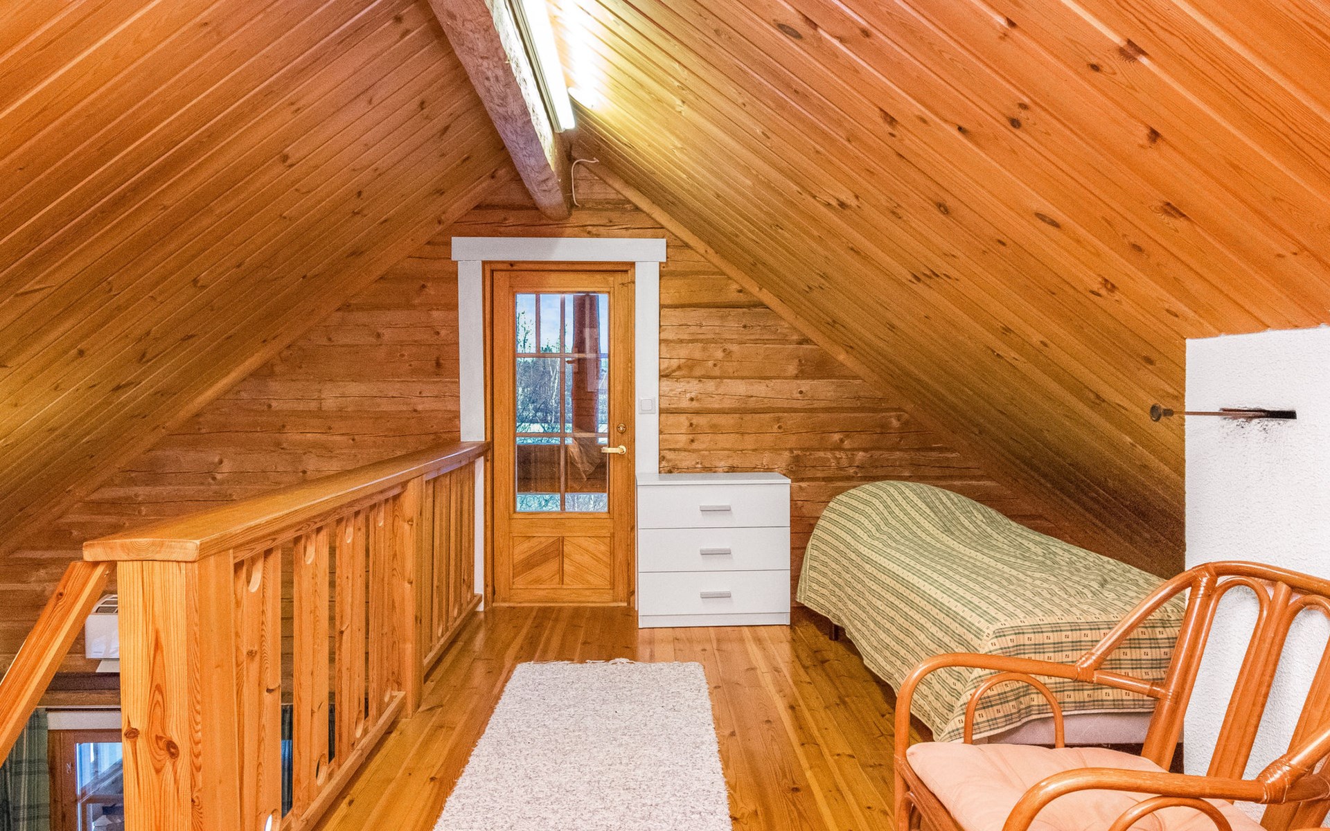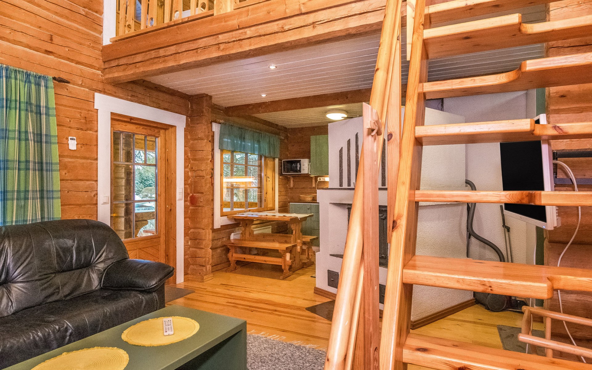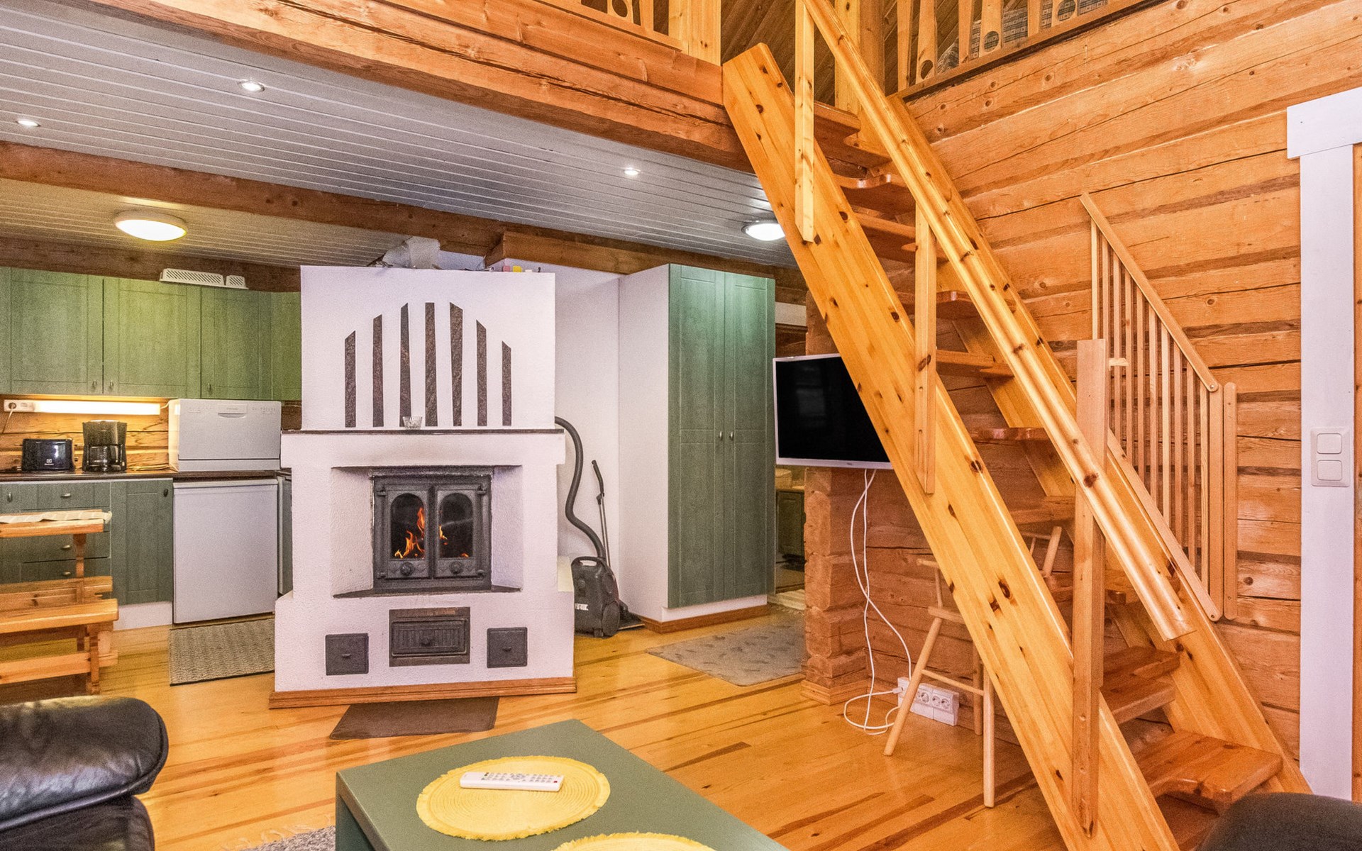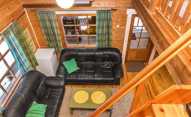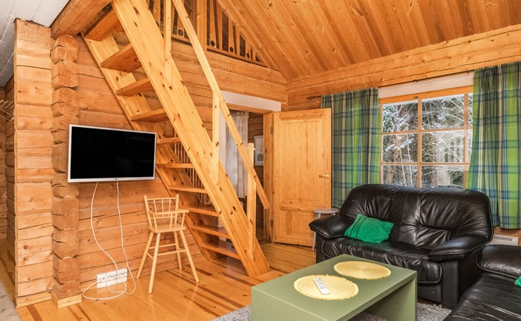 A log cabin, built in 1999, features a living room/kitchen (kitchen renovated in 2008). The bedroom has two beds joined together; the owner can separate them upon request. The loft has three box spring beds.