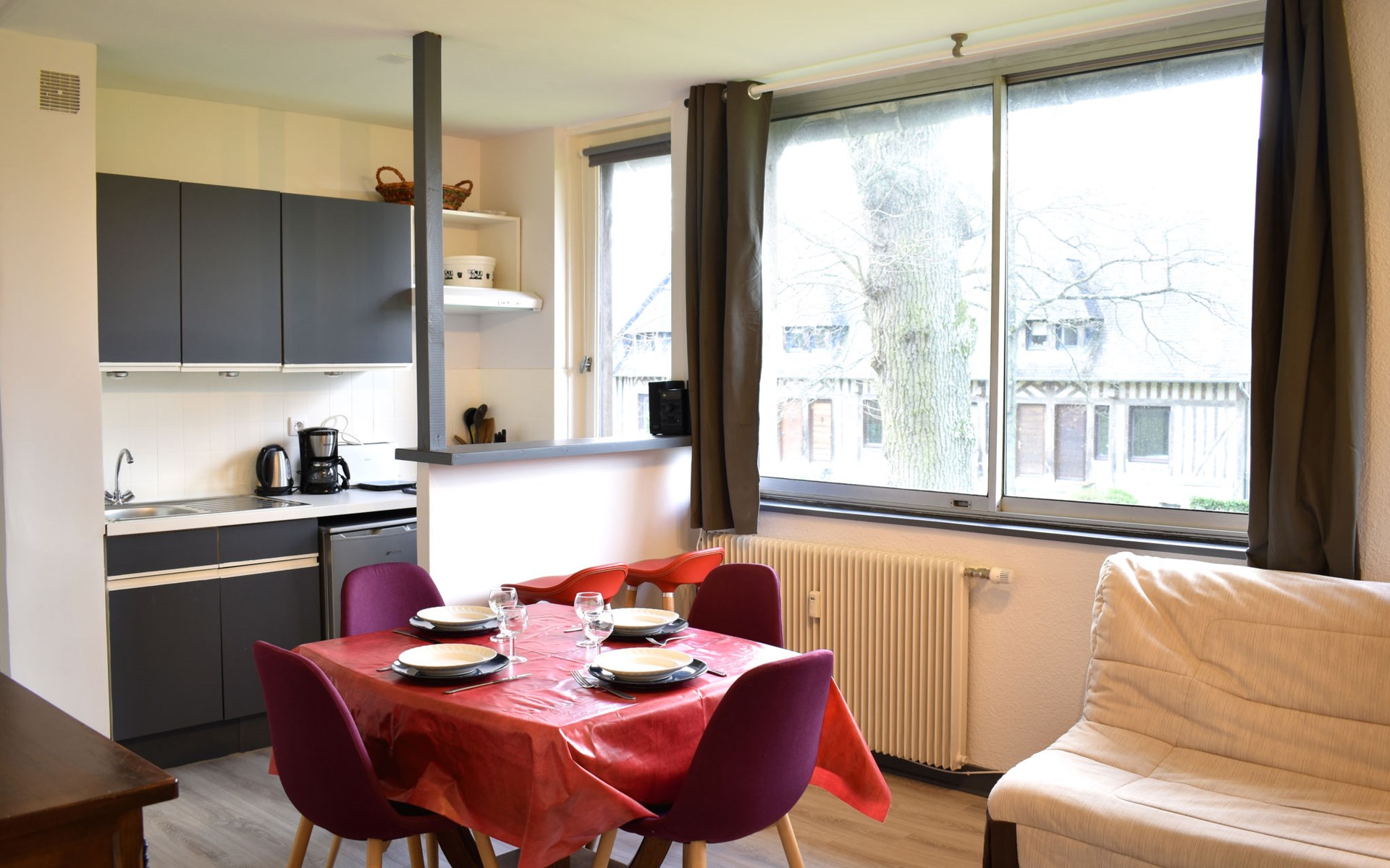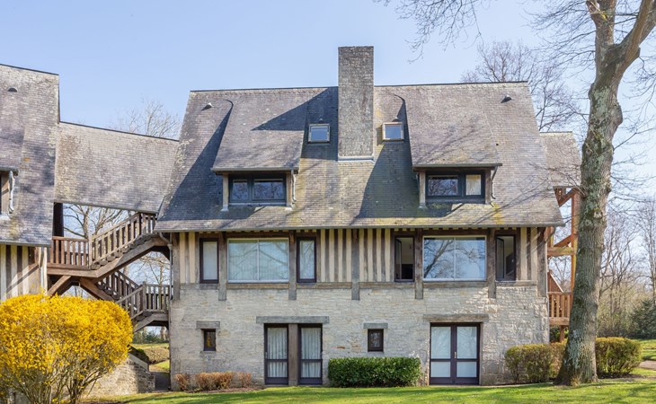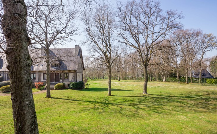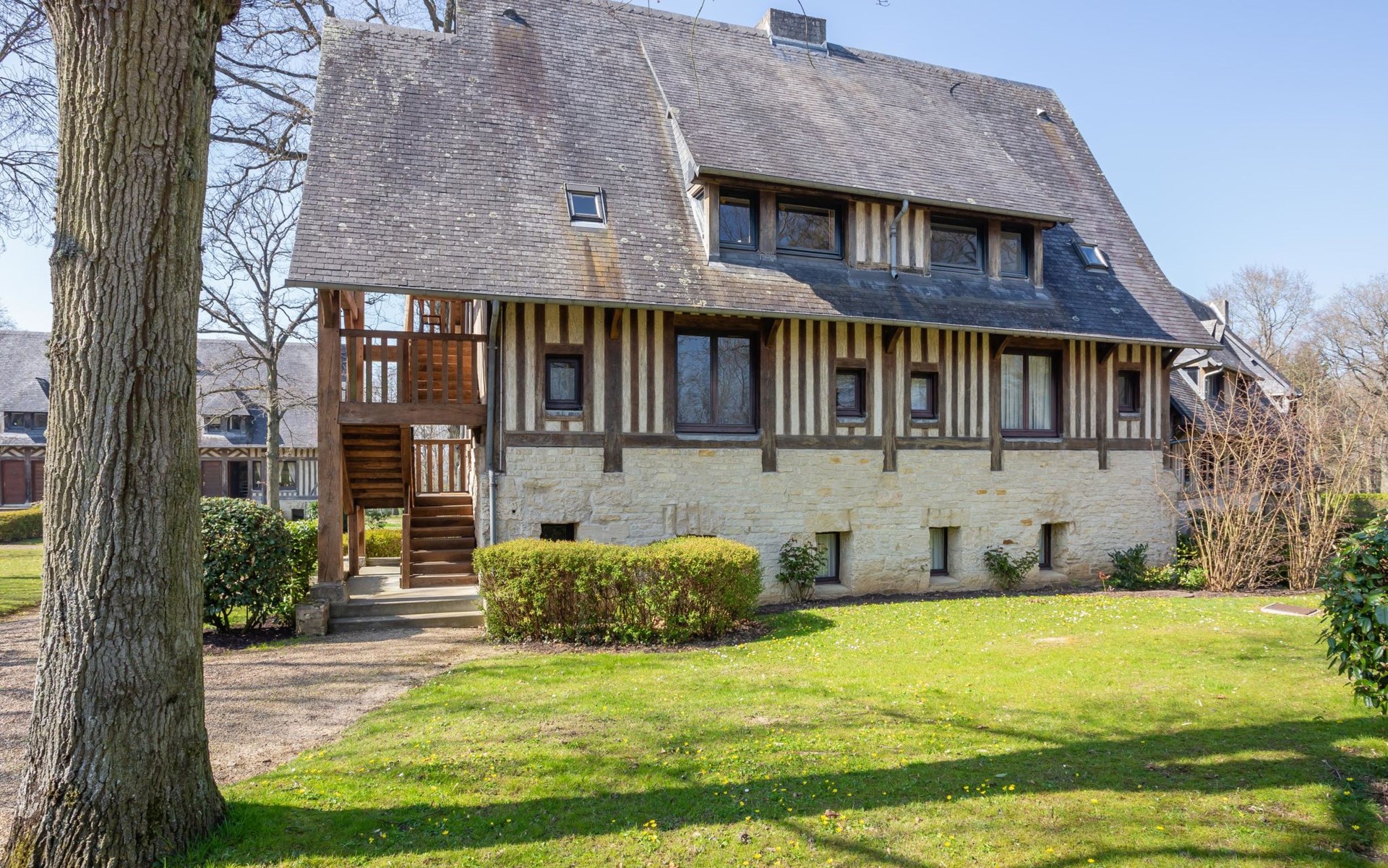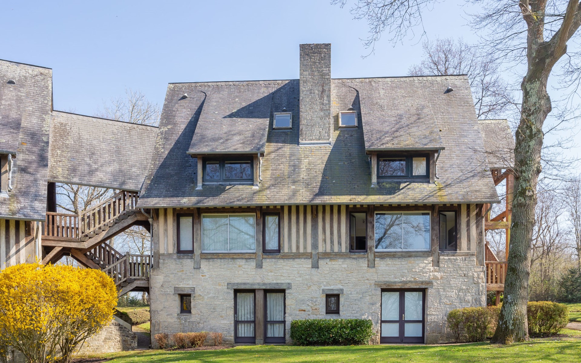Deauville Tourgéville: Farm estate "Les Hauts de Deauville", 3 storeys. On the outskirts, in the residential district, 3 km from the sea, in the countryside, on the golf course. For shared use: park, parking at the house. Grocery 750 m, supermarket 3.1 km, restaurant 2.9 km, bus stop "Tourgéville Golf" 100 m, railway station "de Deauville Trouville" 3.6 km, sandy beach "de Deauville" 3 km, indoor swimming pool 3.1 km, thermal baths "Thalasso de Deauville" 3.1 km. Golf course (27 hole) 3.5 km, riding stable 3.3 km. Nearby attractions: hippodrome de Deauville Clairefontaine 1.9 km, casino de Deauville 2.9 km, Honfleur village authentique 19 km, Mémorial de Caen 44 km, Plages du débarquement d'Arromanches 75 km. The keys‘ handover takes place by the agency Interhome in Deauville.