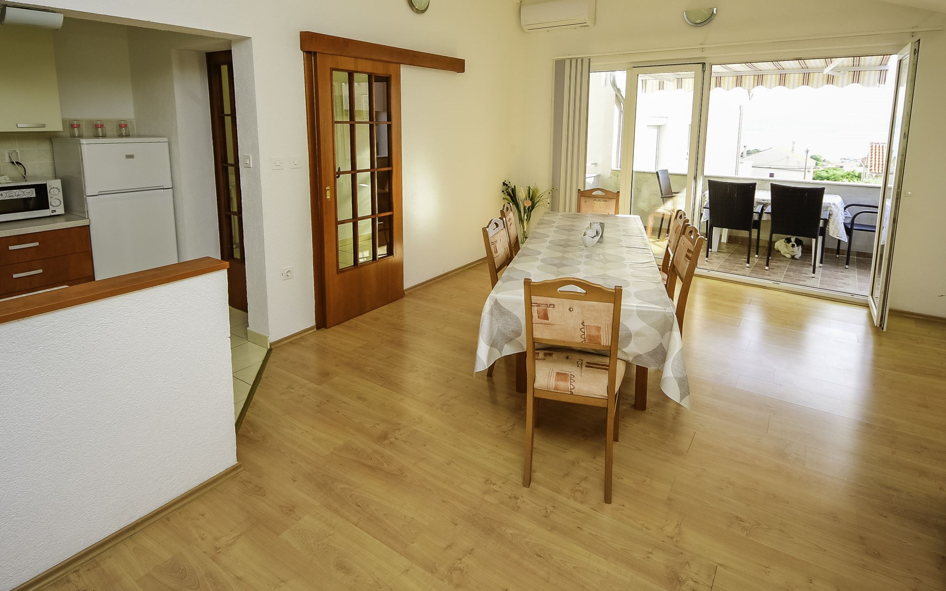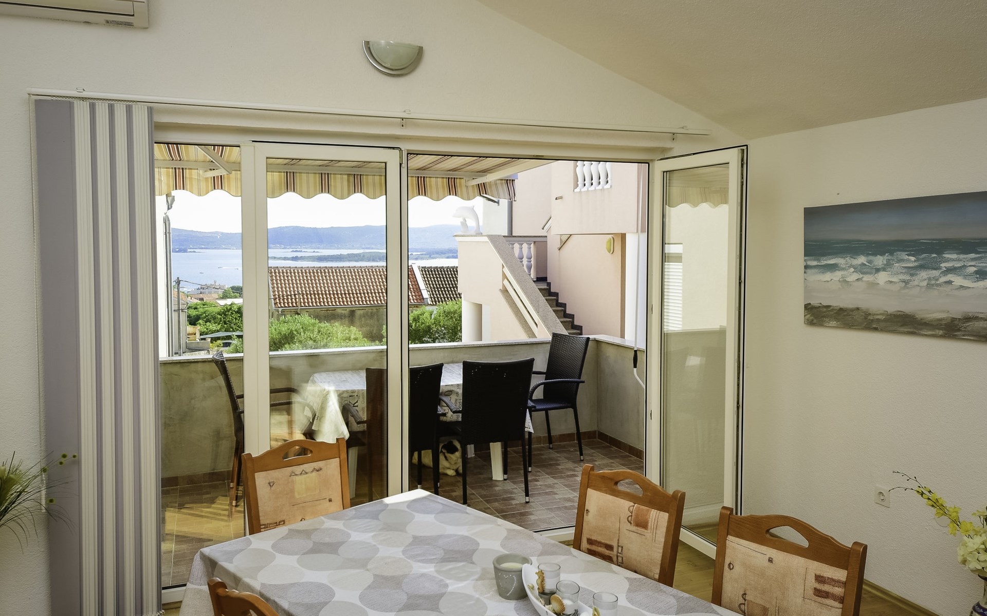 3-family house "Pusa". 750 m from the centre of Sv. Filip i Jakov, in a sunny, elevated position, 750 m from the sea, 800 m from the beach. For shared use: property 500 m2 (fenced). Barbecue. In the house: internet access, washing machine. Parking at the house on the premises. Shop 300 m, restaurant 700 m, bus stop 600 m, pebble beach 800 m. Well-known lakes can easily be reached: Vransko jezero 12 km.