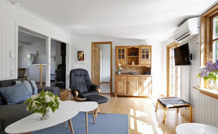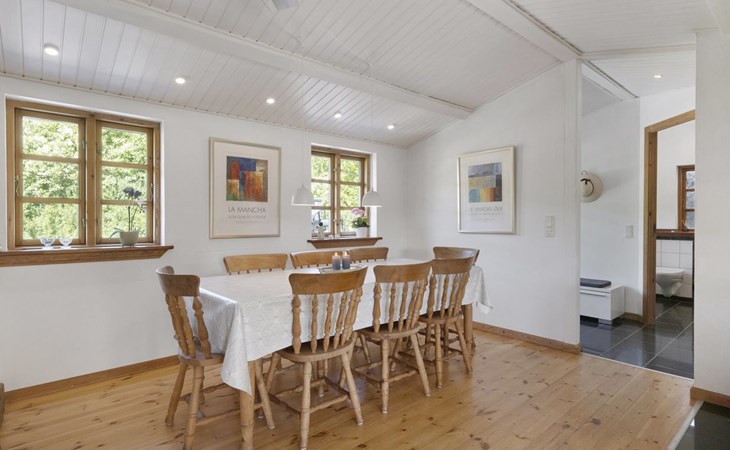 Single-family house, built in 1969. 16.3 km from the sea. Private: property 1'203 m2, well-kept garden. Terrace (50 m2), barbecue, children's playground (swing). In the house: washing machine. Parking at the house. Carport. E-charging station. Grocery 3.4 km. Golf course 6.7 km. The owner does not accept any youth groups.