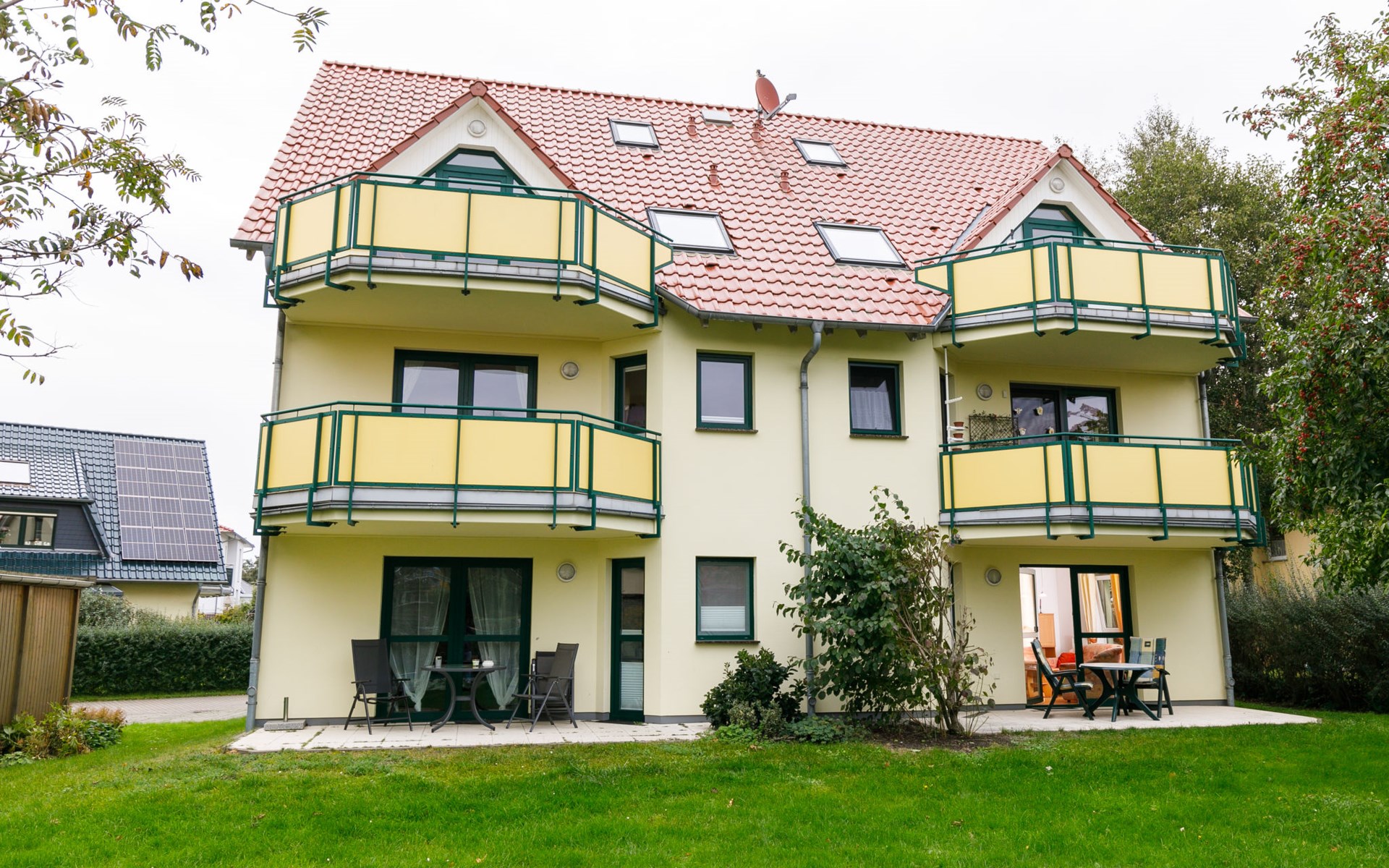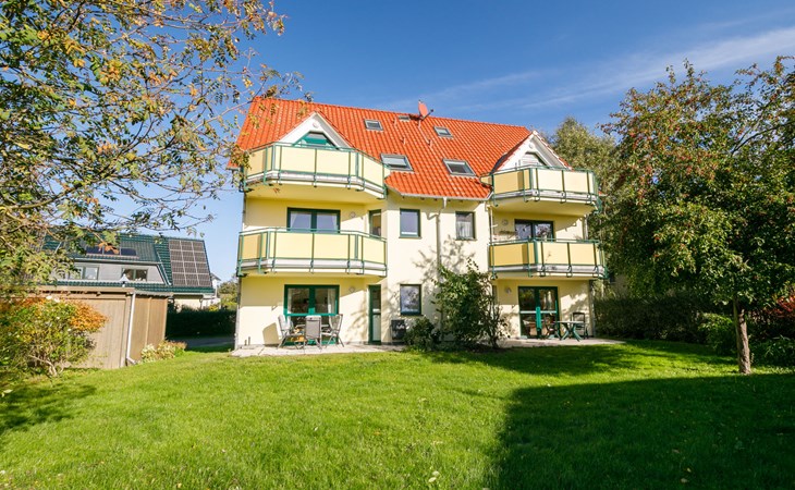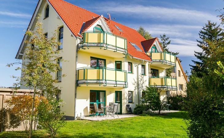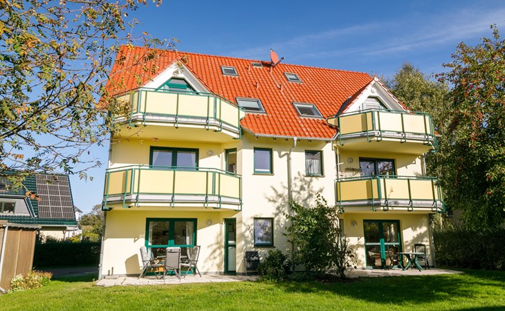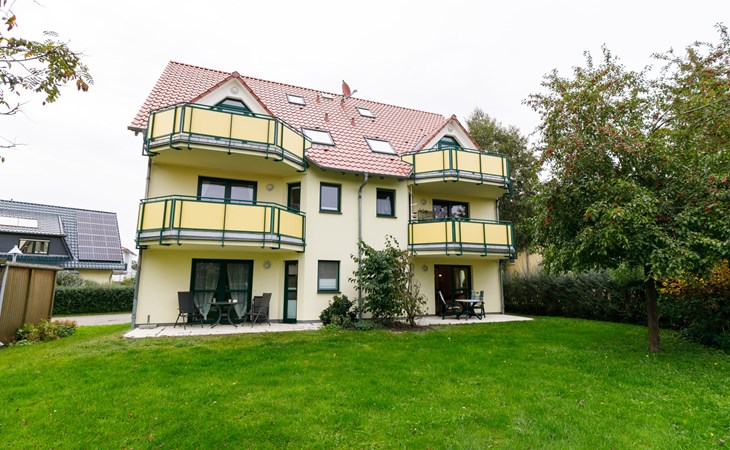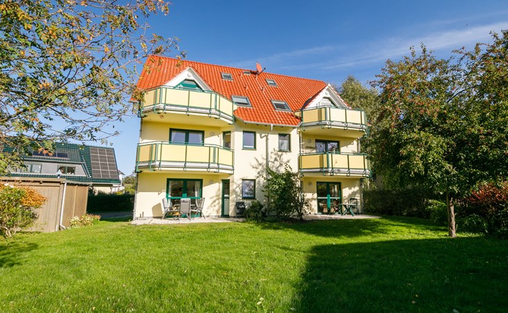 Apartment block "Ostseetrio", 3 storeys. 3 houses in the residence. 6 apartments in the property. In the resort 900 m from the centre of Zinnowitz, 1 km from the sea, 1 km from the beach. In the house: storage room for bicycles, central heating system. Parking on the premises. Supermarket 600 m, restaurant 600 m, bakery 600 m, café 800 m, bus stop 100 m, railway station 350 m, sandy beach 1 km, thermal baths "Bernsteintherme" 1.4 km. Marina 2.3 km, golf course (18 hole) 25 km, surf school 1.4 km, tennis 1 km, minigolf 1.4 km.