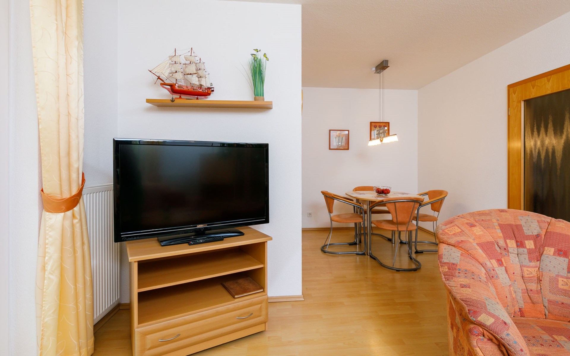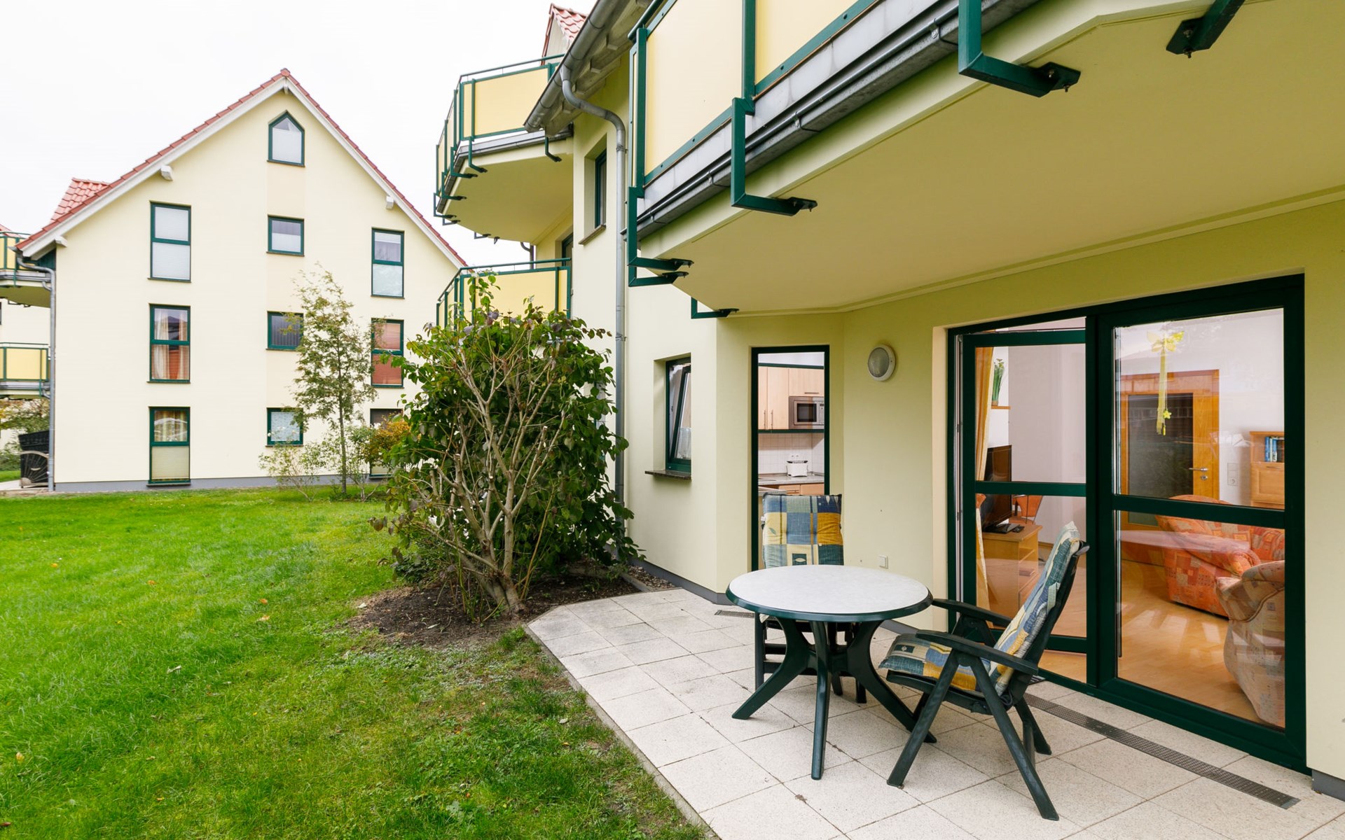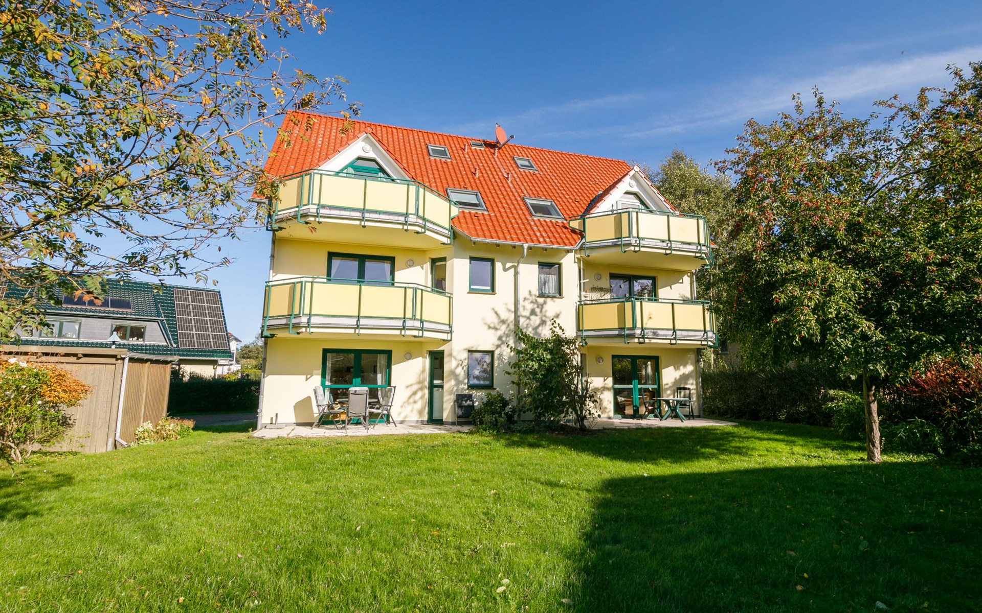 Apartment block "Ostseetrio", 3 storeys. 3 houses in the residence. 6 apartments in the property. In the resort 900 m from the centre of Zinnowitz, 1 km from the sea, 1 km from the beach. In the house: storage room for bicycles, central heating system. Parking on the premises. Supermarket 600 m, restaurant 600 m, bakery 600 m, café 800 m, bus stop 100 m, railway station 350 m, sandy beach 1 km, thermal baths "Bernsteintherme" 1.4 km. Marina 2.3 km, golf course (18 hole) 25 km, surf school 1.4 km, tennis 1 km, minigolf 1.4 km.
