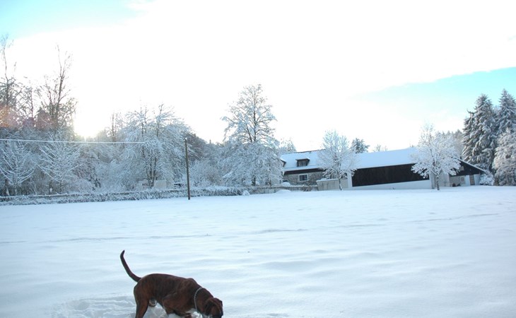 In the 1000 square metre pond you can fish, swim or take a dinghy ride. The nearest open-air swimming pool is about half an hour's walk away. If you prefer to enjoy the peace and quiet of nature, you can go hiking or mushroom hunting in the forest right next to our farm. There is also an old railway line in Schöllnach, which is now paved. There you have the possibility to explore the route in summer by bike, inline skates or on foot in the direction of Kalteneck or Niederalteich. In winter - if there is enough snow - this route is prepared for cross-country skiers.