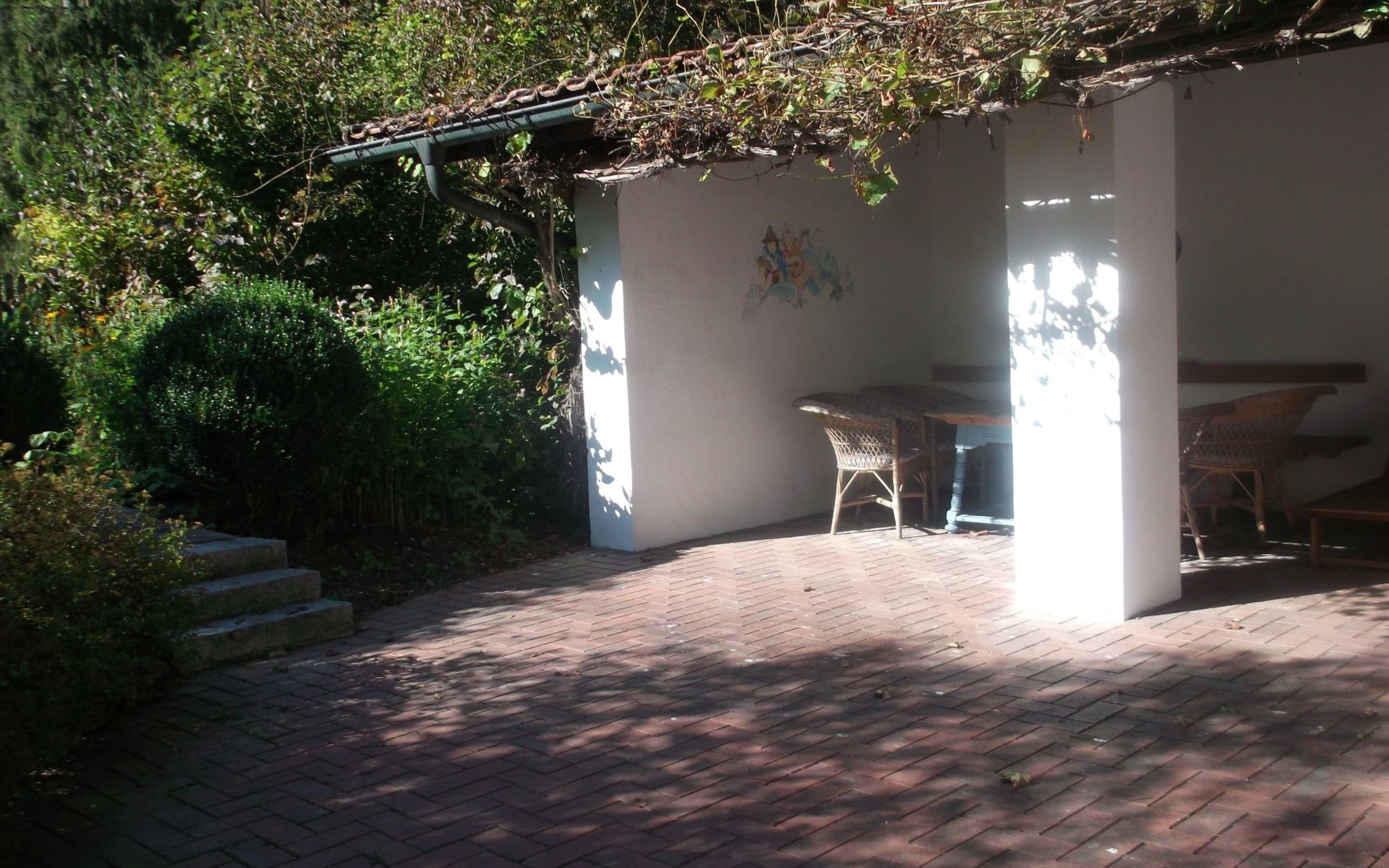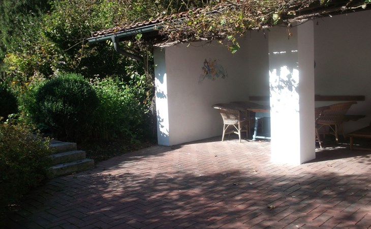 The holiday home also has a covered terrace with its own part of the garden, which is fenced off and therefore also suitable for dogs and small children. There is garden furniture, two sun loungers and a charcoal barbecue on the terrace.