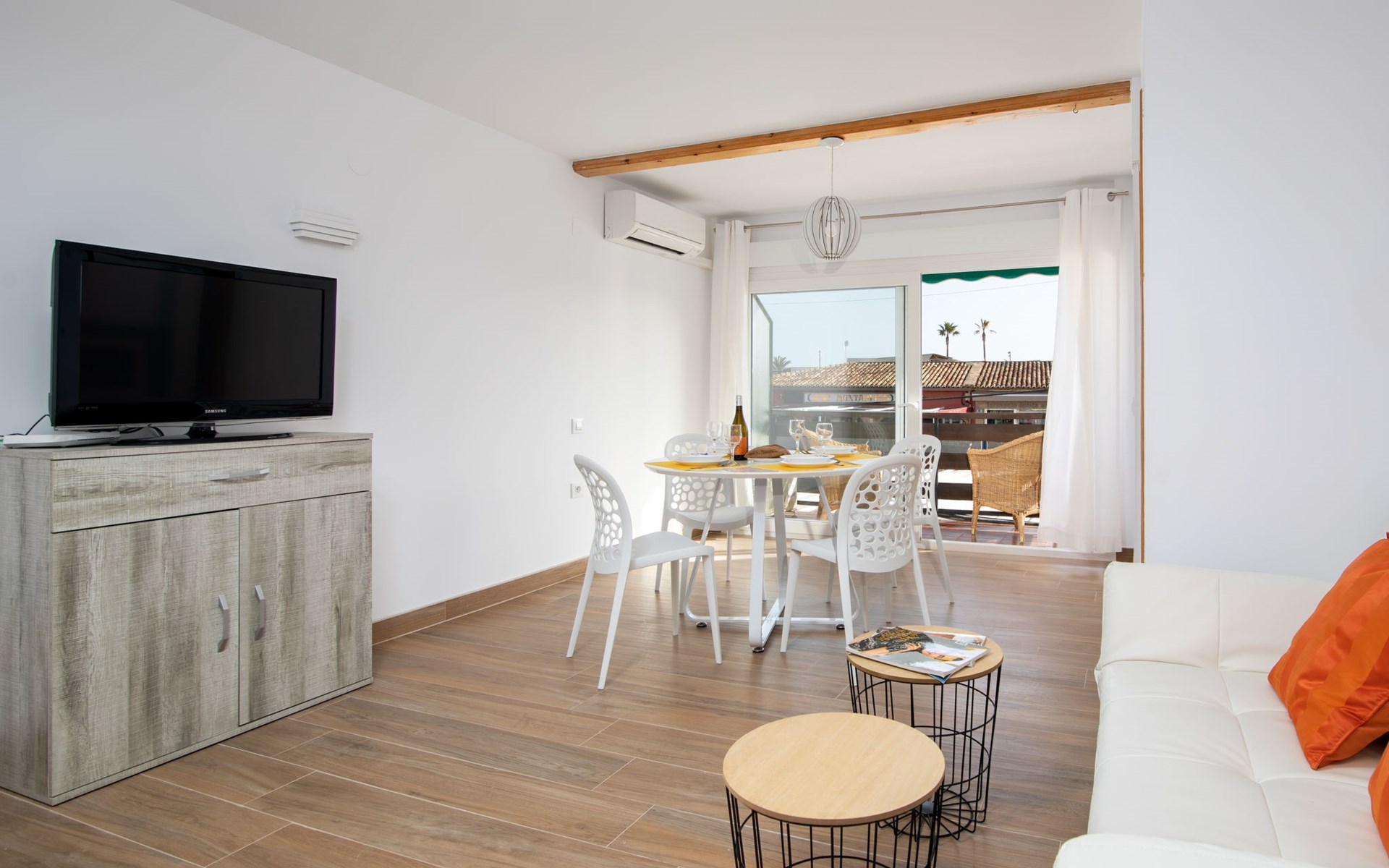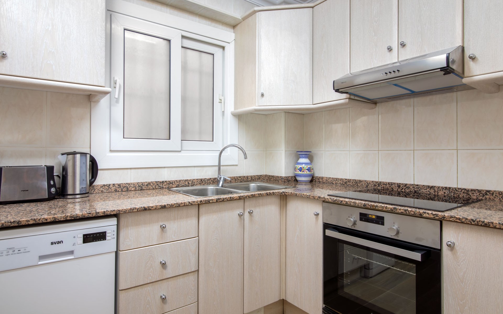 Old, cosy apartment block "Hawai", 3 storeys. In the centre of El Arenal - Jávea, in a central, busy position, 100 m from the sea, 100 m from the beach, road to cross. Parking on the premises. Shop 30 m, supermarket 550 m, restaurant, bar, café 50 m, bus stop 200 m, sandy beach "Arenal" 100 m. Surf school 100 m, sailing school, tennis 500 m.