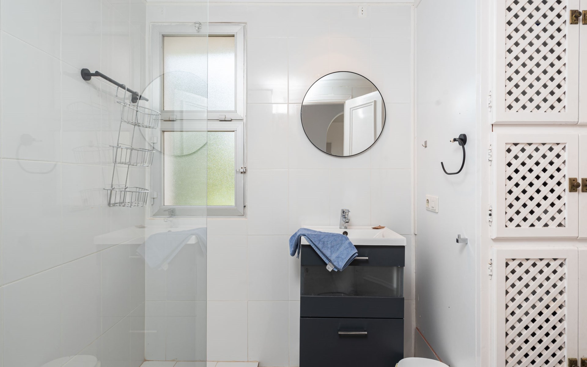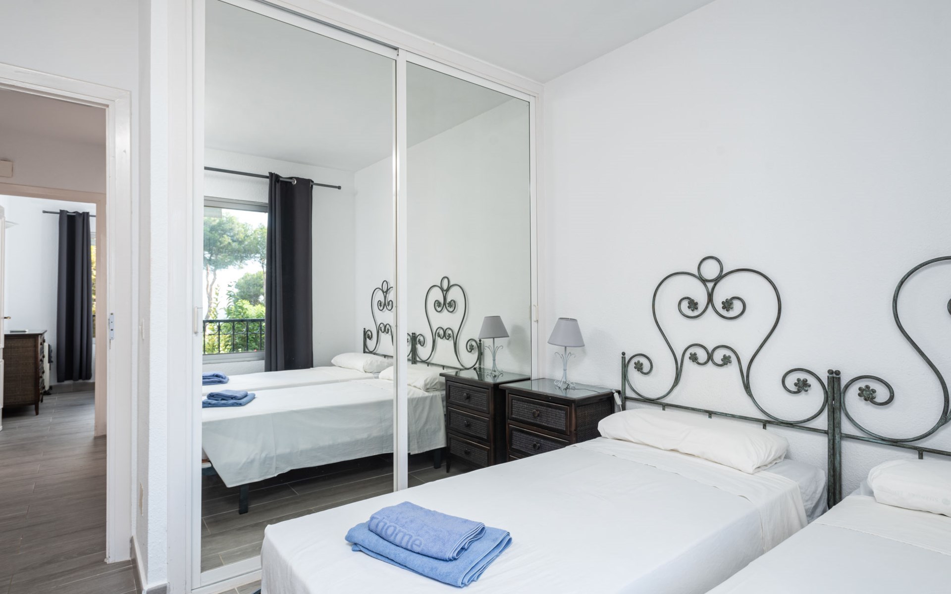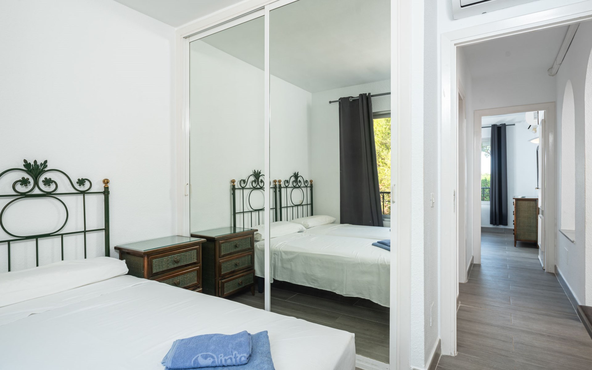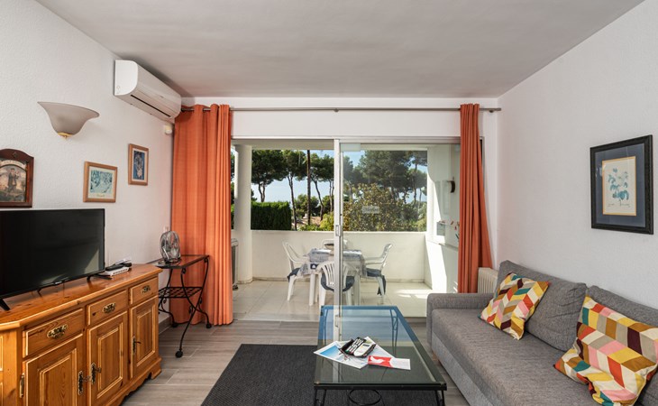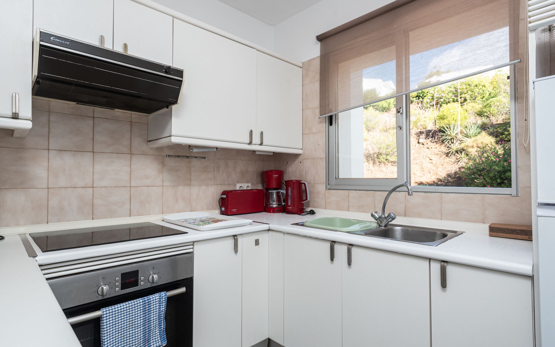 Mijas Costa 18 km from Marbella: Comfortable holiday development "Jardin de miraflores". In the resort Mijas Costa, 950 m from the sea. For shared use: property, well-kept garden with lawn, swimming pool (seasonal availability: 01.Apr. - 31.Oct.). Children's pool, outdoor shower, tennis, children's playground. Stepped path (12 steps) to the house. Public parking on the road. Shop, grocery 100 m, supermarket 1 km, restaurant 200 m, bus stop "Pueblo Miraflores" 550 m, sandy beach 950 m. Golf course (18 hole) 2 km. Please note: no lift.