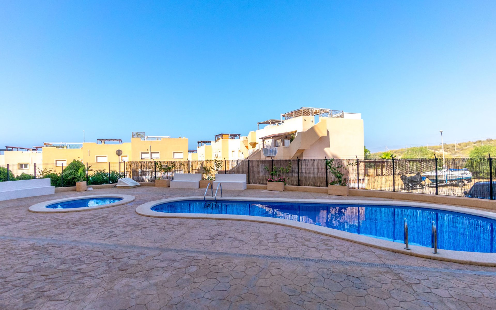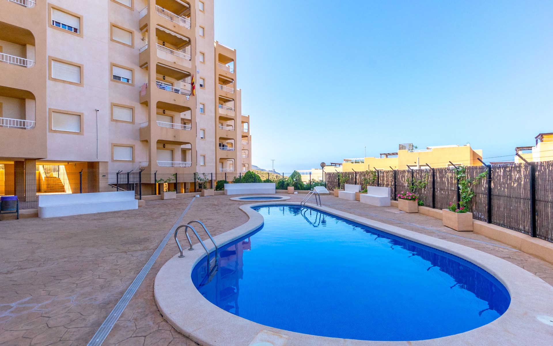 Residence "El Pinar de San Ginés". In the resort La Azohia, 900 m from the sea. For shared use: swimming pool (13 x 6 m, depth 110 - 180 cm, seasonal availability: 01.May. - 30.Oct.). Outdoor shower. In the house: lift. Parking at the house, public parking on the road. Bus stop 650 m.