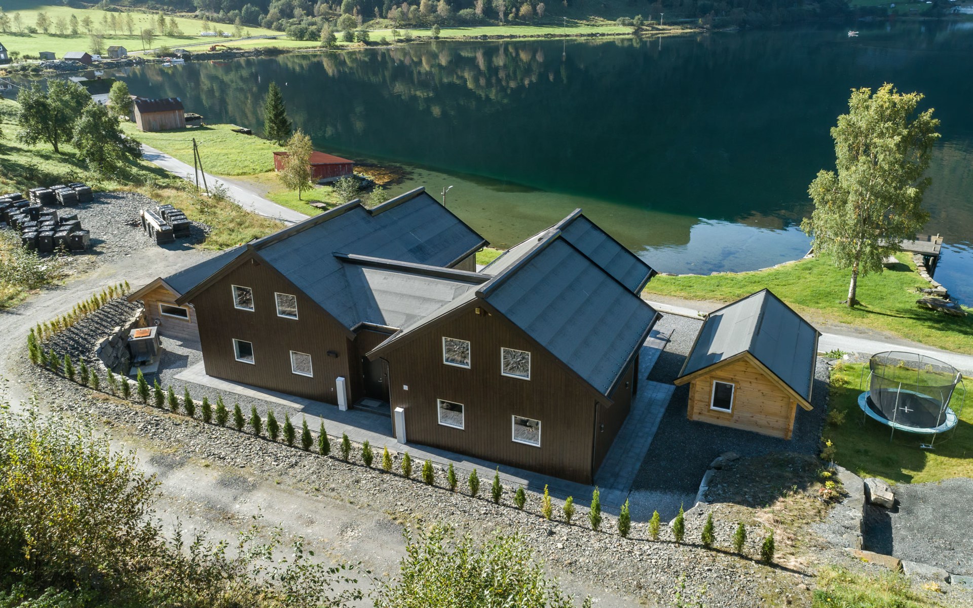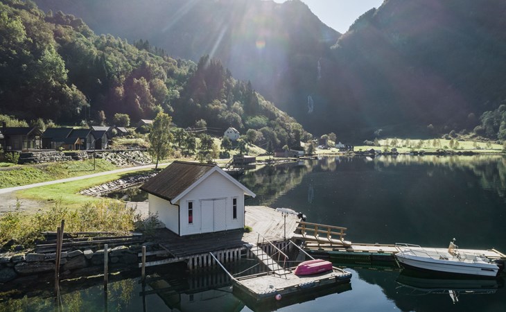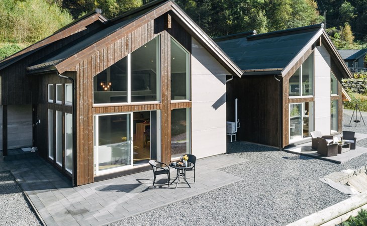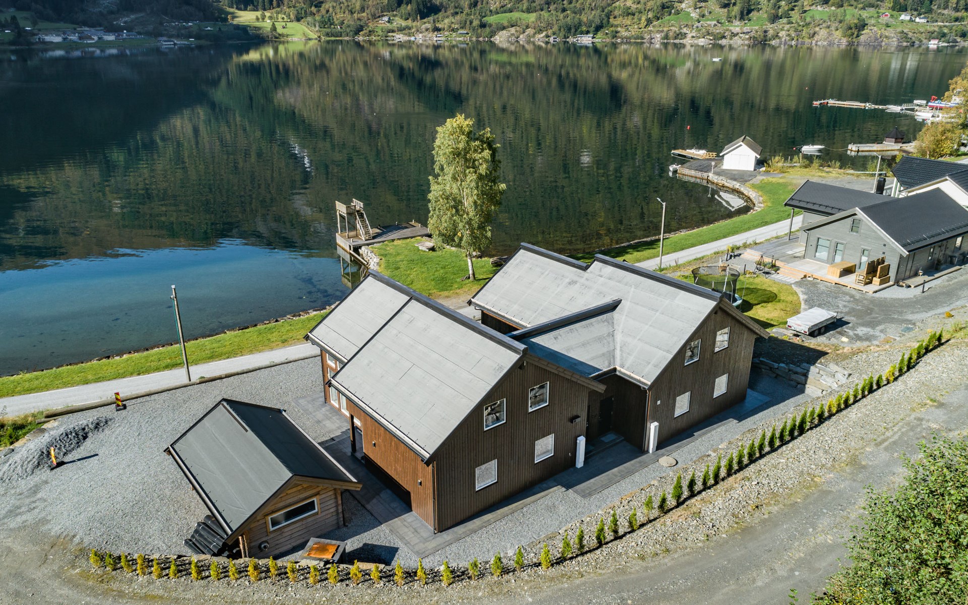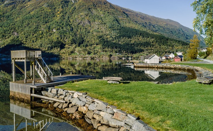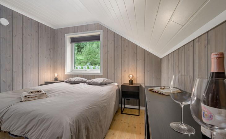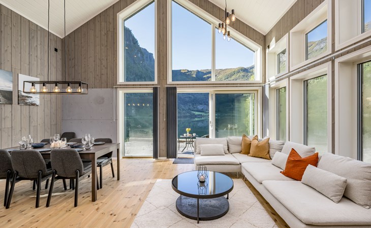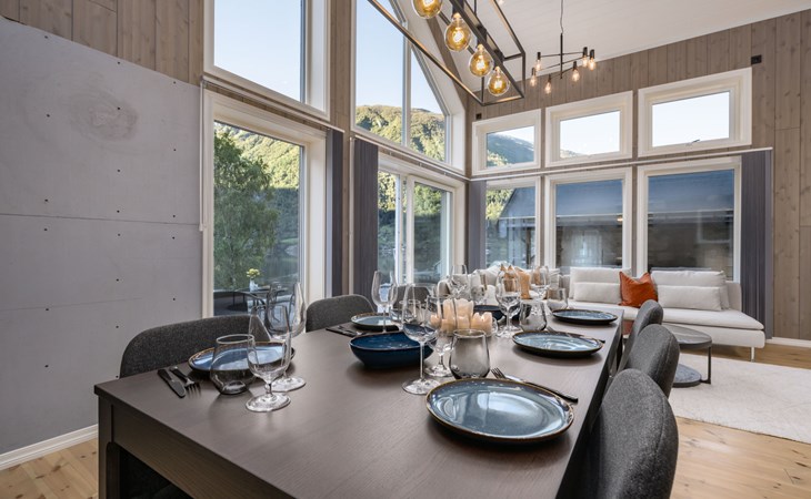 Very modern certified fishing house (up to 18 kg fish) "Mathias", 4 m a.s.l., 2 storeys, semi-detached, built in 2022. 20 km from the centre of Vik, 190 km from the centre of Bergen, 30 m from the sea, 30 m from the fijord, road to cross. For shared use: property. Barbecue house, bathing jetty fish-processing table. Private: terrace (8 m2), garden furniture. Motor access to the house. Parking (for 3 cars). Shop 3 km, supermarket 22 km, bus stop "Vikøyri" 21 km, sandy beach 30 m. Fishing possibilities 30 m. Nearby attractions: Gudvangen 92 km, Flåm 112 km. Please note: Property ref. NO1881.614.1 is situated on the same property.