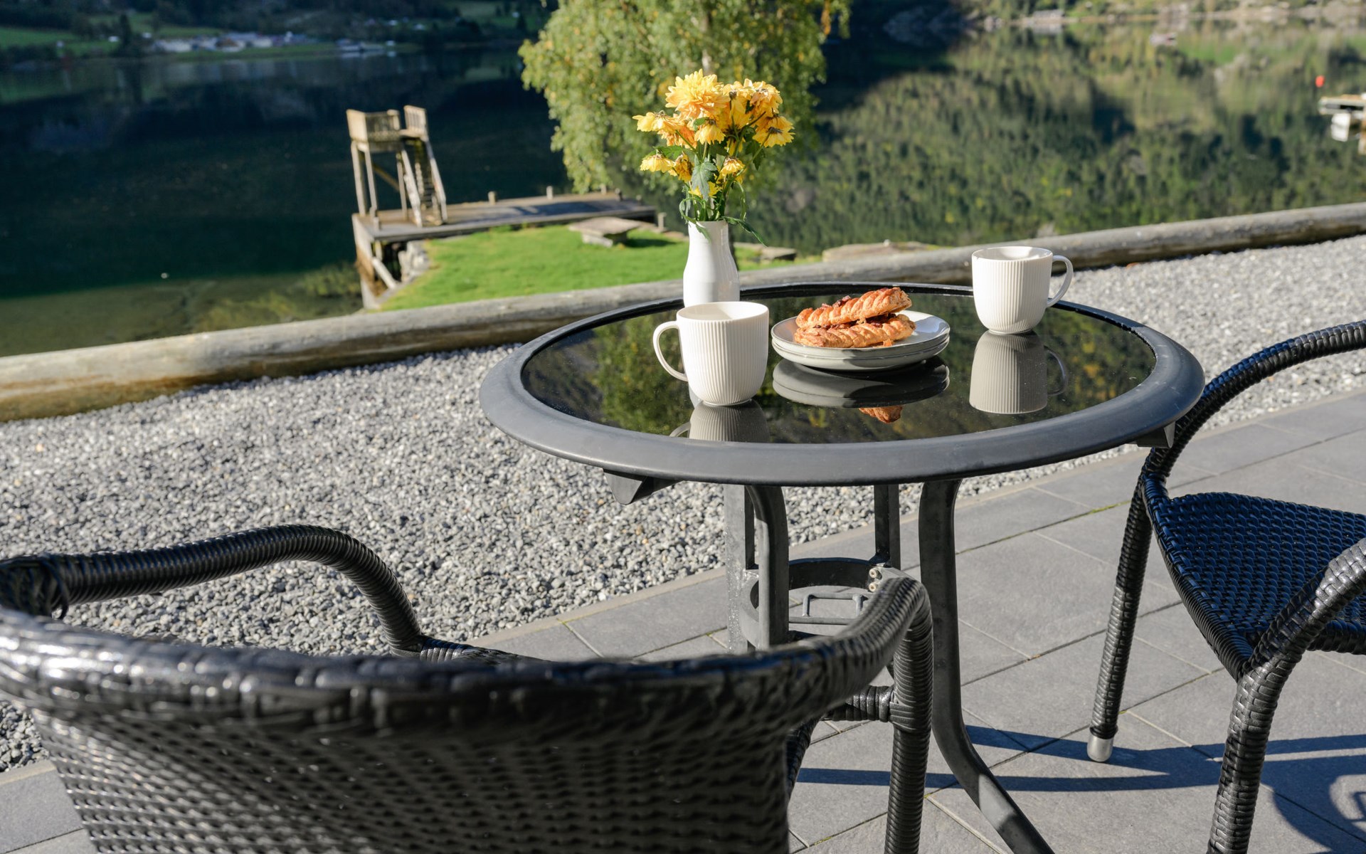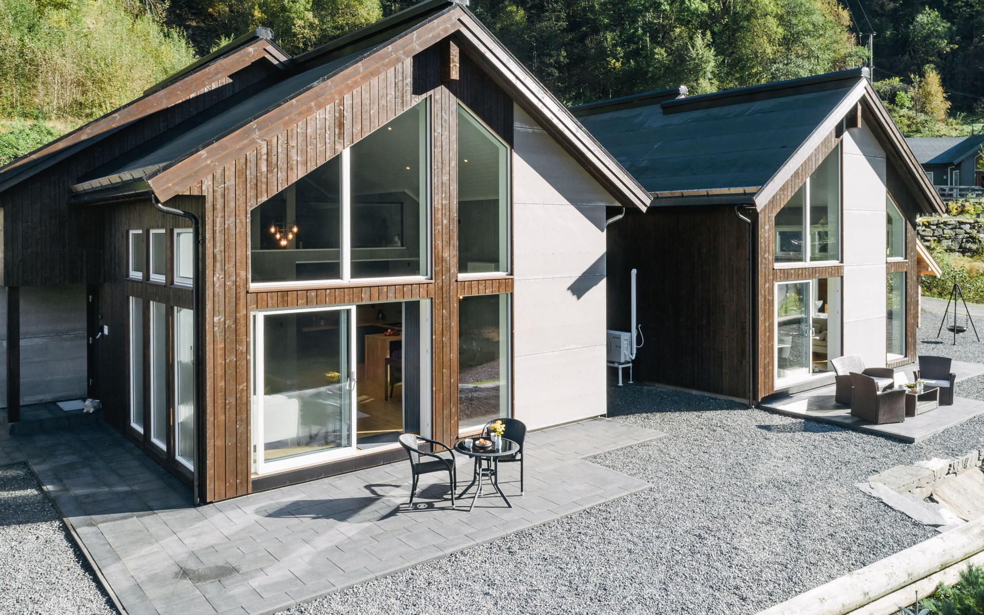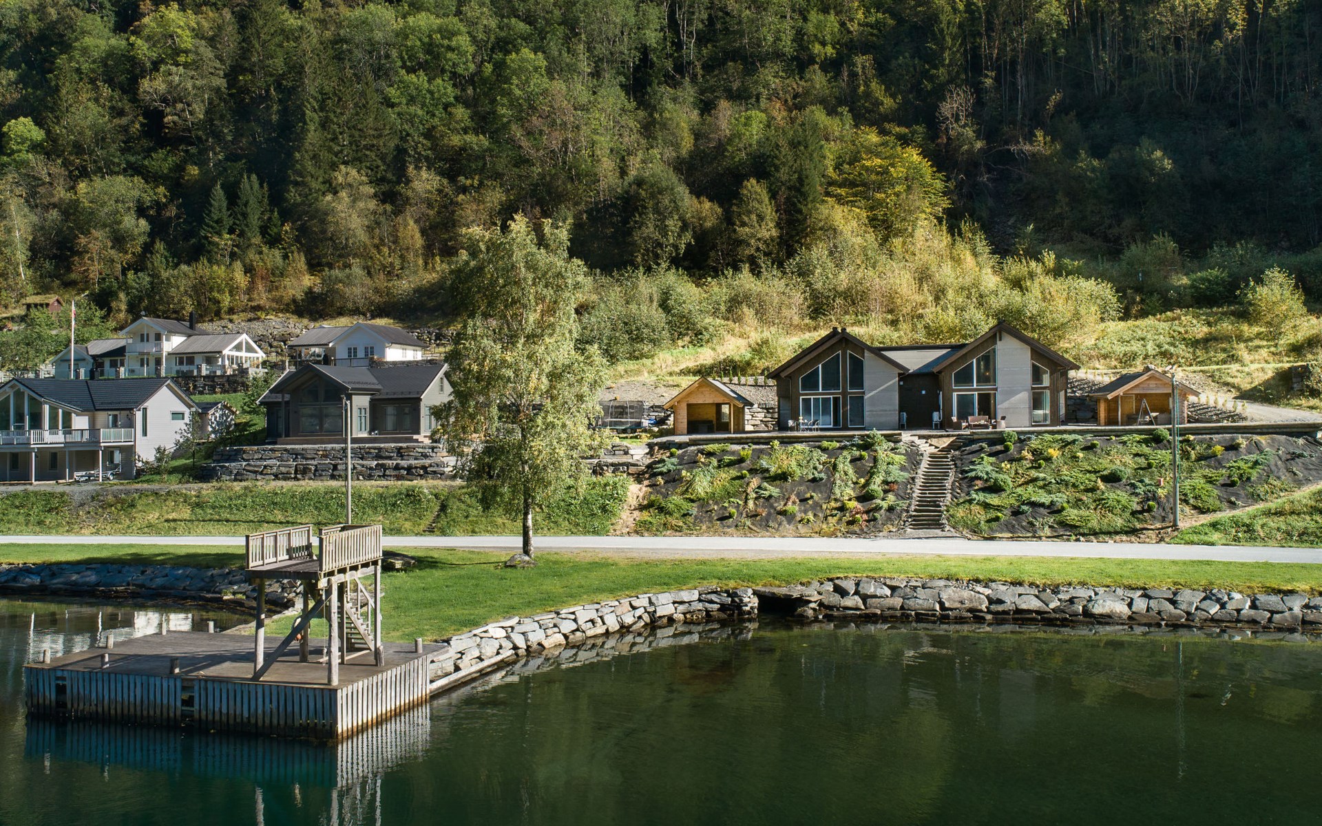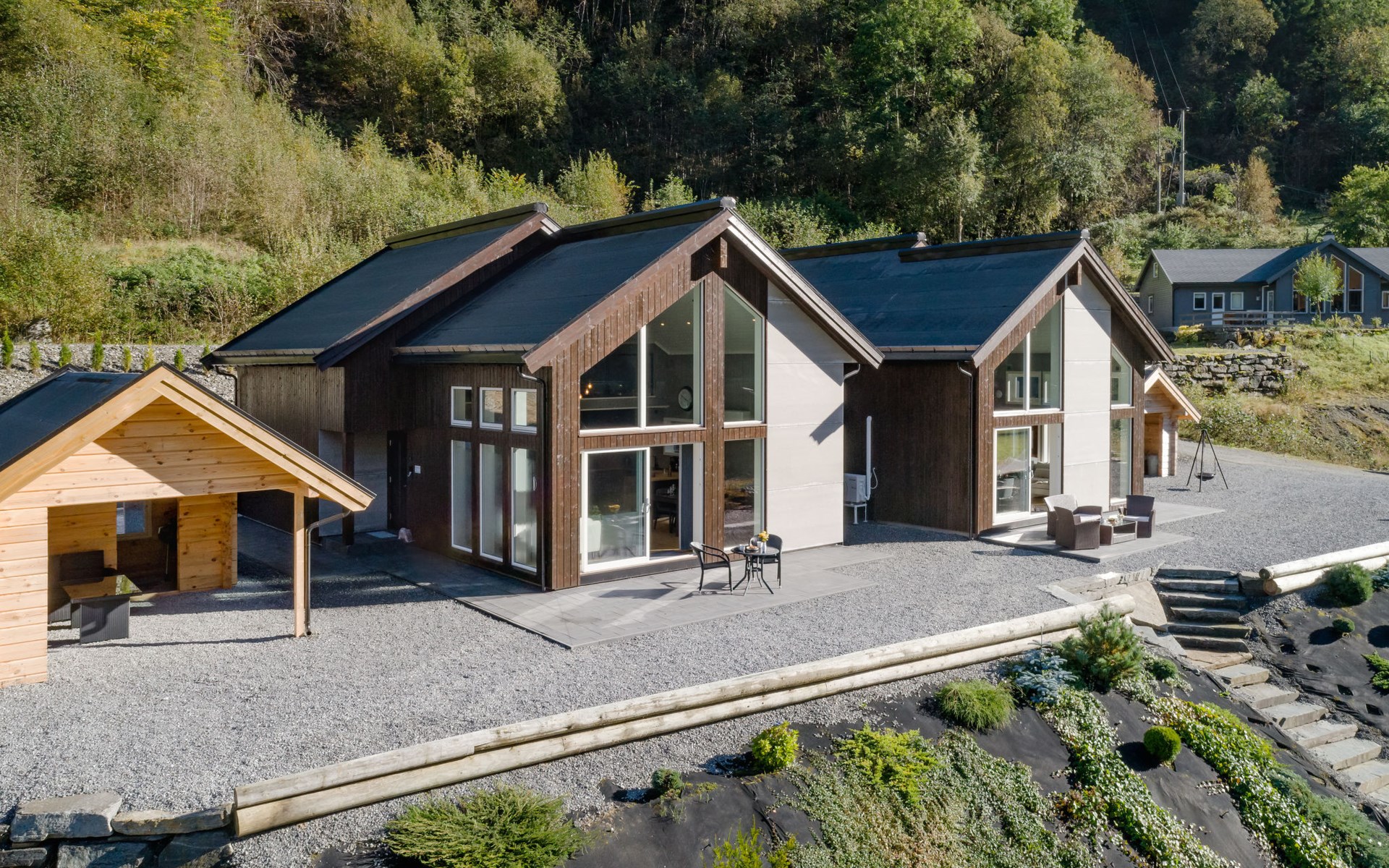 Very modern certified fishing house (up to 18 kg fish) "Mathias", 4 m a.s.l., 2 storeys, semi-detached, built in 2022. 20 km from the centre of Vik, 190 km from the centre of Bergen, 30 m from the sea, 30 m from the fijord, road to cross. For shared use: property. Barbecue house, bathing jetty fish-processing table. Private: terrace (8 m2), garden furniture. Motor access to the house. Parking (for 3 cars). Shop 3 km, supermarket 22 km, bus stop "Vikøyri" 21 km, sandy beach 30 m. Fishing possibilities 30 m. Nearby attractions: Gudvangen 92 km, Flåm 112 km. Please note: Property ref. NO1881.614.1 is situated on the same property.